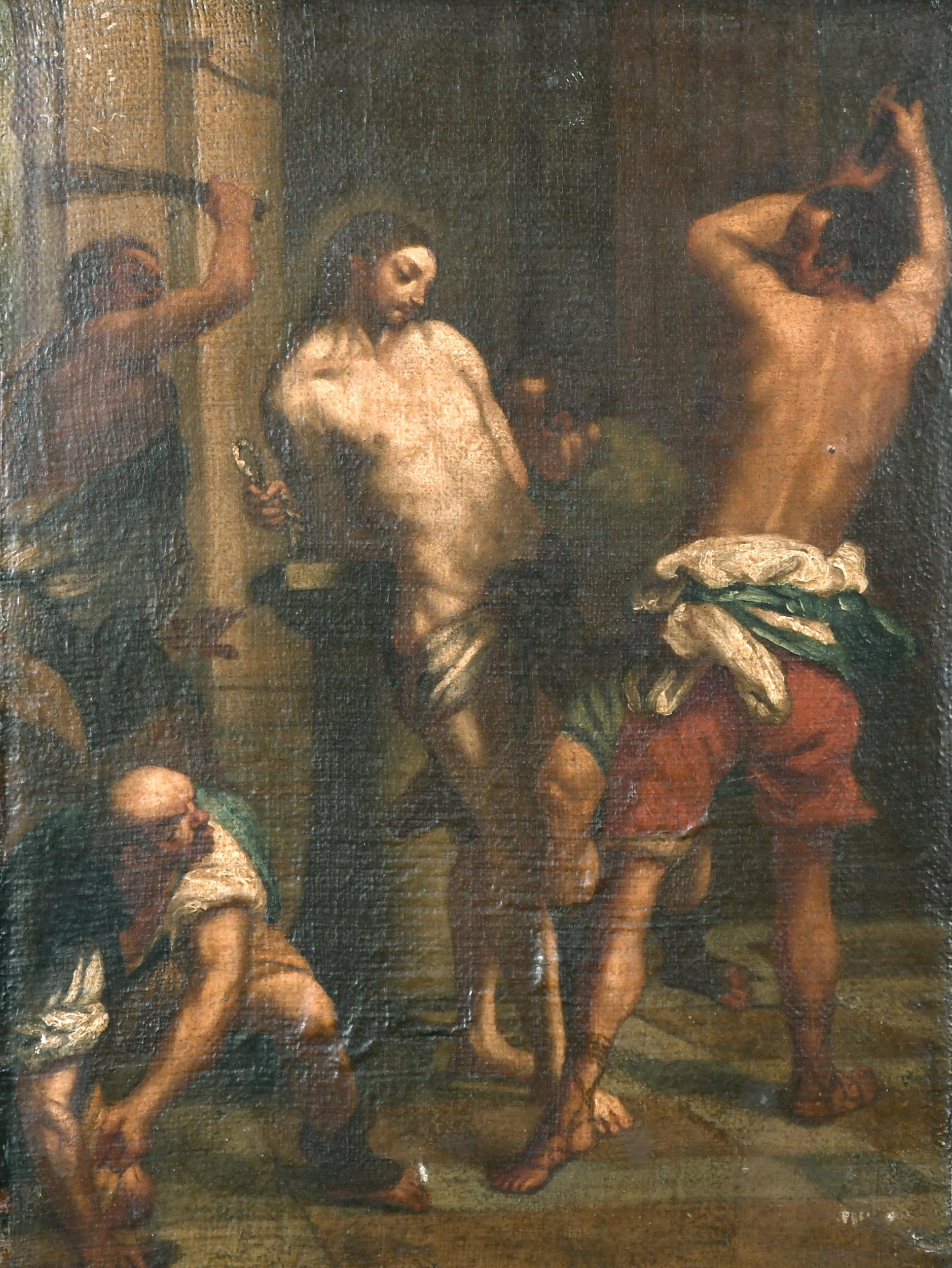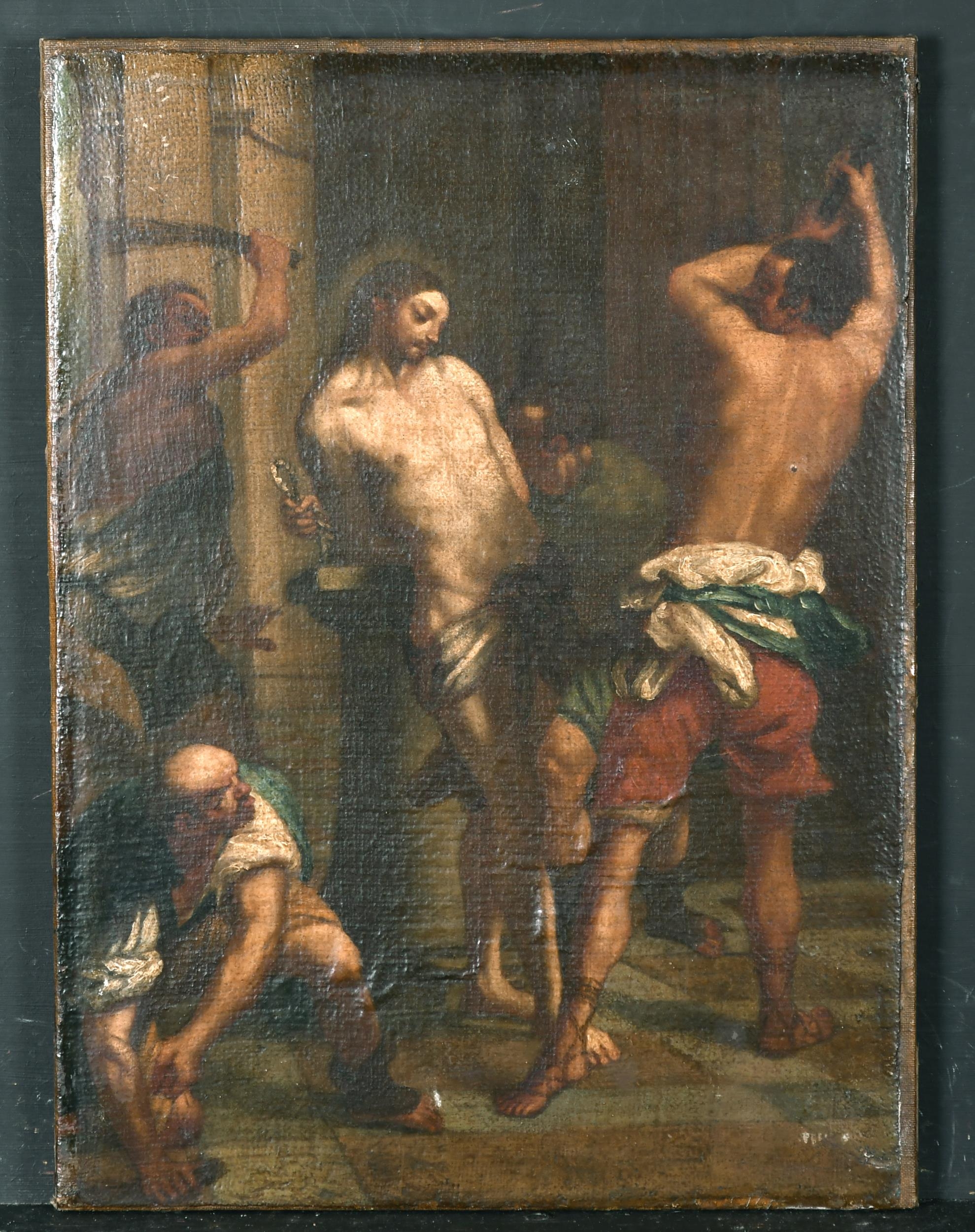 17th Century Italian School. 'The Flagellation of Christ', Oil on Canvas, Unframed, 16.25" x 12" (41.2 x 30.5cm)