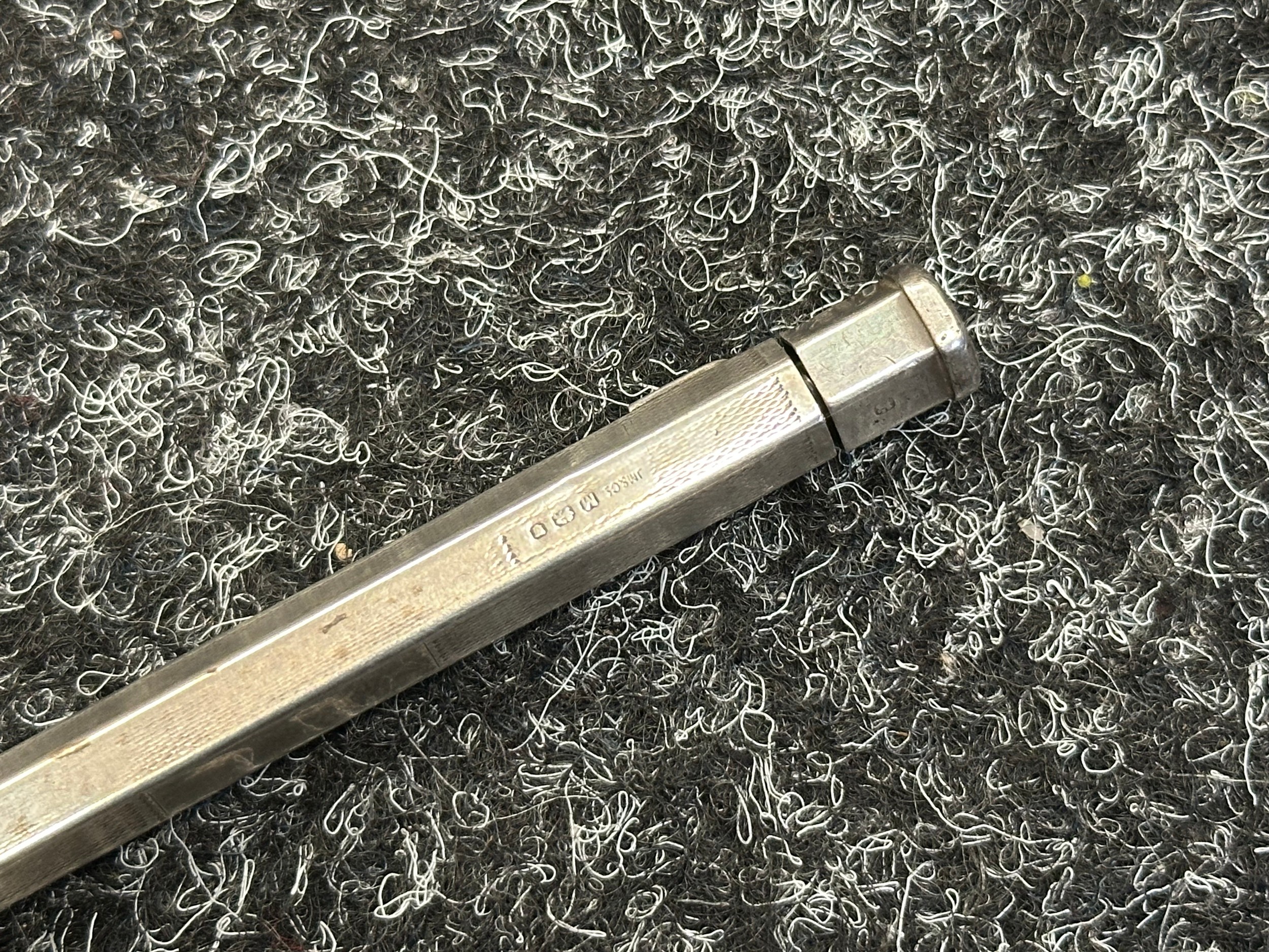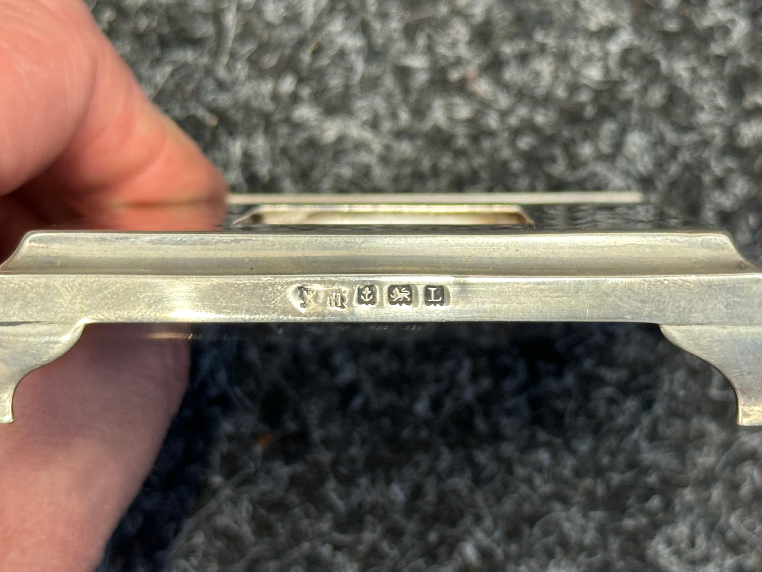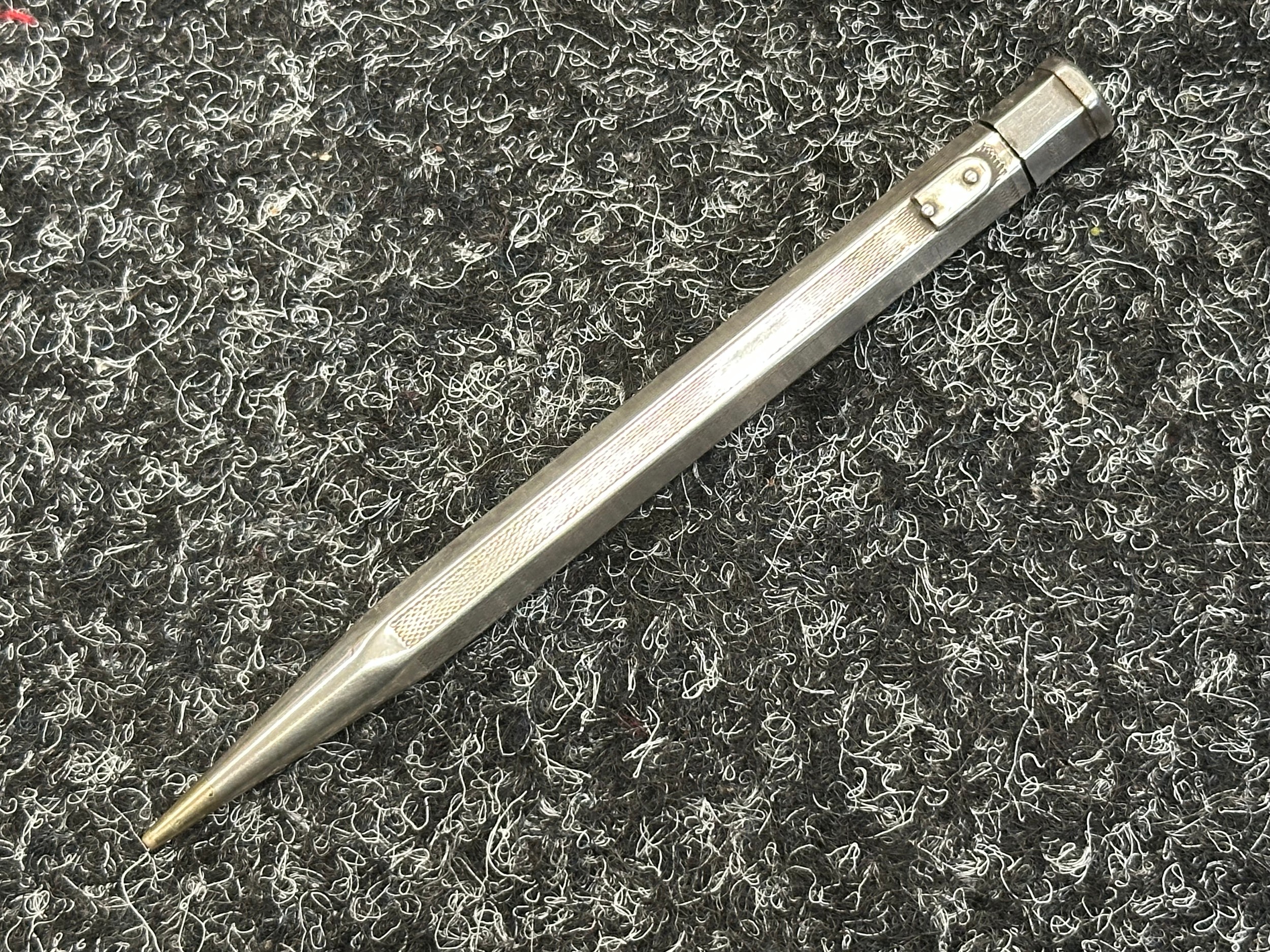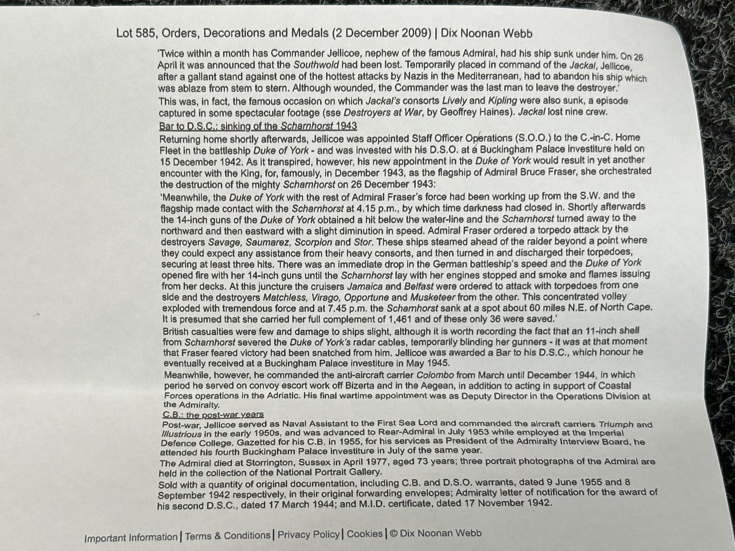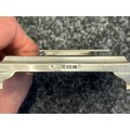 British Royal Navy Presentation Silver to Lieut Commander Christopher Theodore Jellicoe RN DSO, DSC and Bar (1903 - 1977) comprising of: Large desk cigarette box engraved with crest of HMS London and inscribed "Lieut Commander CT Jellicoe RN from the Vice Admiral, Captain and Officers of HMS London 16-5-38". Maker marked "WHH" and hallmarked Birmingham 1937. Size 138mm x 202mm x 62mm. Wood lined with two compartments. Gross weight 897g: Vesta Case engraved "CT Jellicoe", maker marked "B&S" Edinburgh hallmarked 1910: Inkwell stand engraved "Commander CT Jellicoe RN from ASDG Staff 1941" maker marked "W&H" hallmarked Birmingham 1935: Silver Propelling Pencil maker marked "JM & Co" date letter M 1947. Total weight on the three items 132g. Comes with some research regarding the officer. (4)