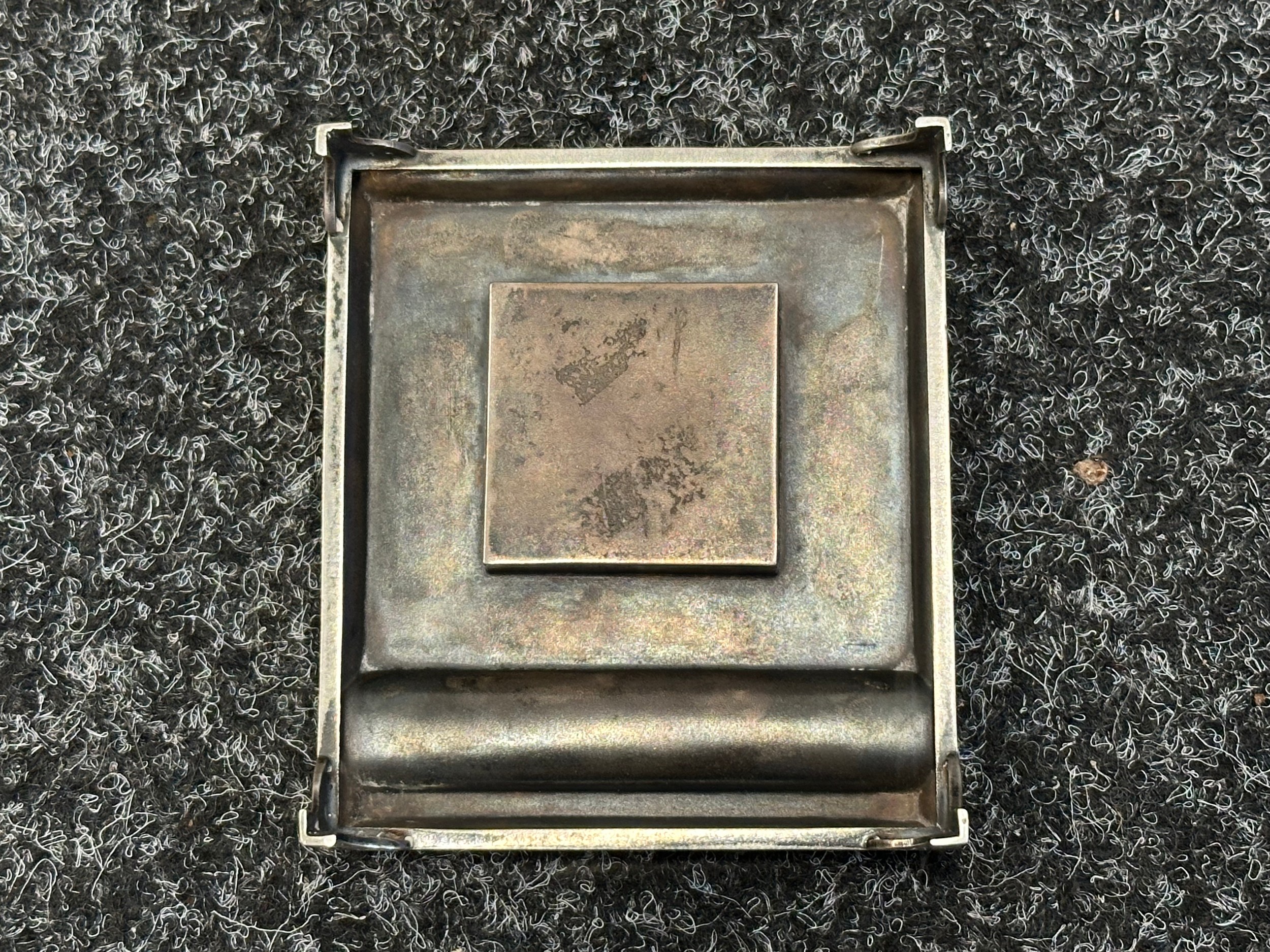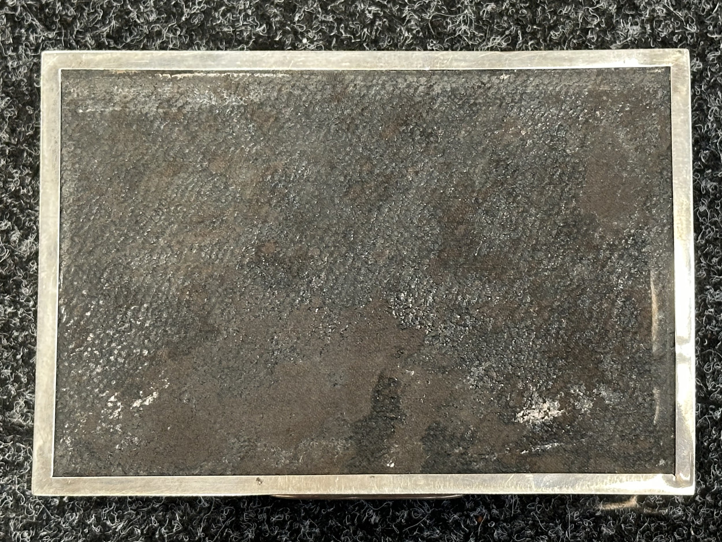 Dents to corner, back and lid of the cigarette box. No glass to inkwell stand.