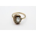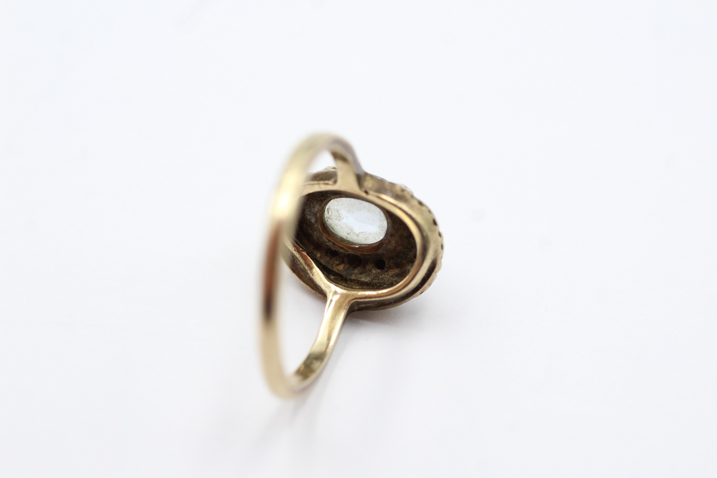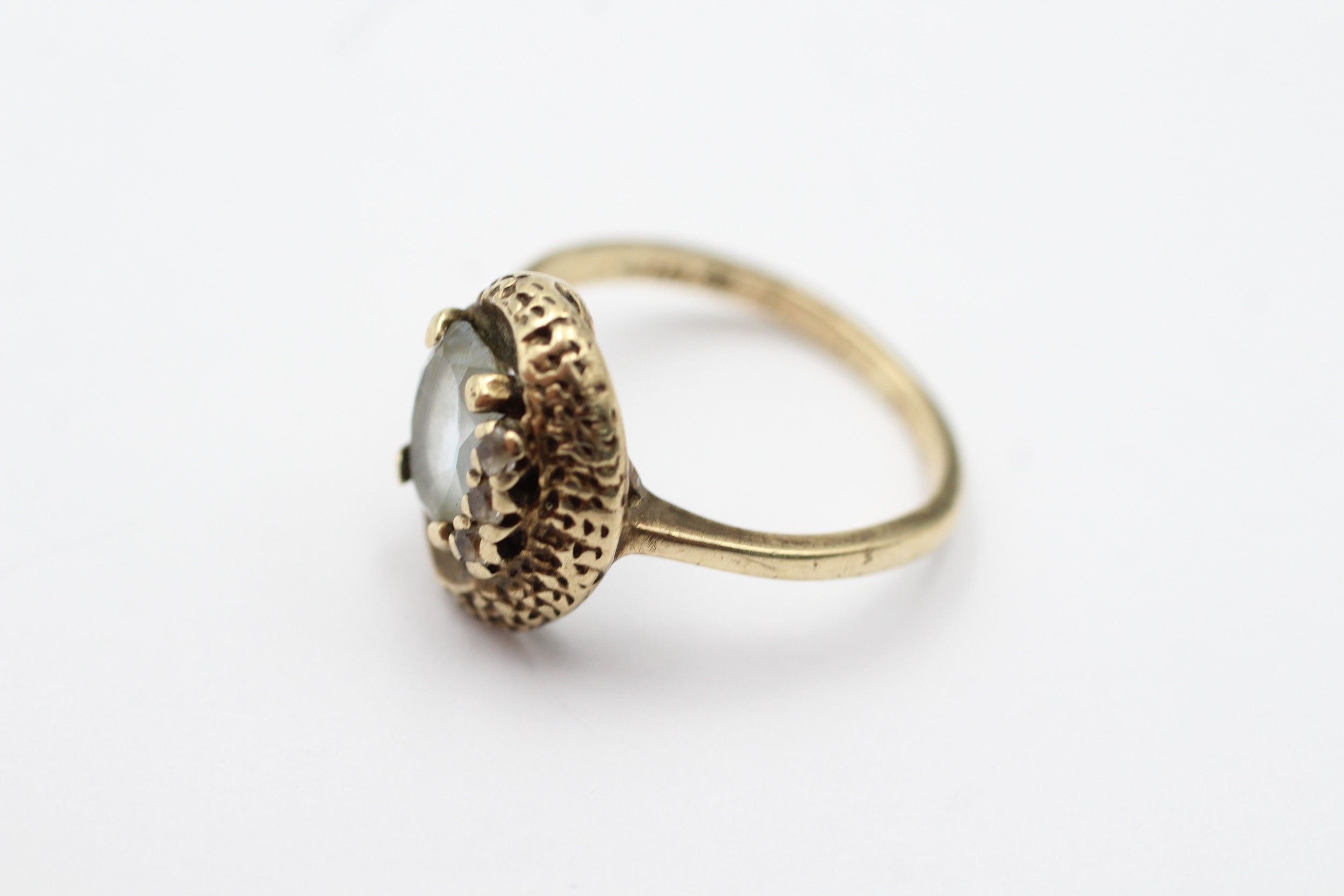 9ct gold vintage faux aquamarine & clear gemstone dress ring (3.2g) 4430