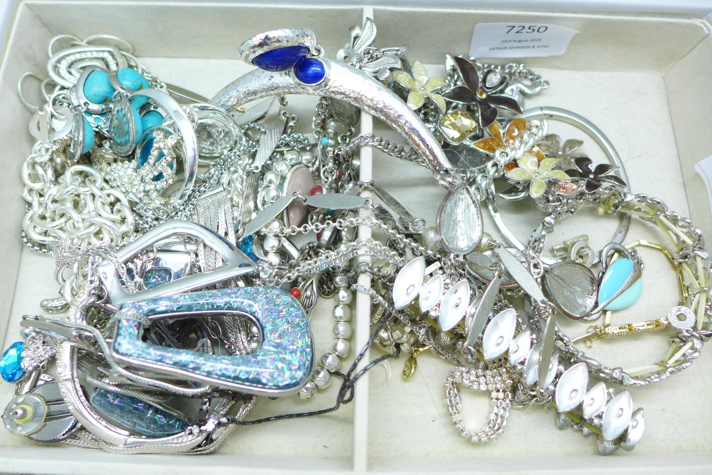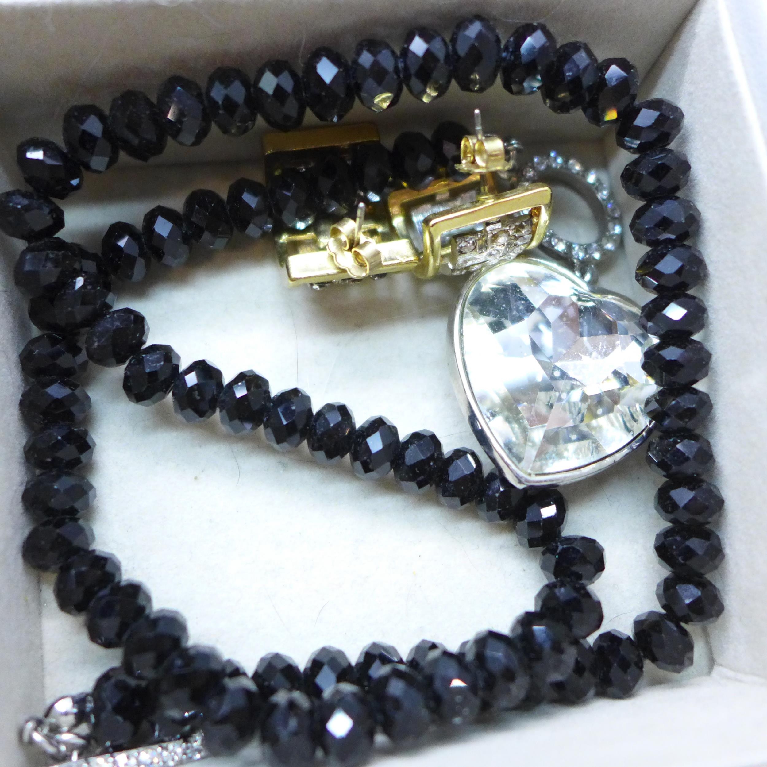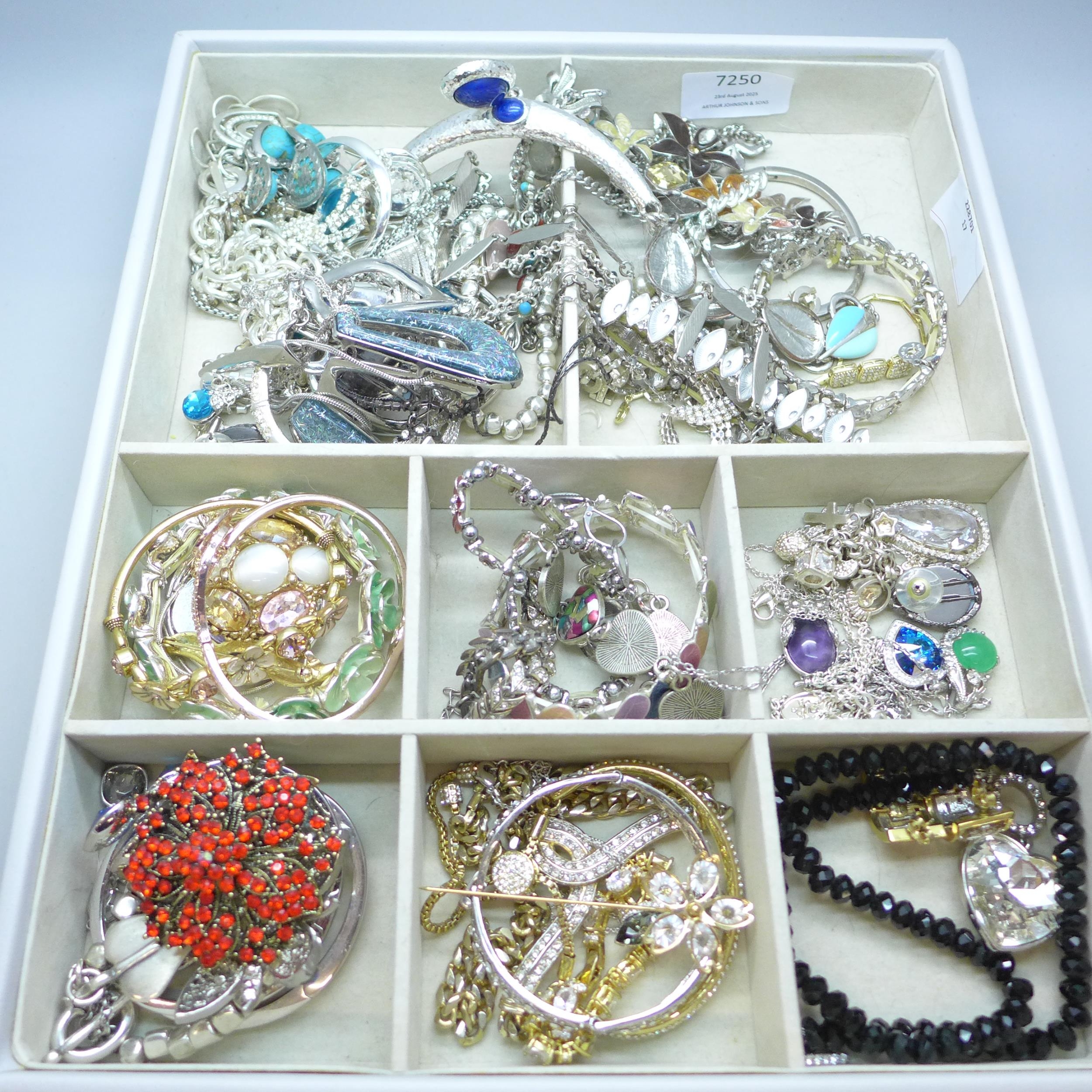 A tray containing costume jewellery