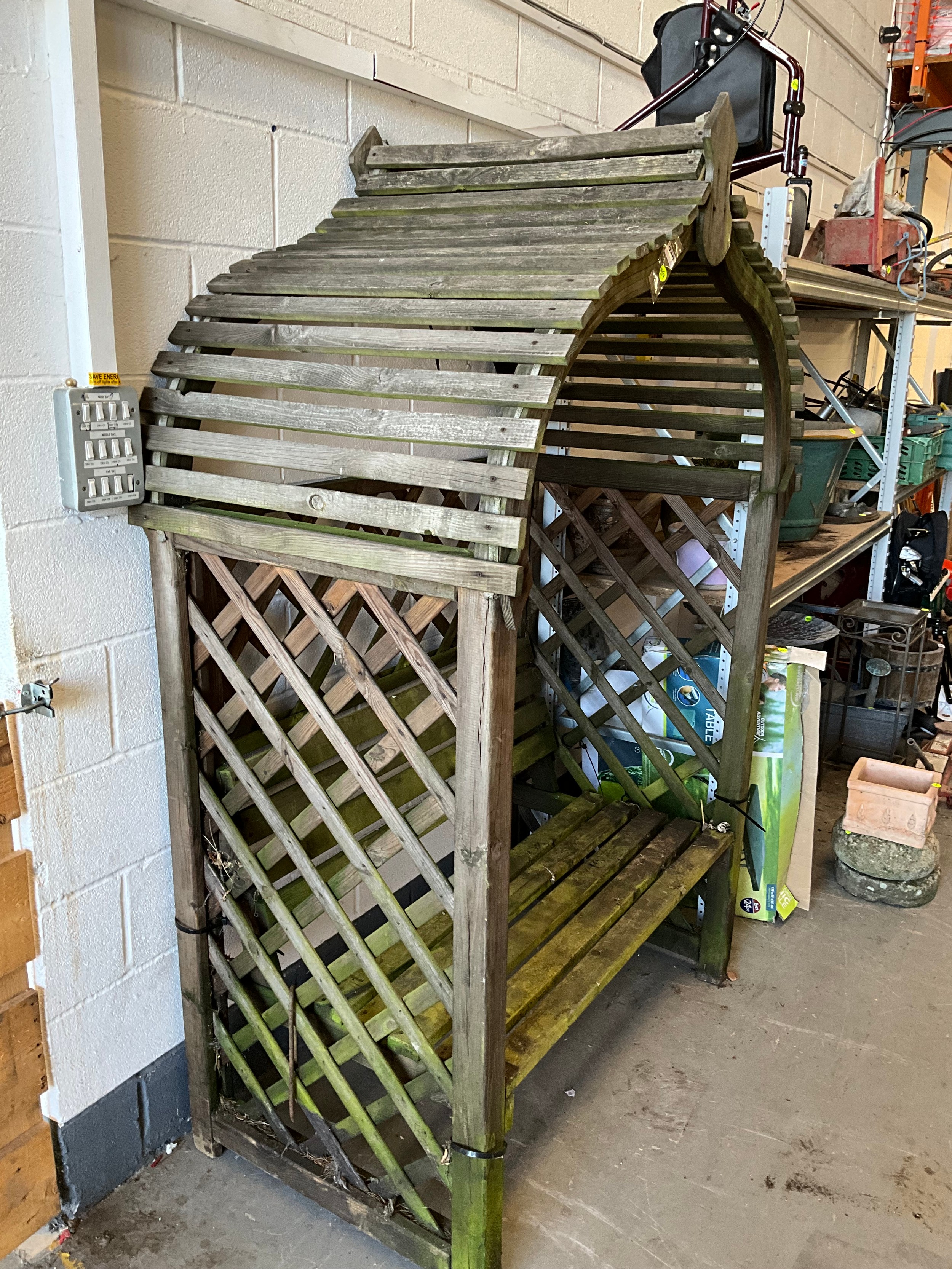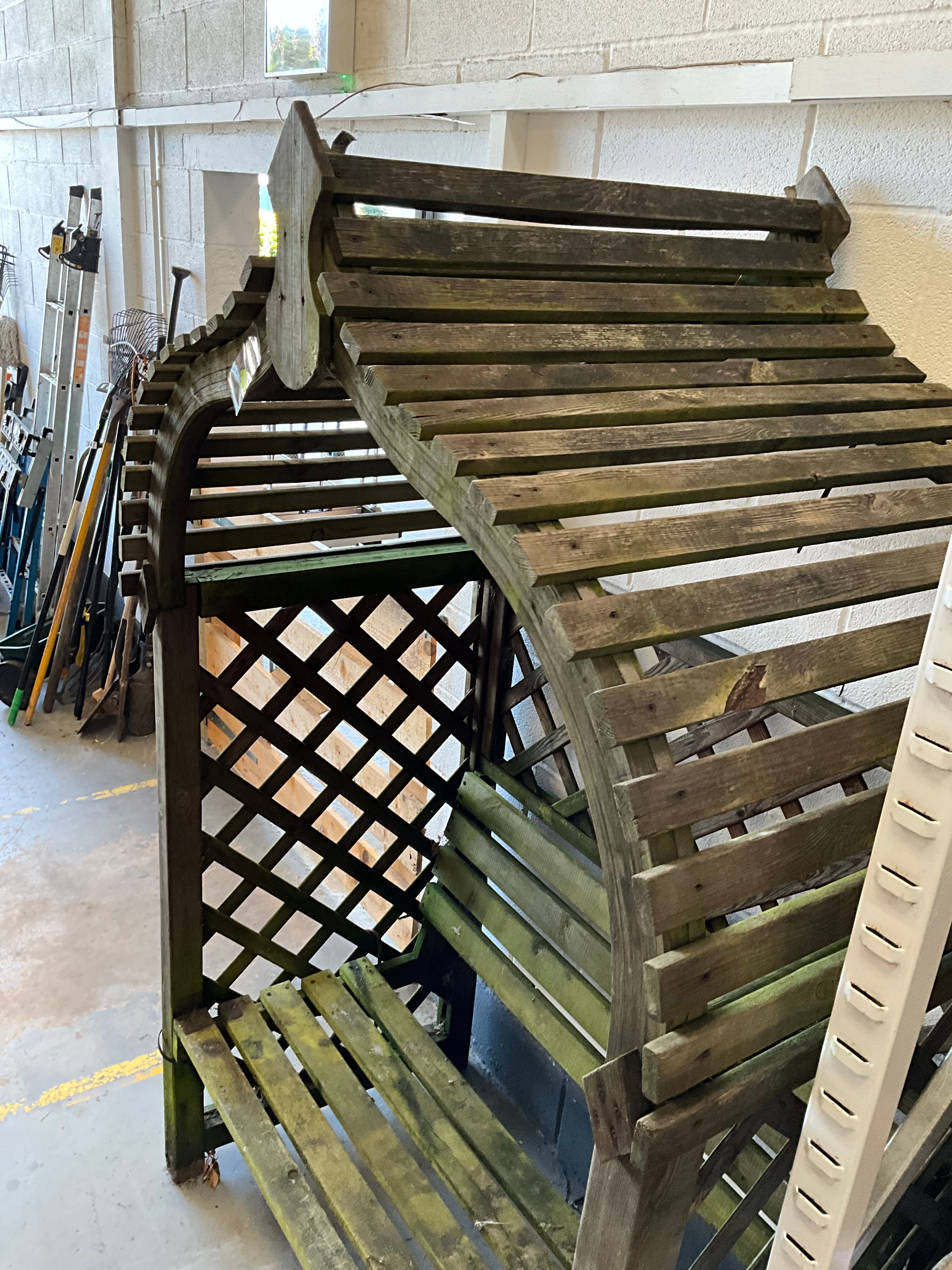 WOODEN GARDEN ARBOUR SEAT H81"W53"D30"