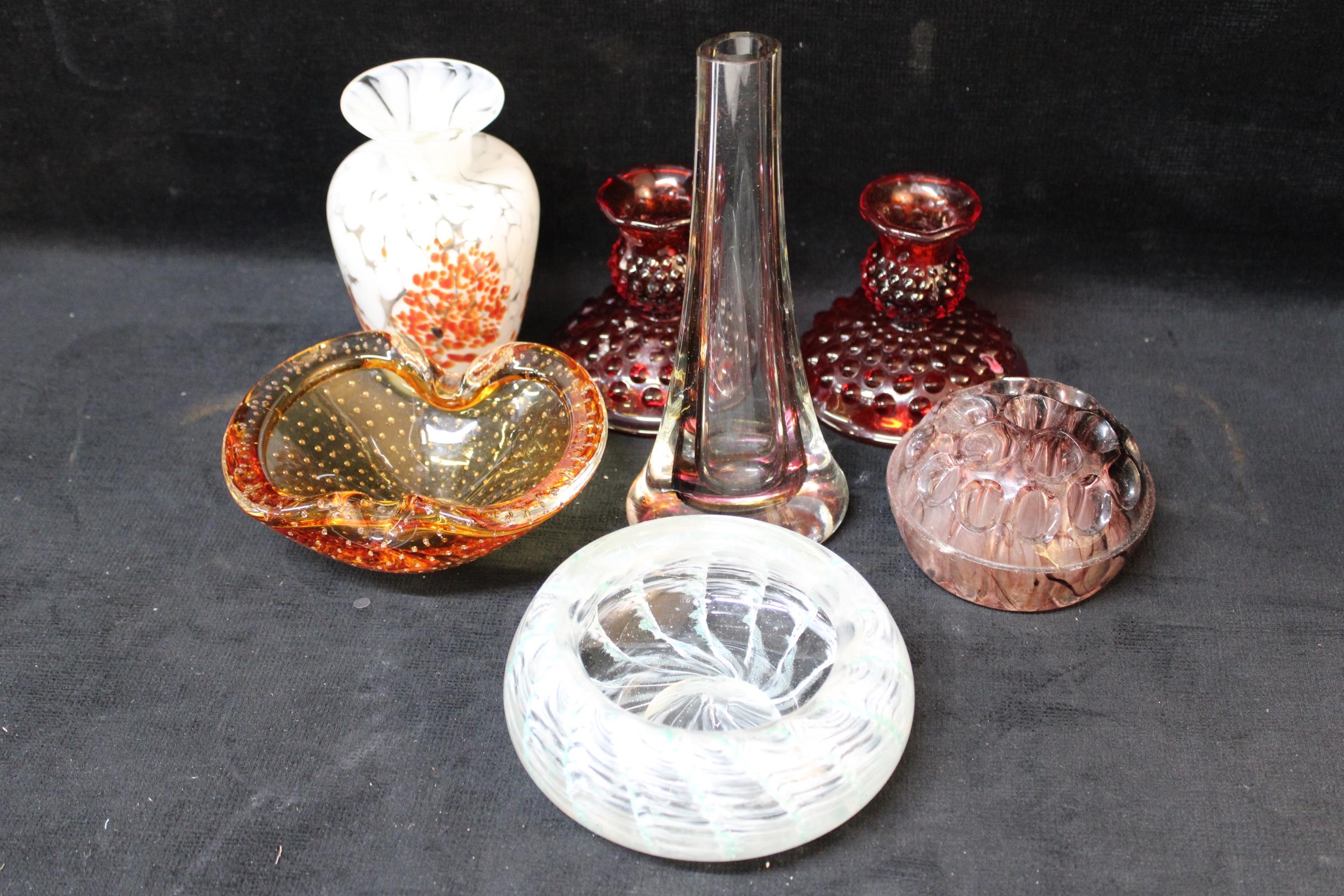 A selection of coloured glass items