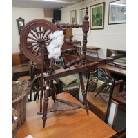 Telephone table is in a condition consummate with age and use with surface wear to table top and a hole in black vinyl upholstery