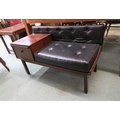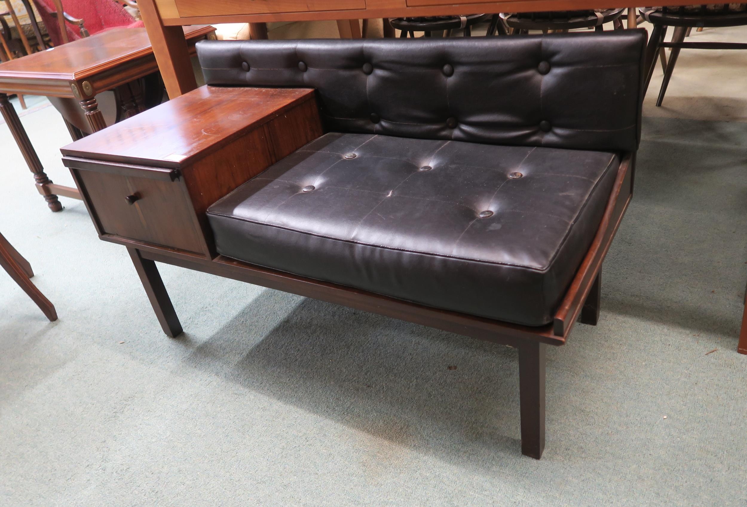 A mid 20th century Afromosia teak Chippy telephone table with black vinyl seat