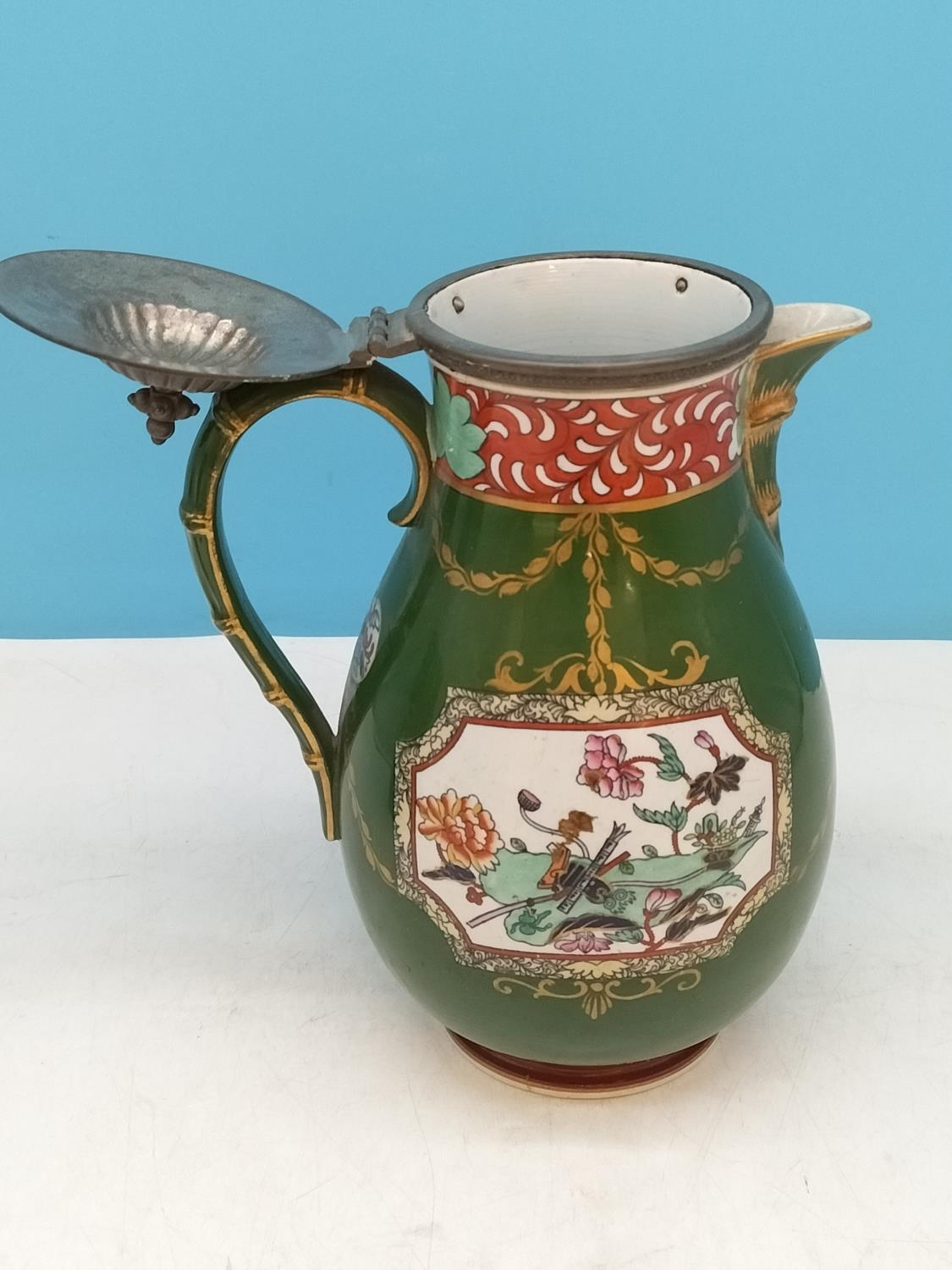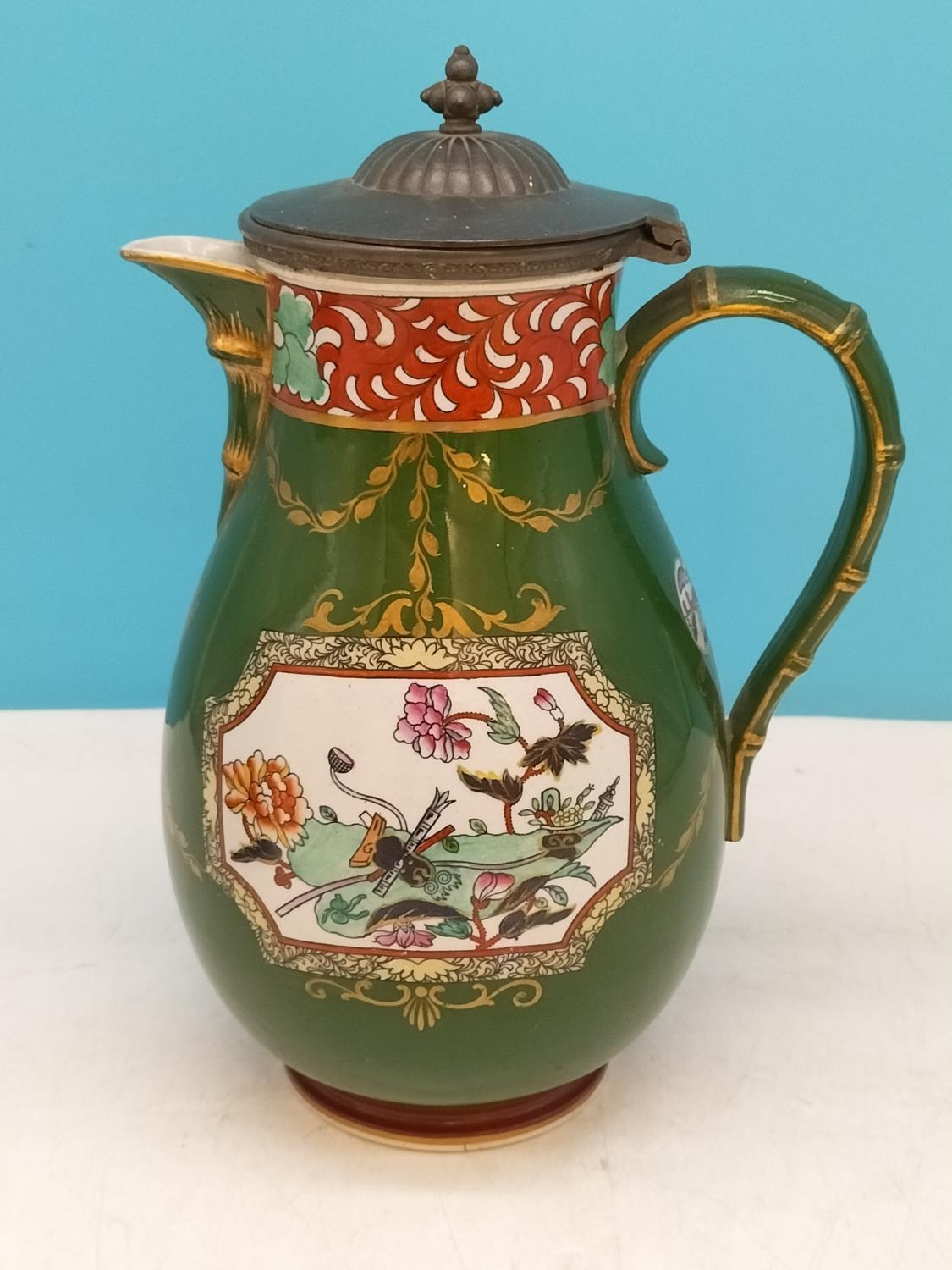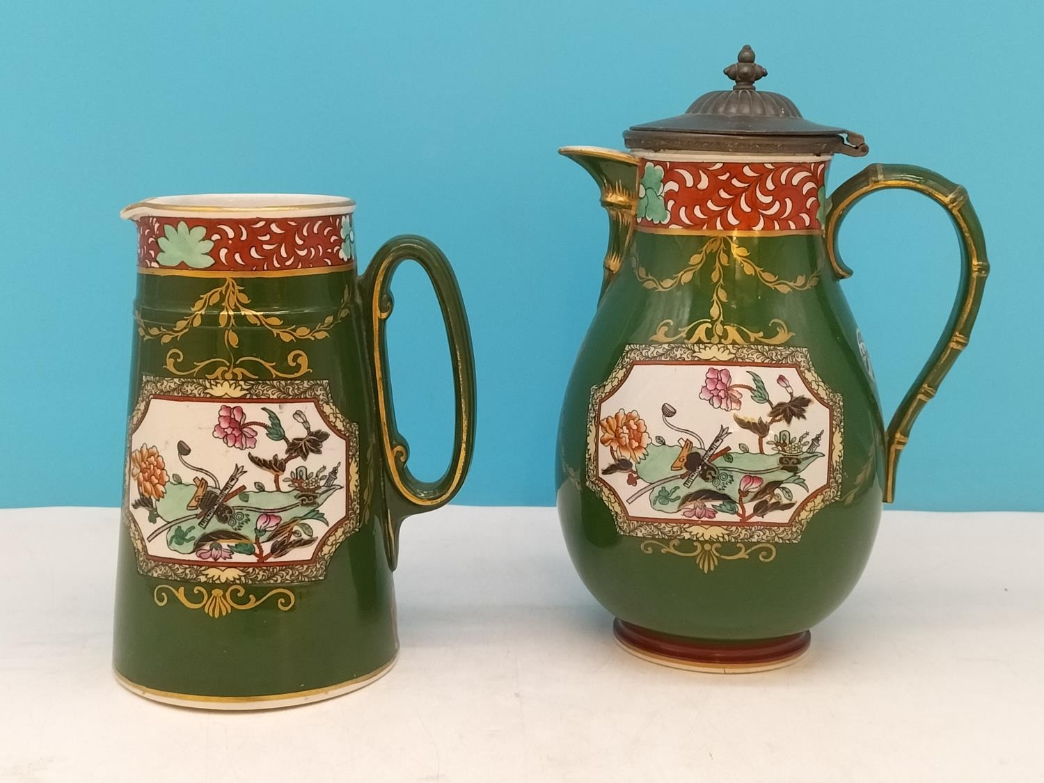 c1900 Ashworths Ironstone Jugs (2), One Lidded. Tallest 25cm has Hairline Crack.