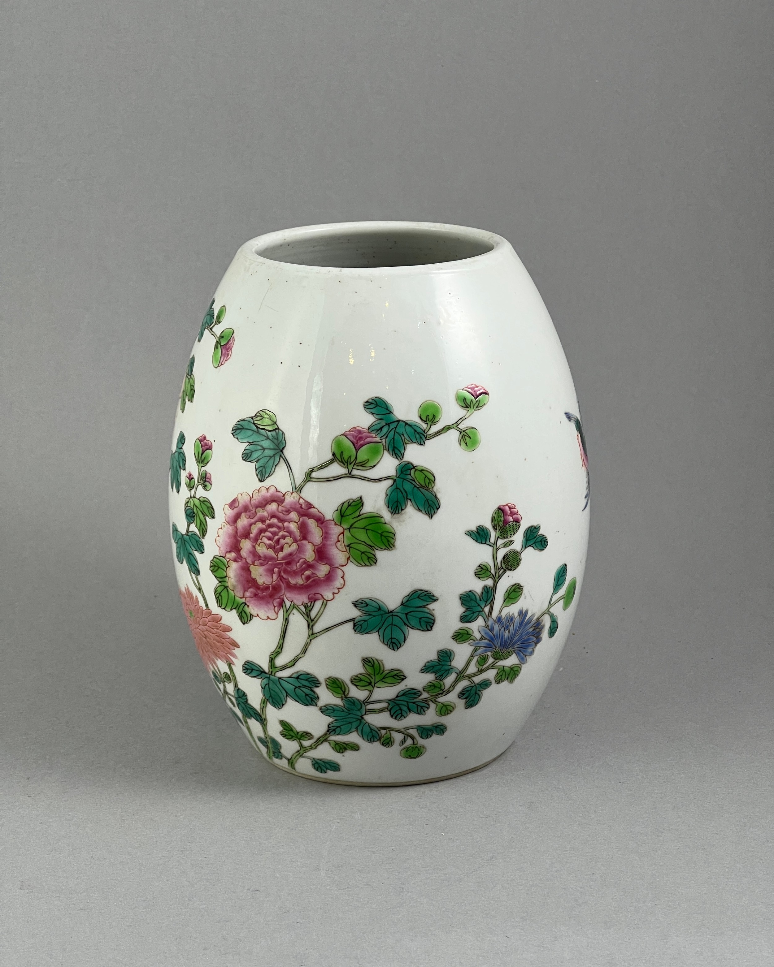 A CHINESE FAMILLE ROSE OVOID PORCELAIN VASE