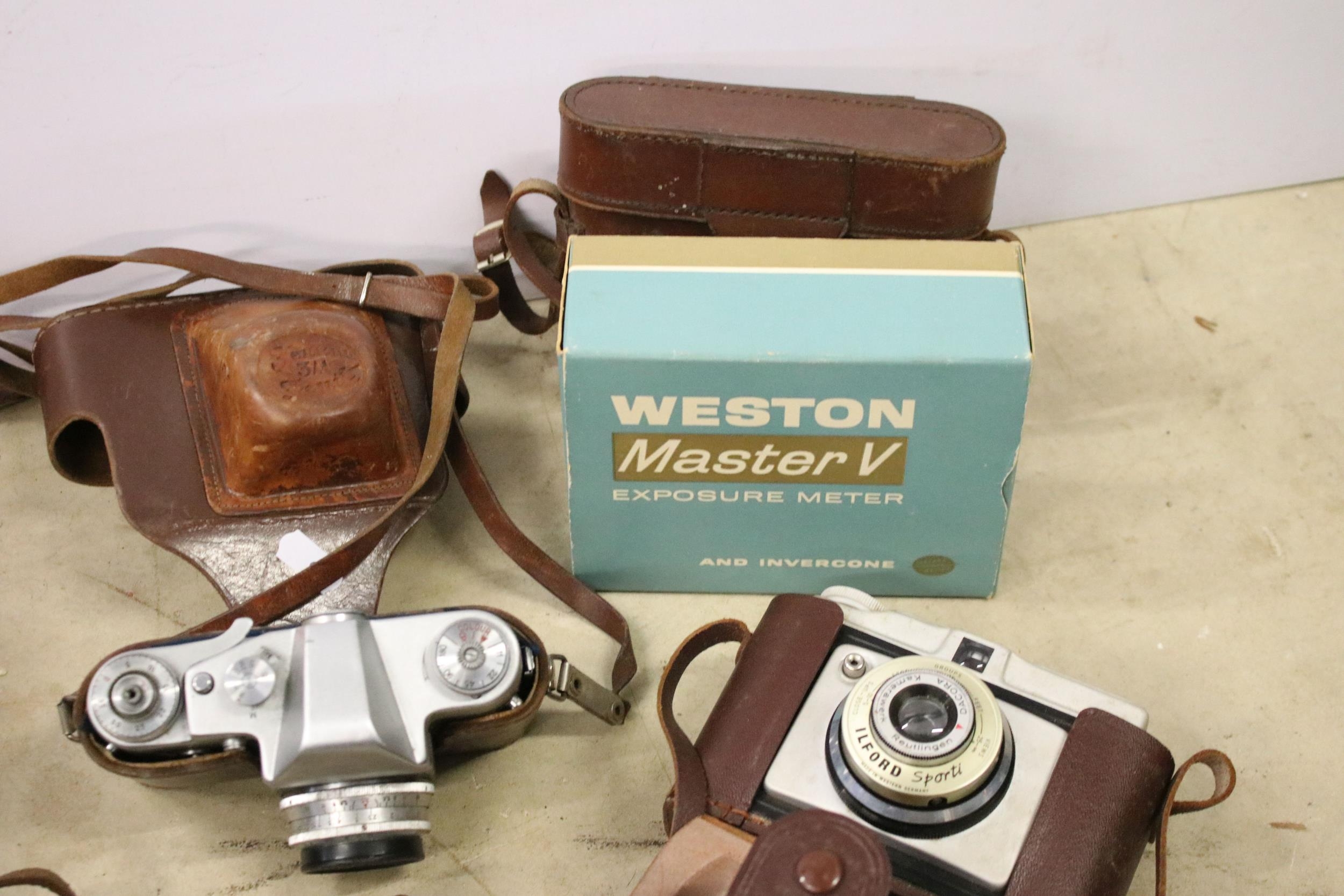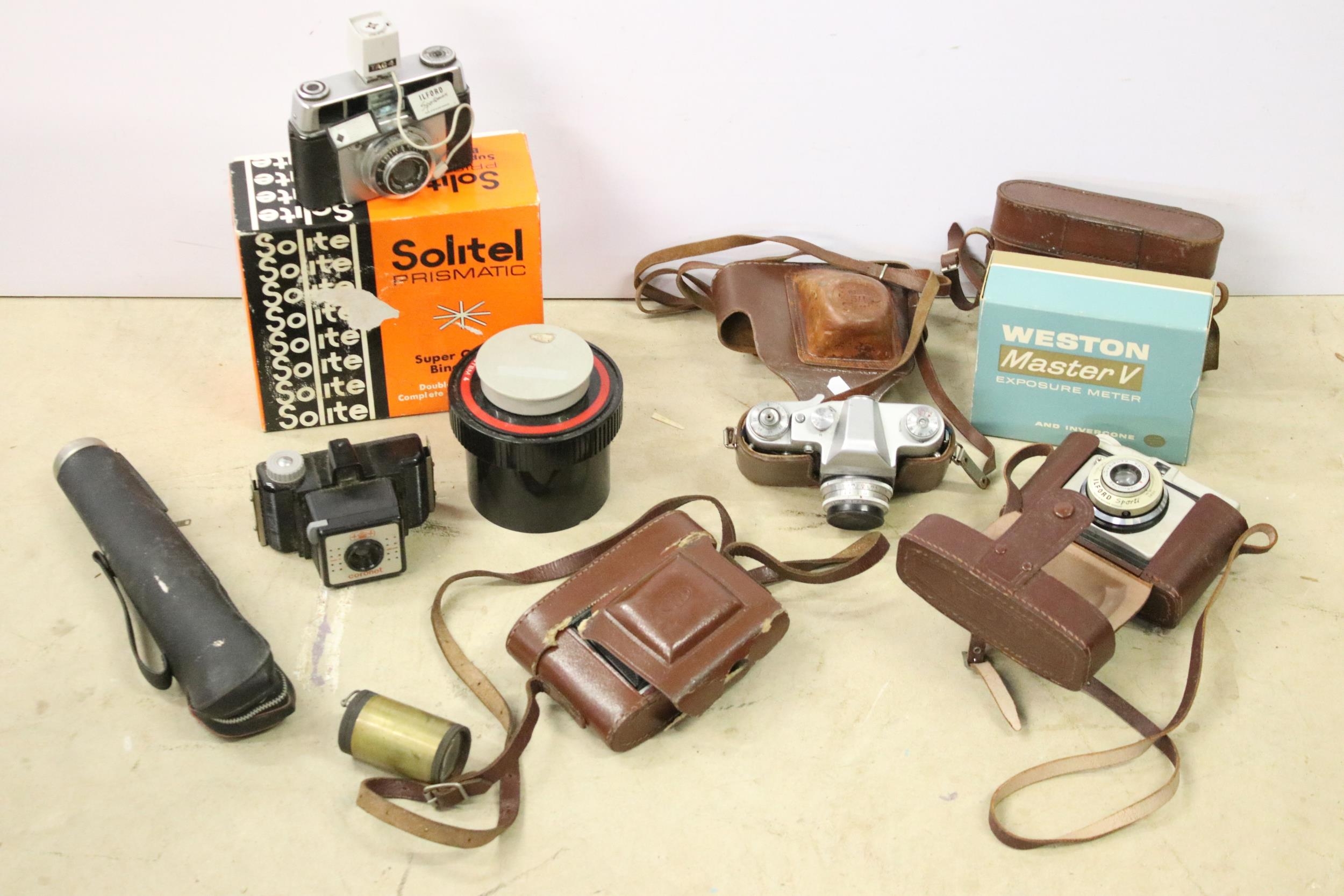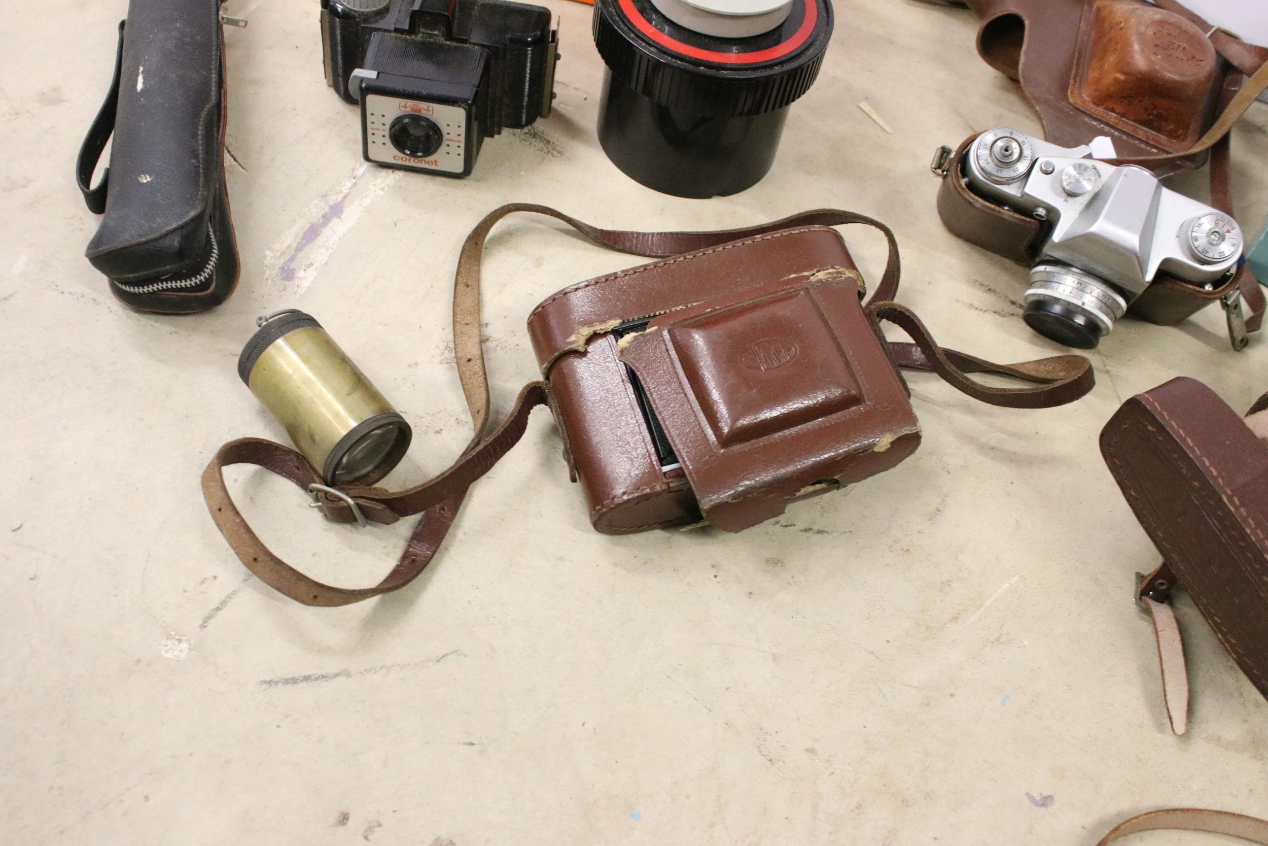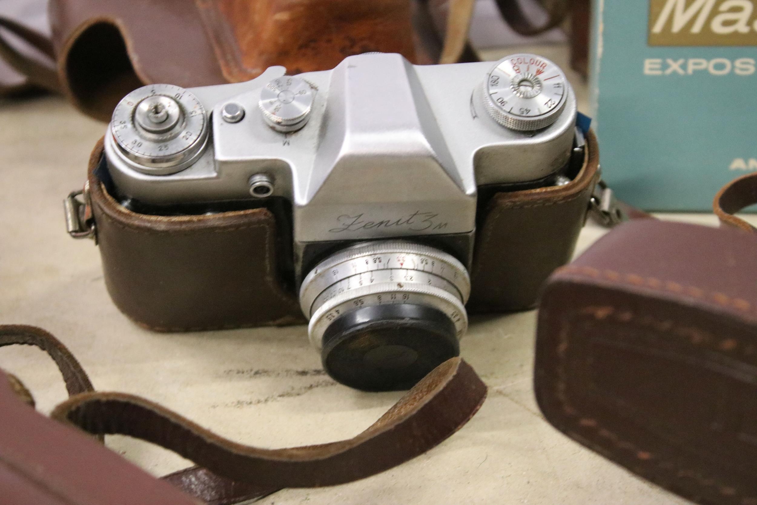 Collection of mixed cameras to include Zenit 3M, Ilford Sporti, Ilford Sportsman, Coronet, etc