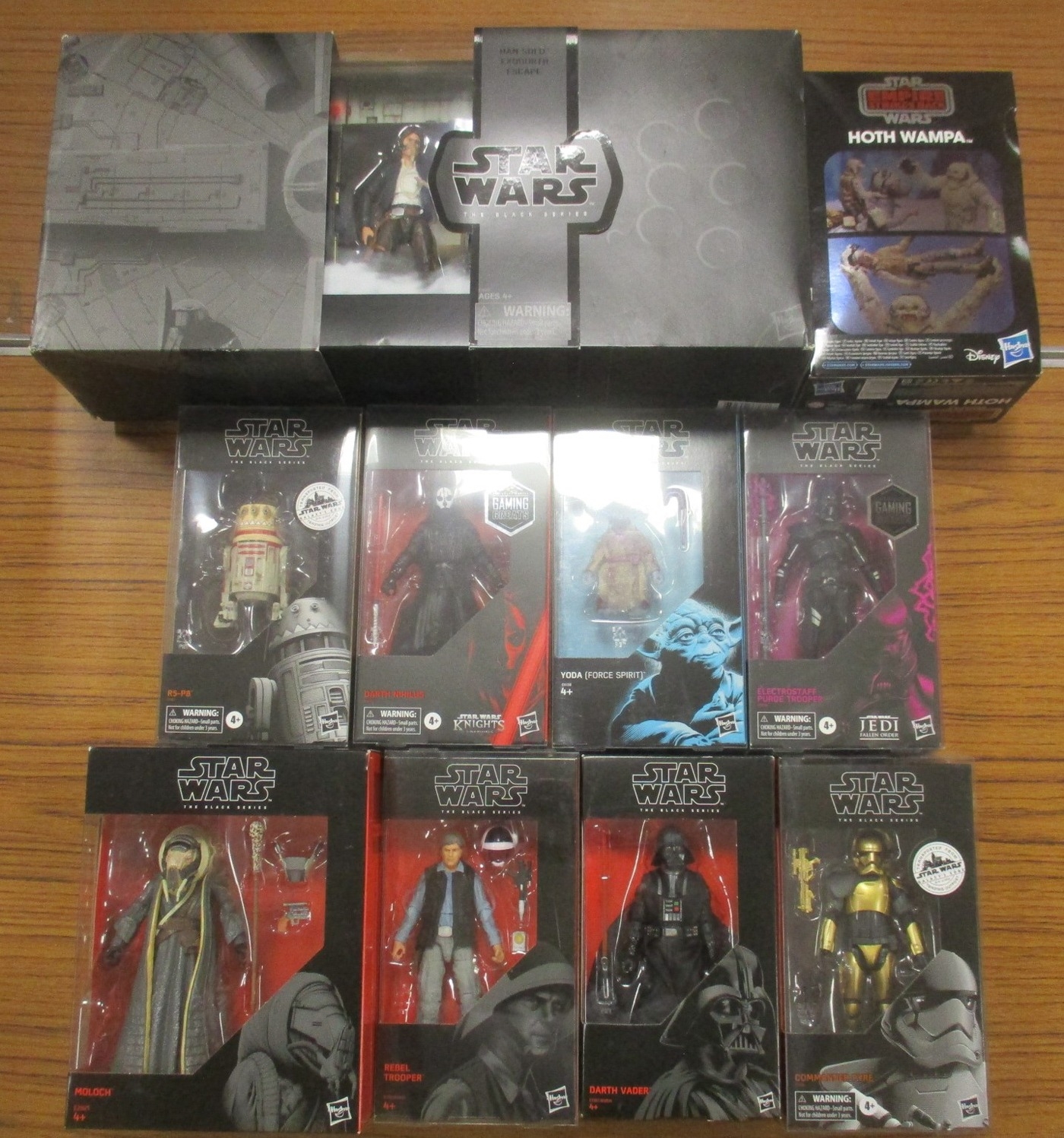Star Wars. Hasbro. Collection of The Black Series figures, generally mint in excellent to near mint boxes, includes Han Solo Exogorth Escape, Hoth Wampa, etc. Qty 10 (B)