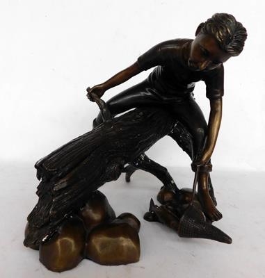 Bronze water feature- boy on log
