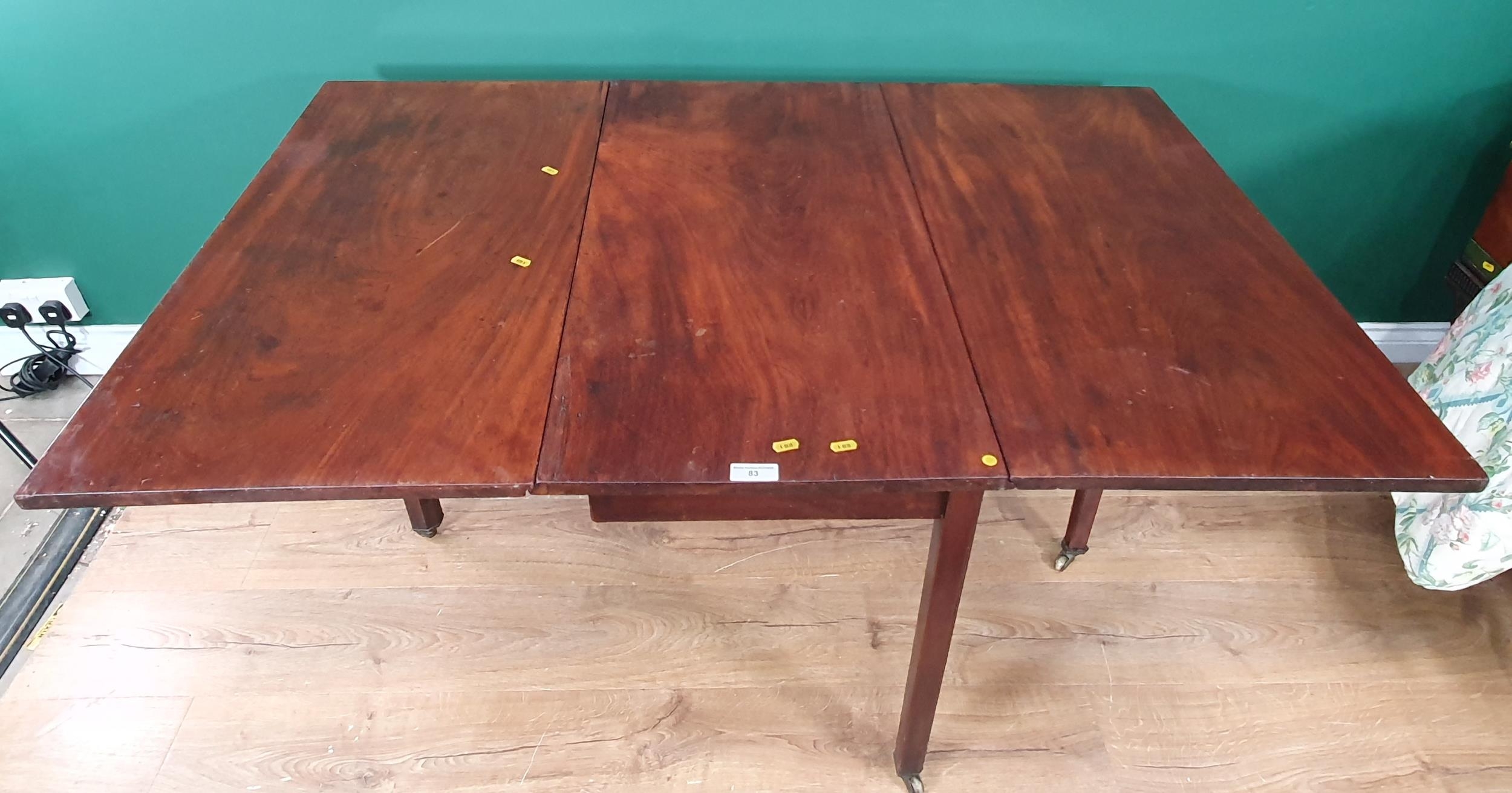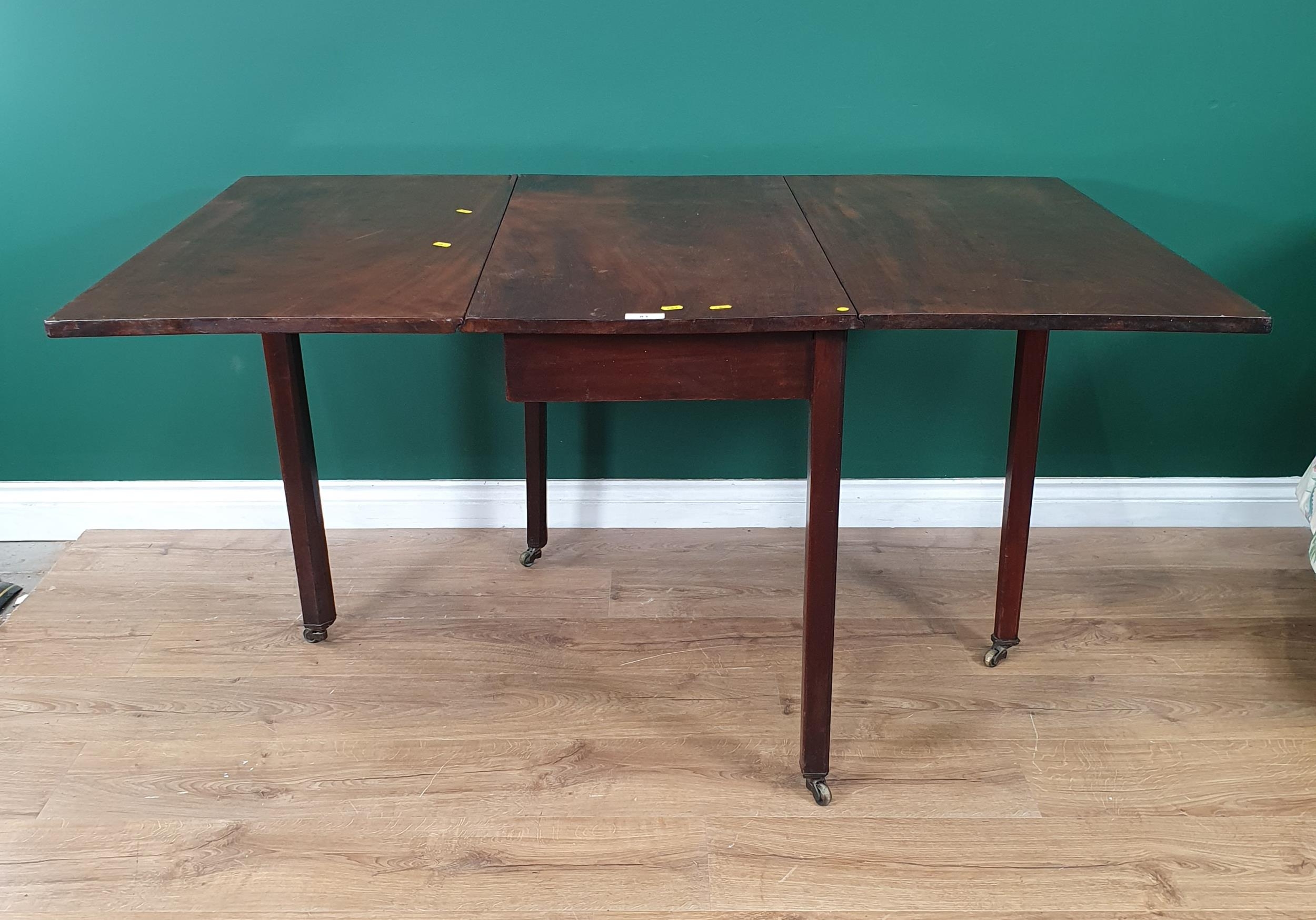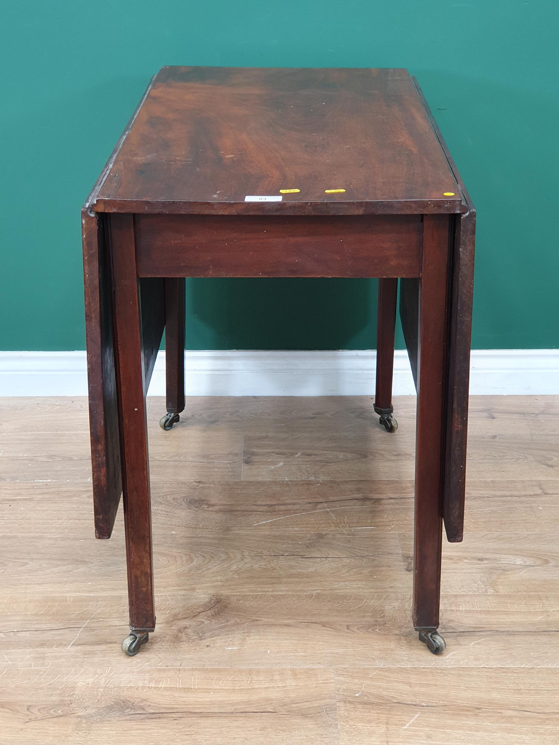 A 19th Century mahogany Dropleaf Table on chamfered supports and castors, 3ft Long x 2ft 5"High and a mahogany Dressing Mirror
