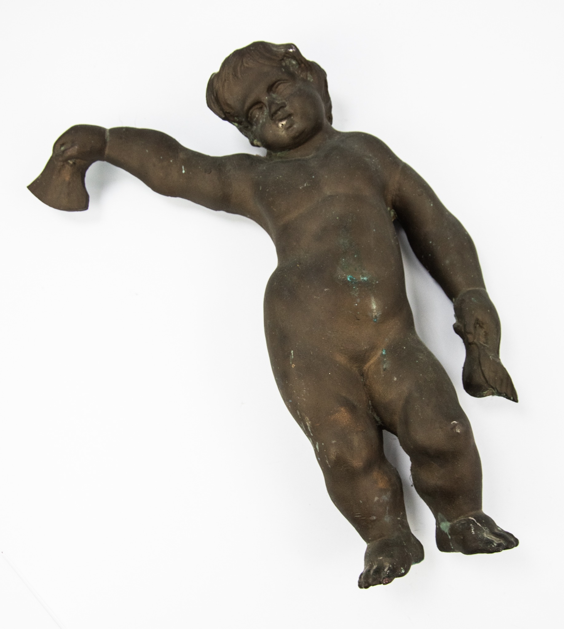 16TH CENTURY PHOSPHOR BRONZE PUTTO FIGURE, originally part of a wall frieze from the Old Wellington Inn, Manchester, circa 1550, 18" high (45.5cm)