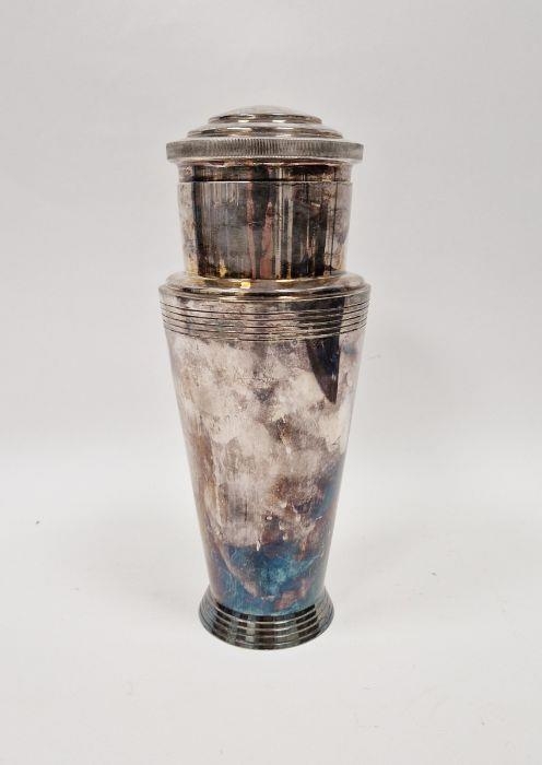 Circa 1930's Mappin & Webb silver-plated Art Deco cocktail shaker designed by Keith Murray, W28721
