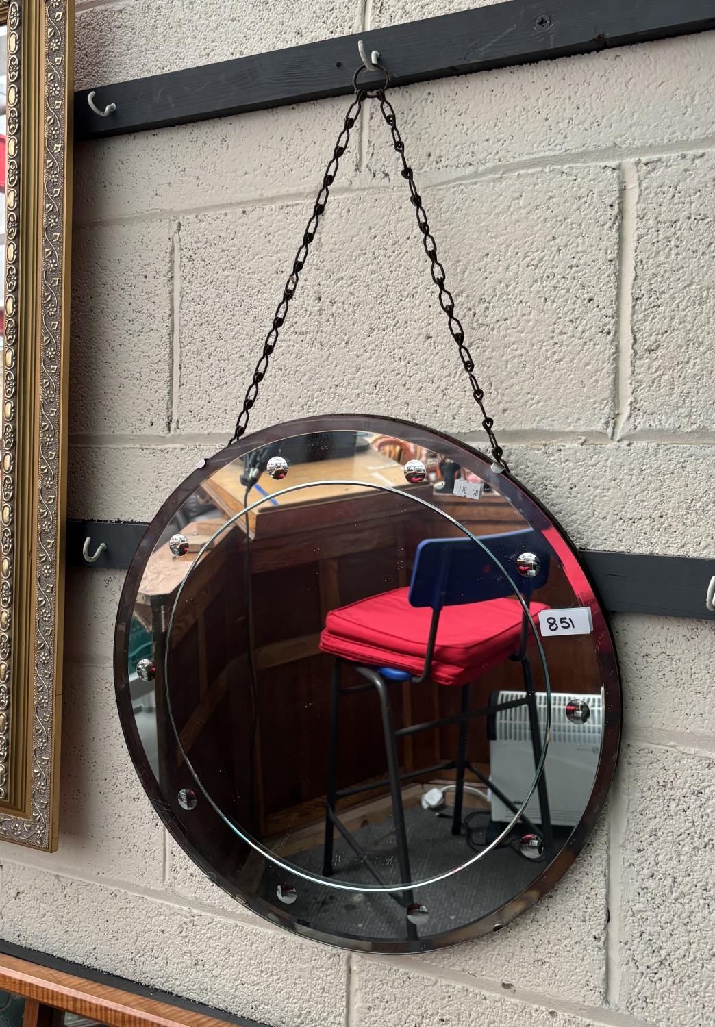 Vintage circular bevel edge mirror (45cm diameter)