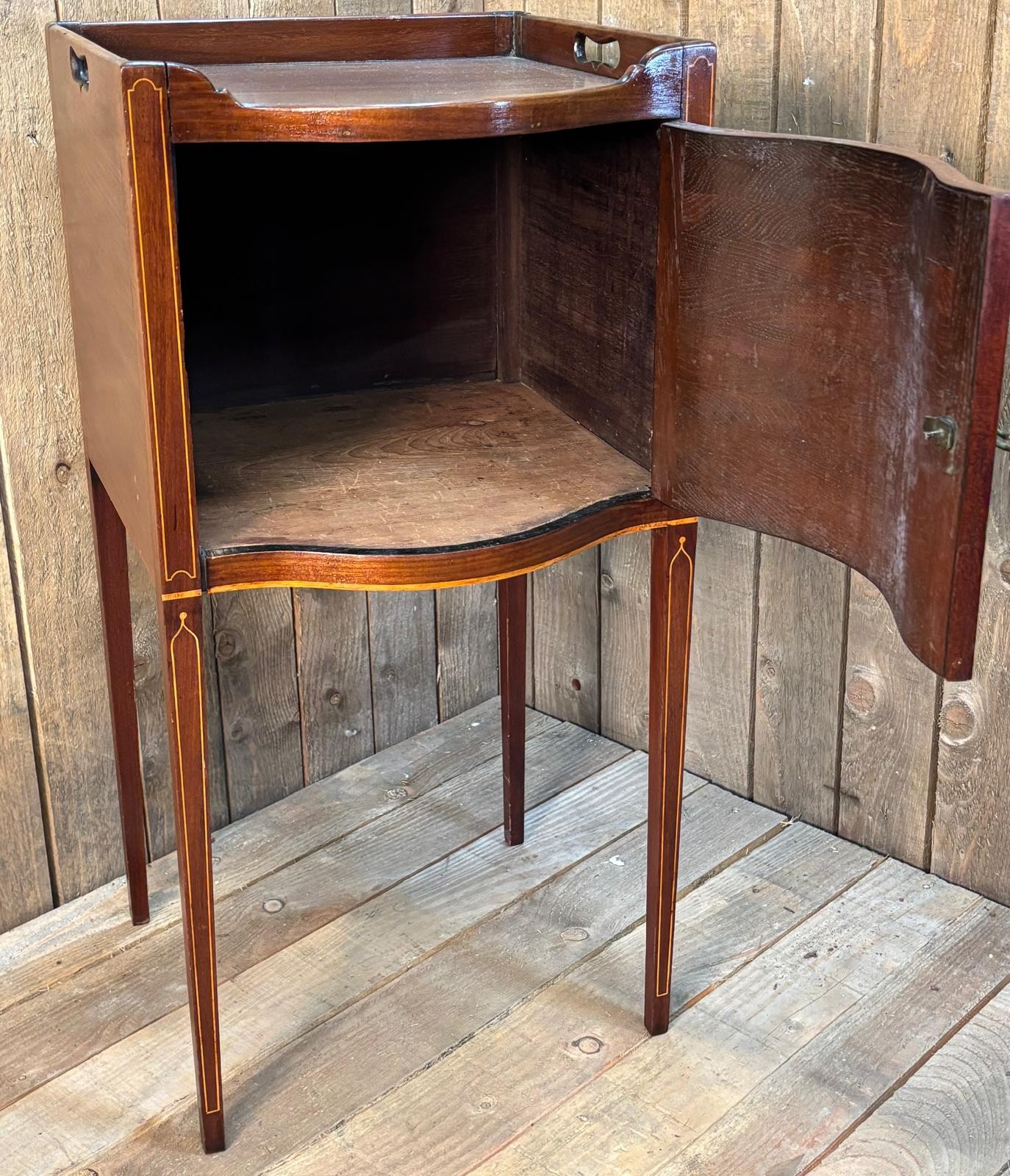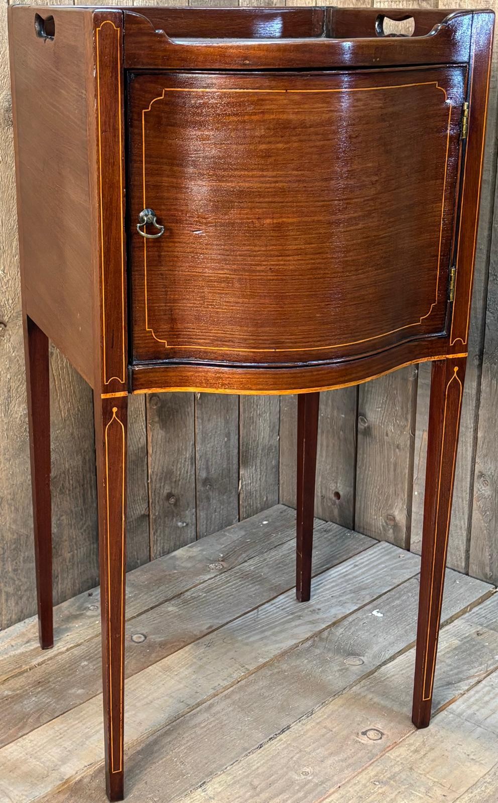 19th century bow front pot cupboard. Raised on square tapered legs. 77x38x38cm