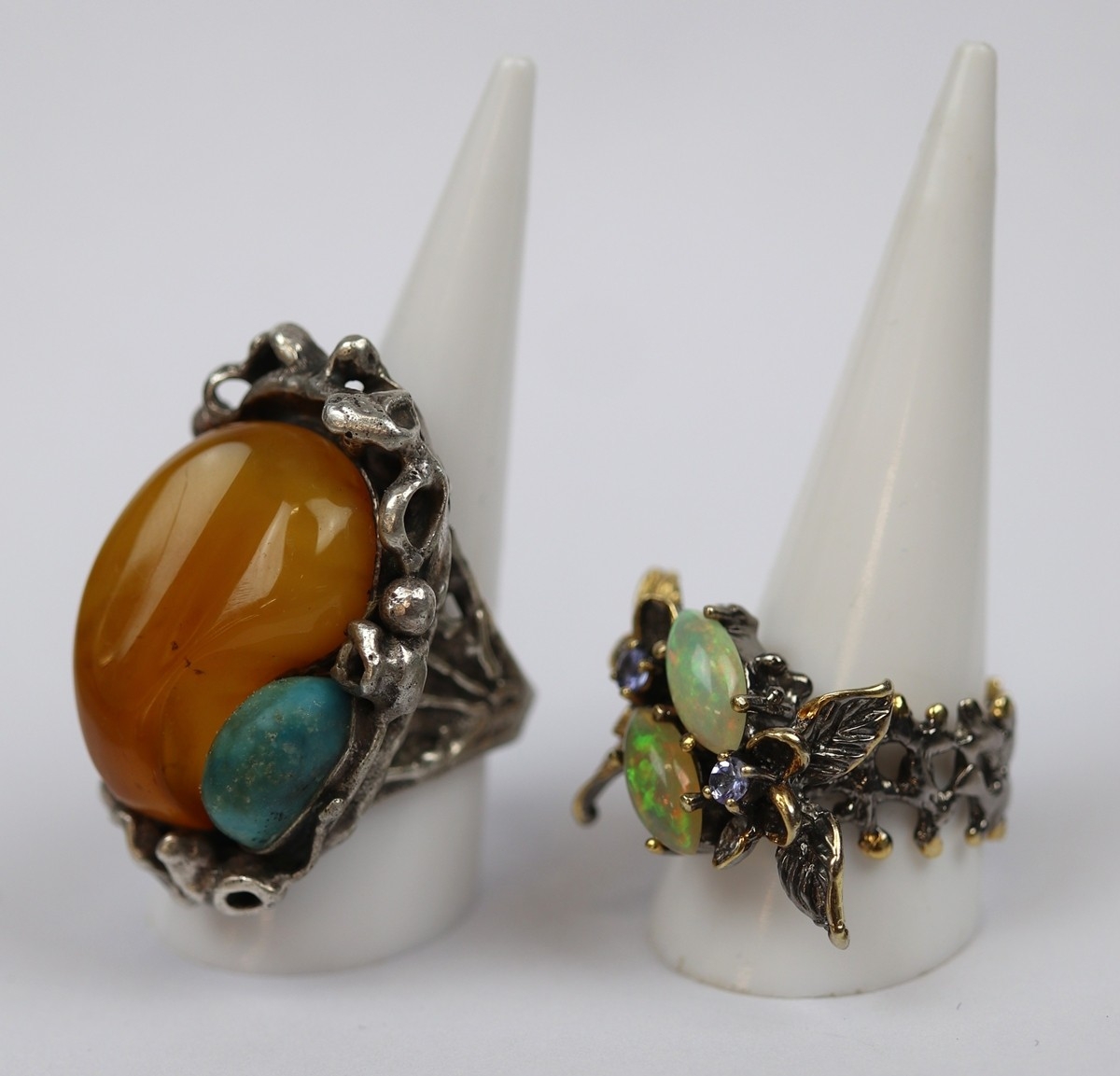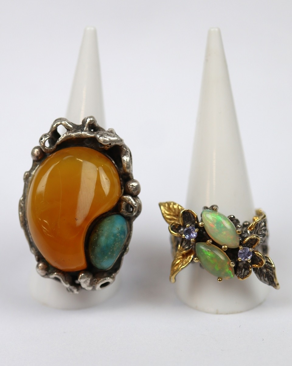 2 large silver stone set rings