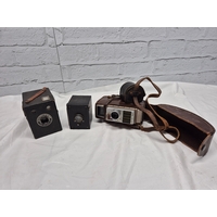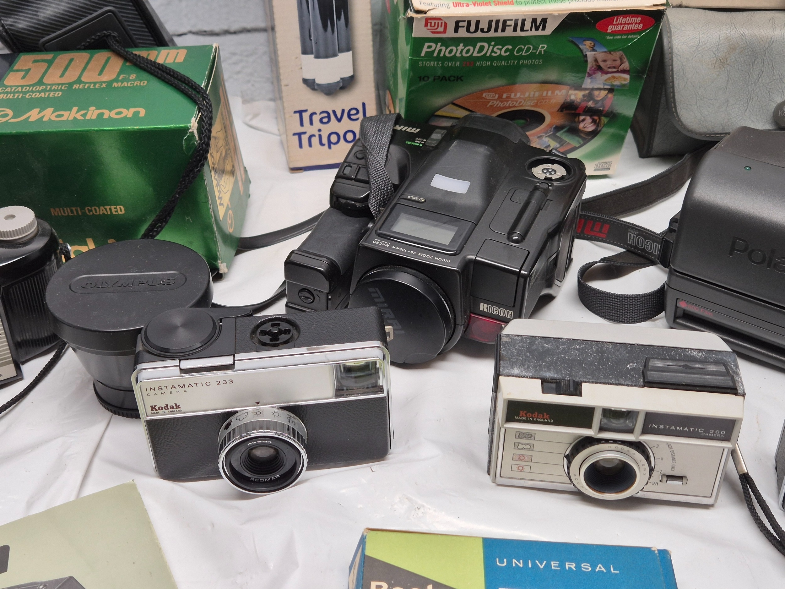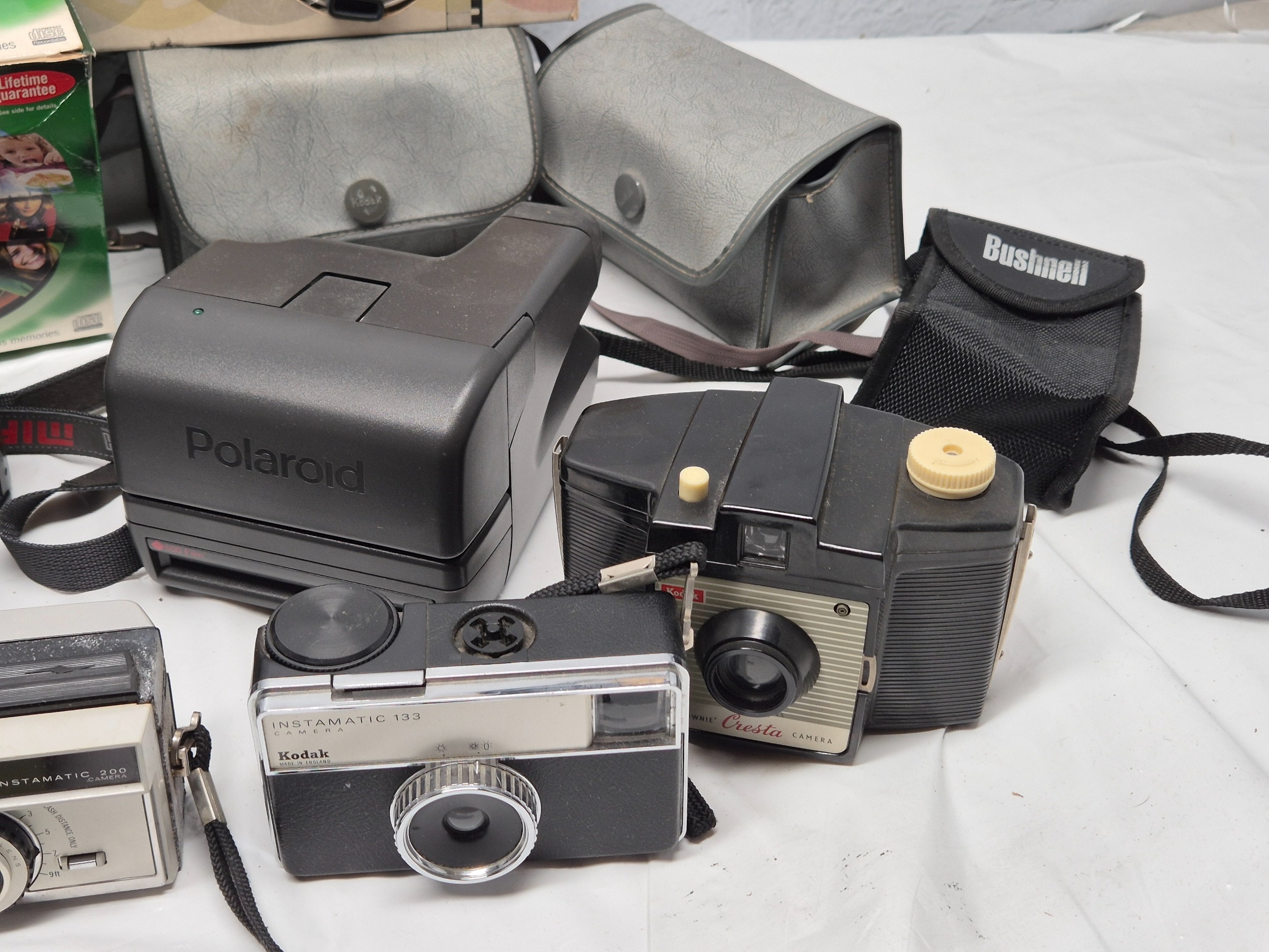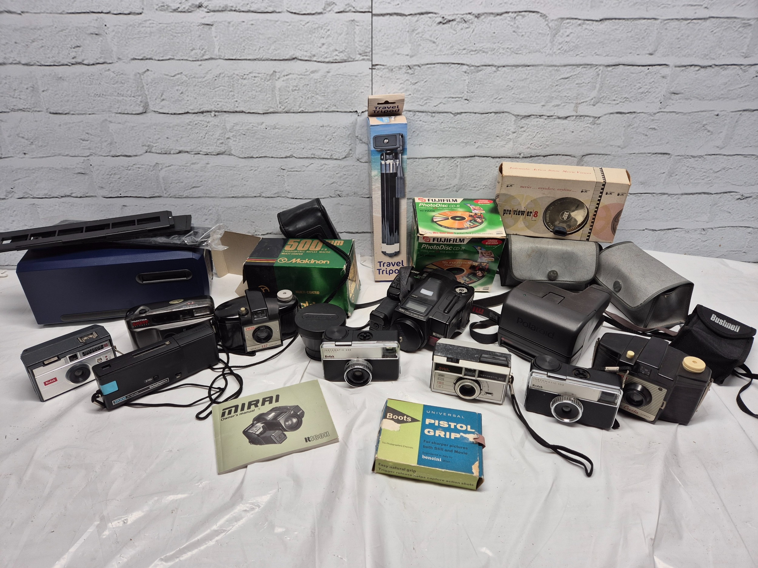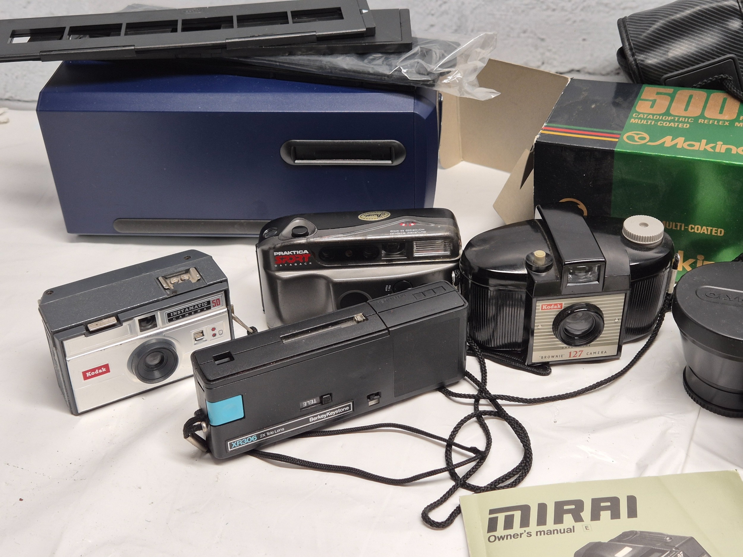 A Collection of Vintage Cameras and Equipment to include Kodak Instamatics and Brownies, Polaroid and a Plustek OpticFilm 8100 Film Scanner