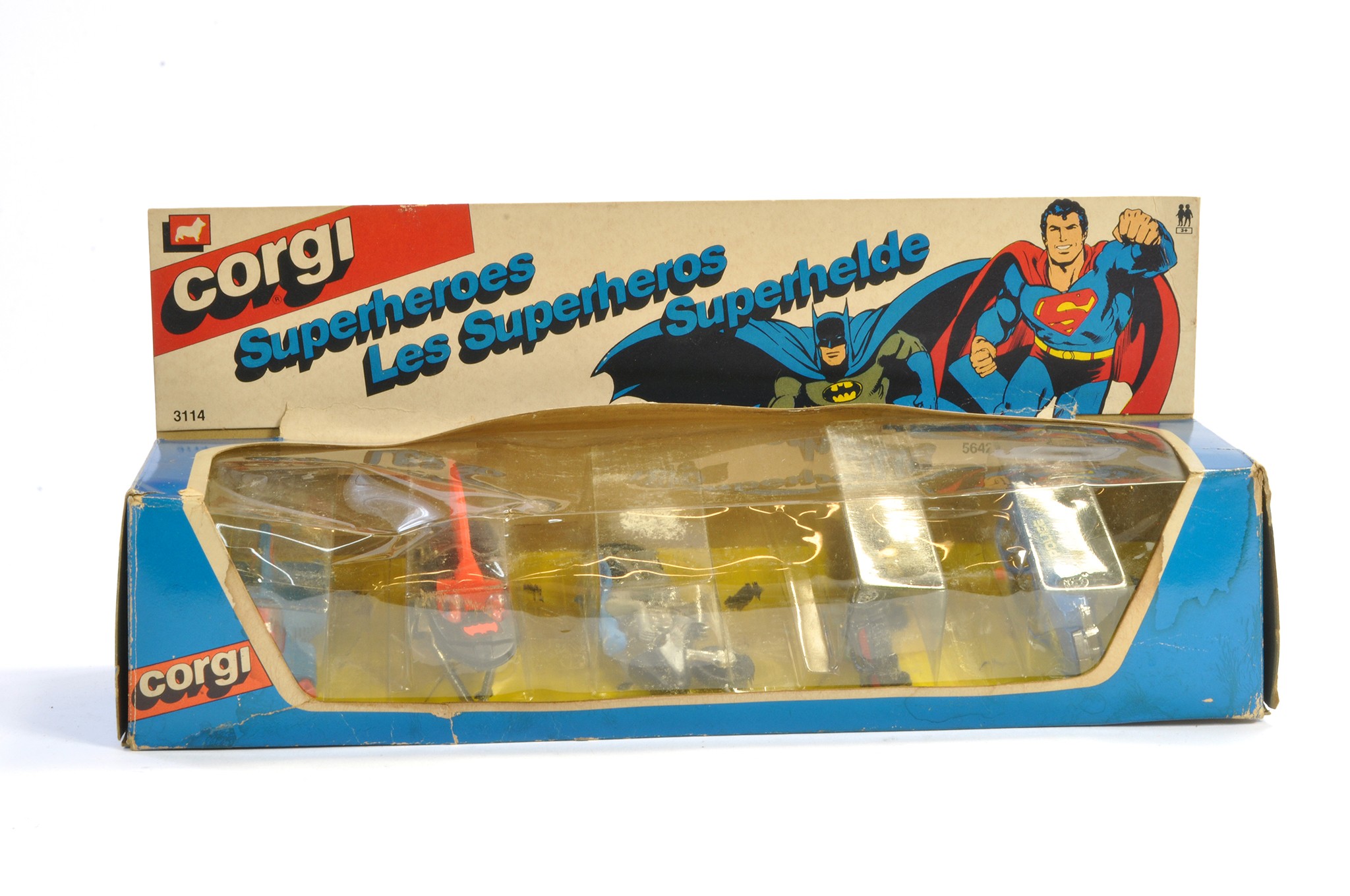 Corgi Juniors No. 3114 Super-Hero Gift set including Batman / Superman etc. Contents very good in fair to good original box.