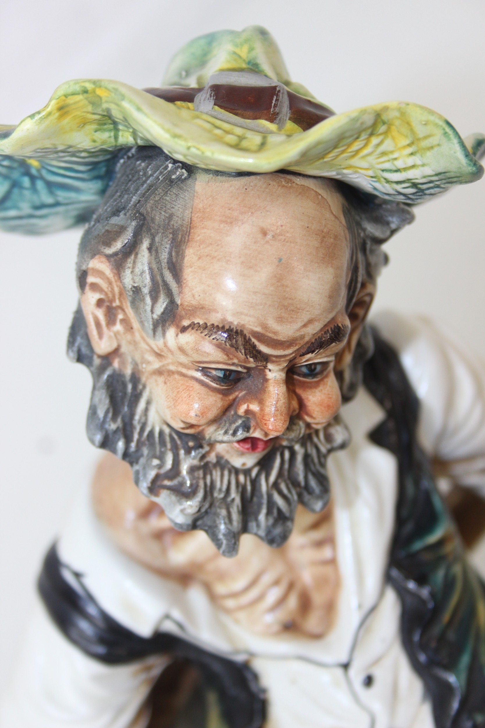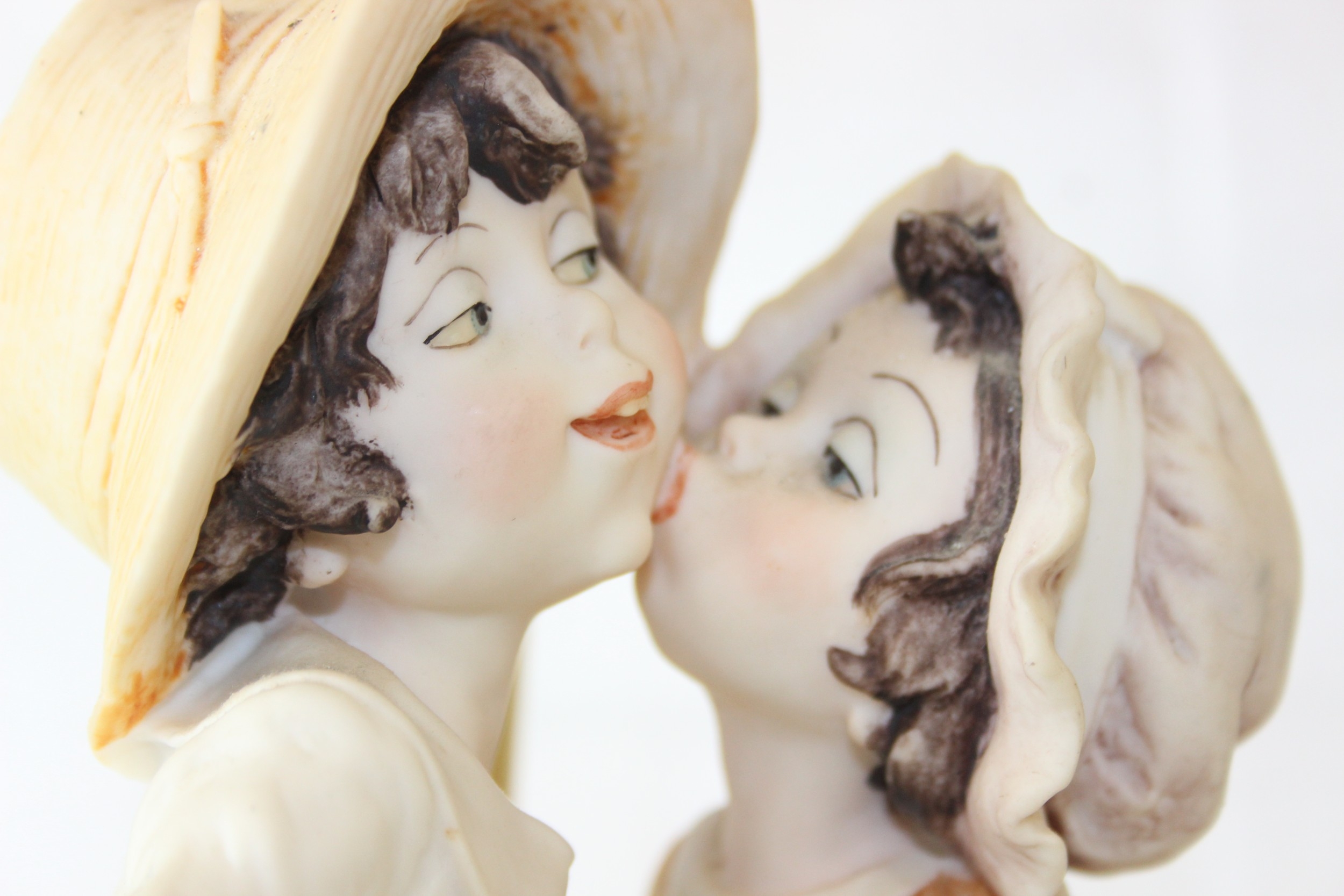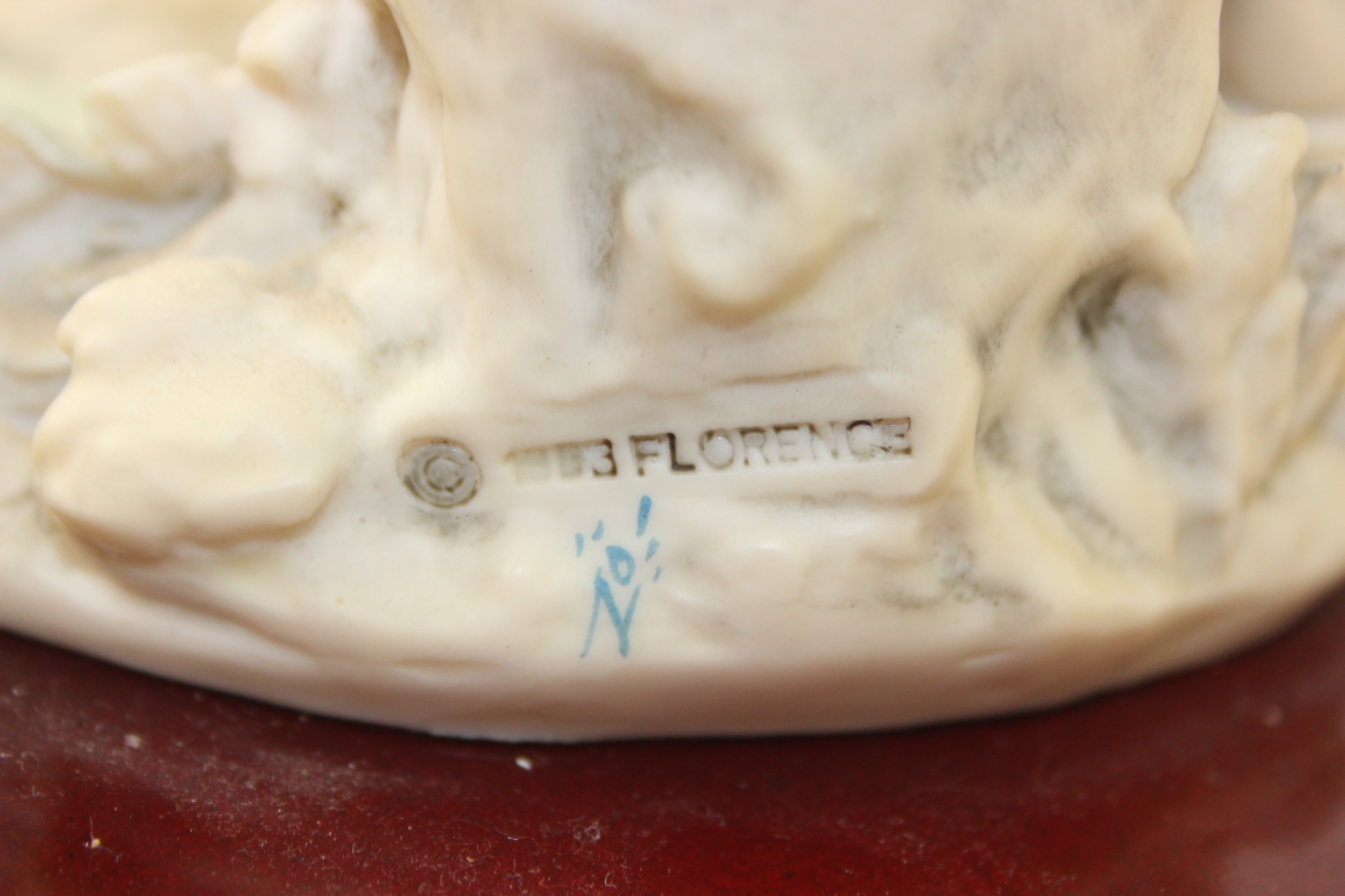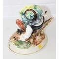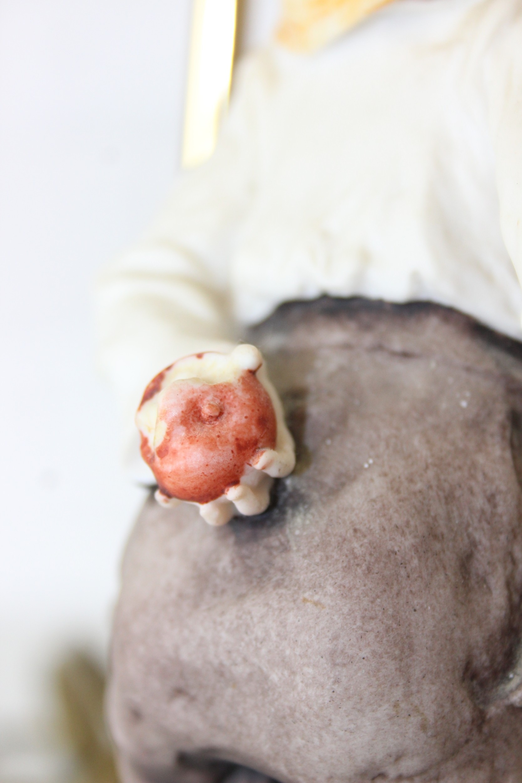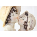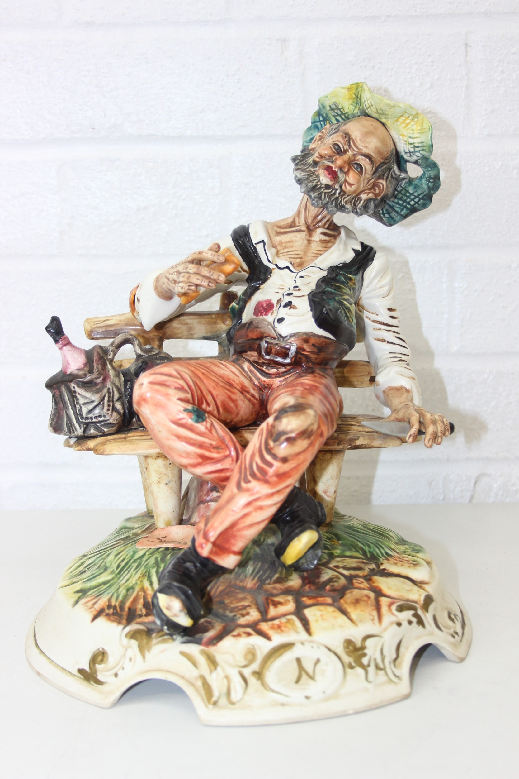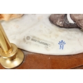 Two decorative figural table lamps with shades, one by B. Merti, the other Capodimonte and a Capodimonte pottery figure on bench, the largest lamp 80cm tall [3]