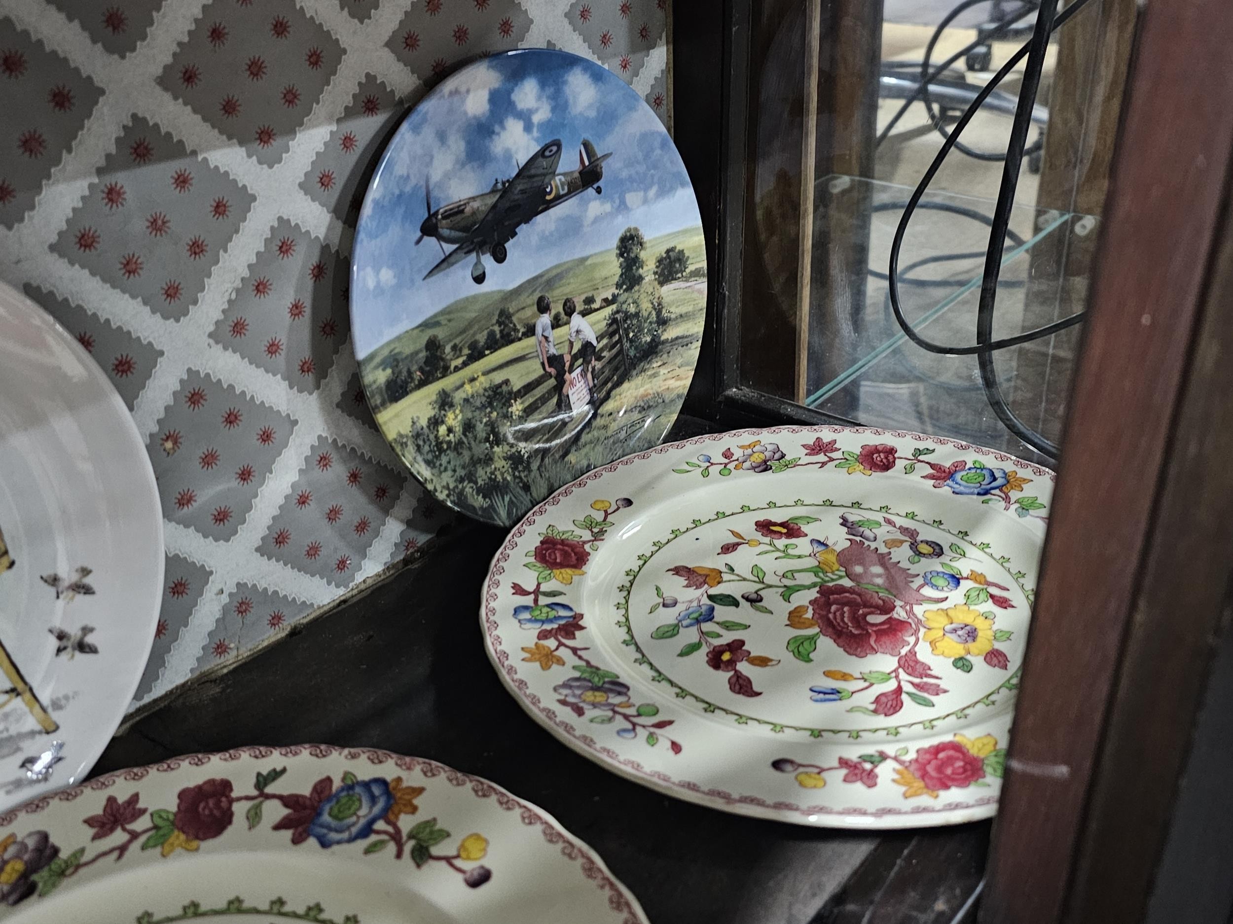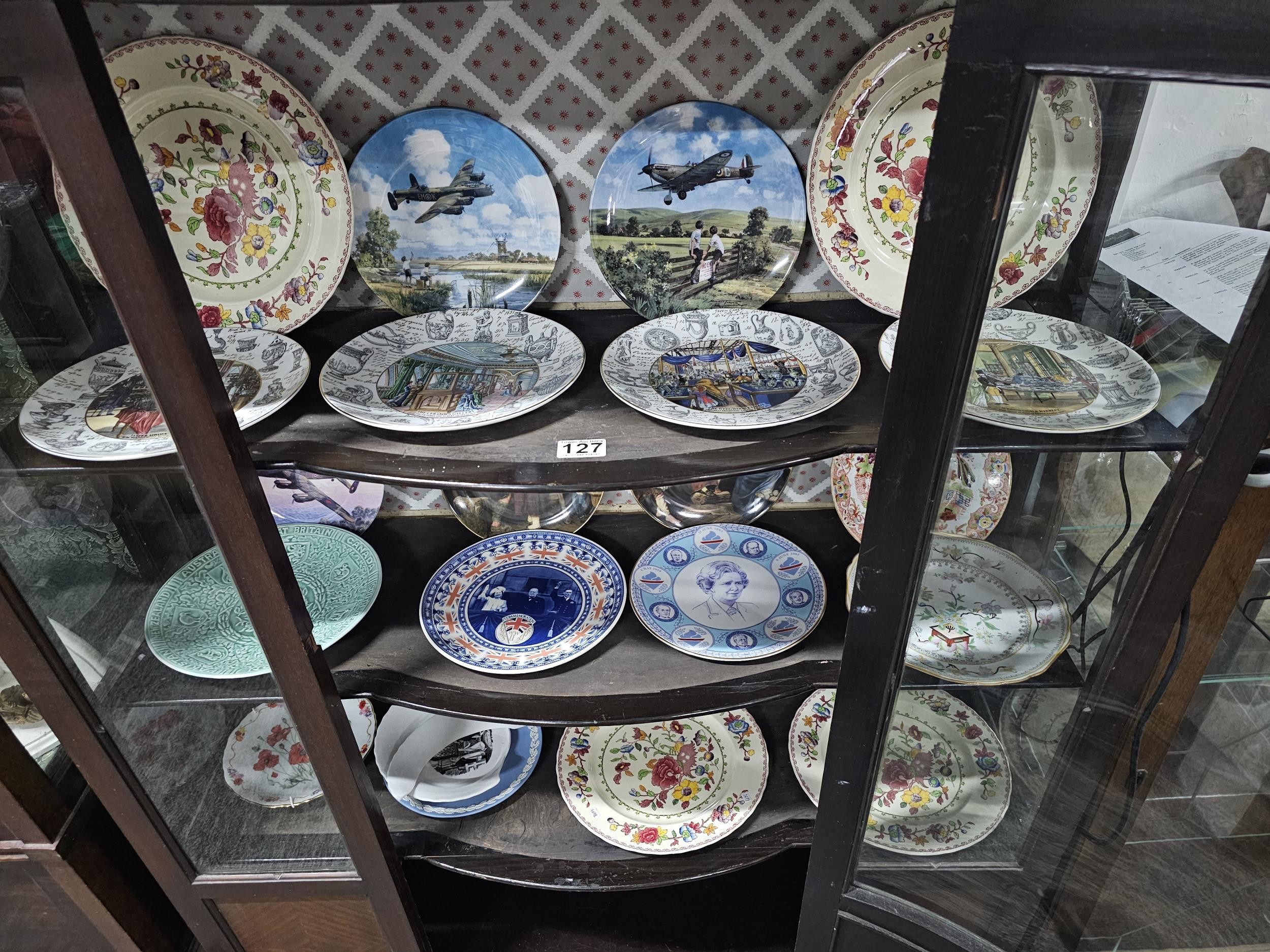 A large collection of picture plates by Wedgwood and Royal Doulton of various designs to include aircraft, Royal memorabilia, and country scenes along with 4x Masons plates etc one plate is broken the rest are in good order