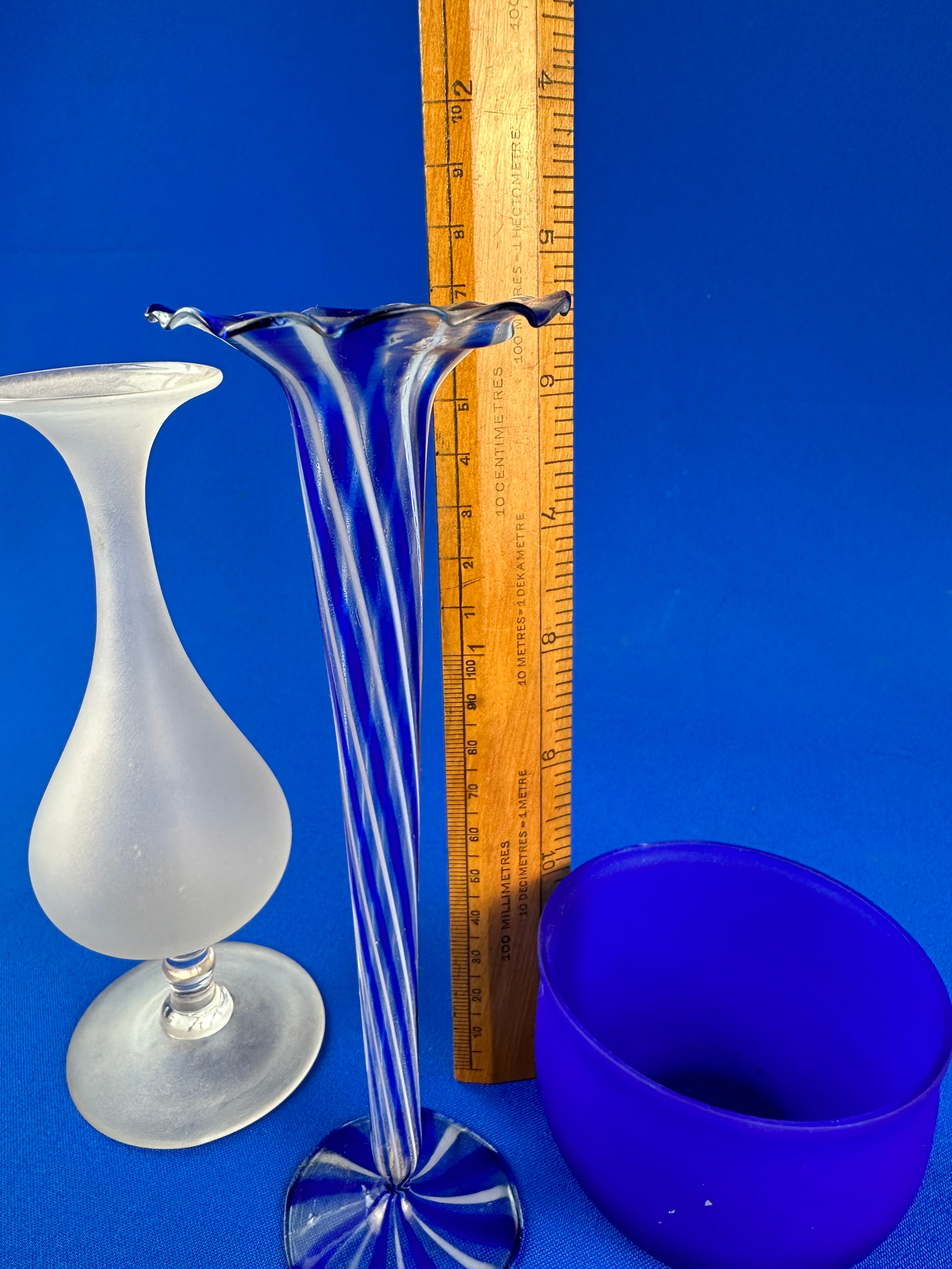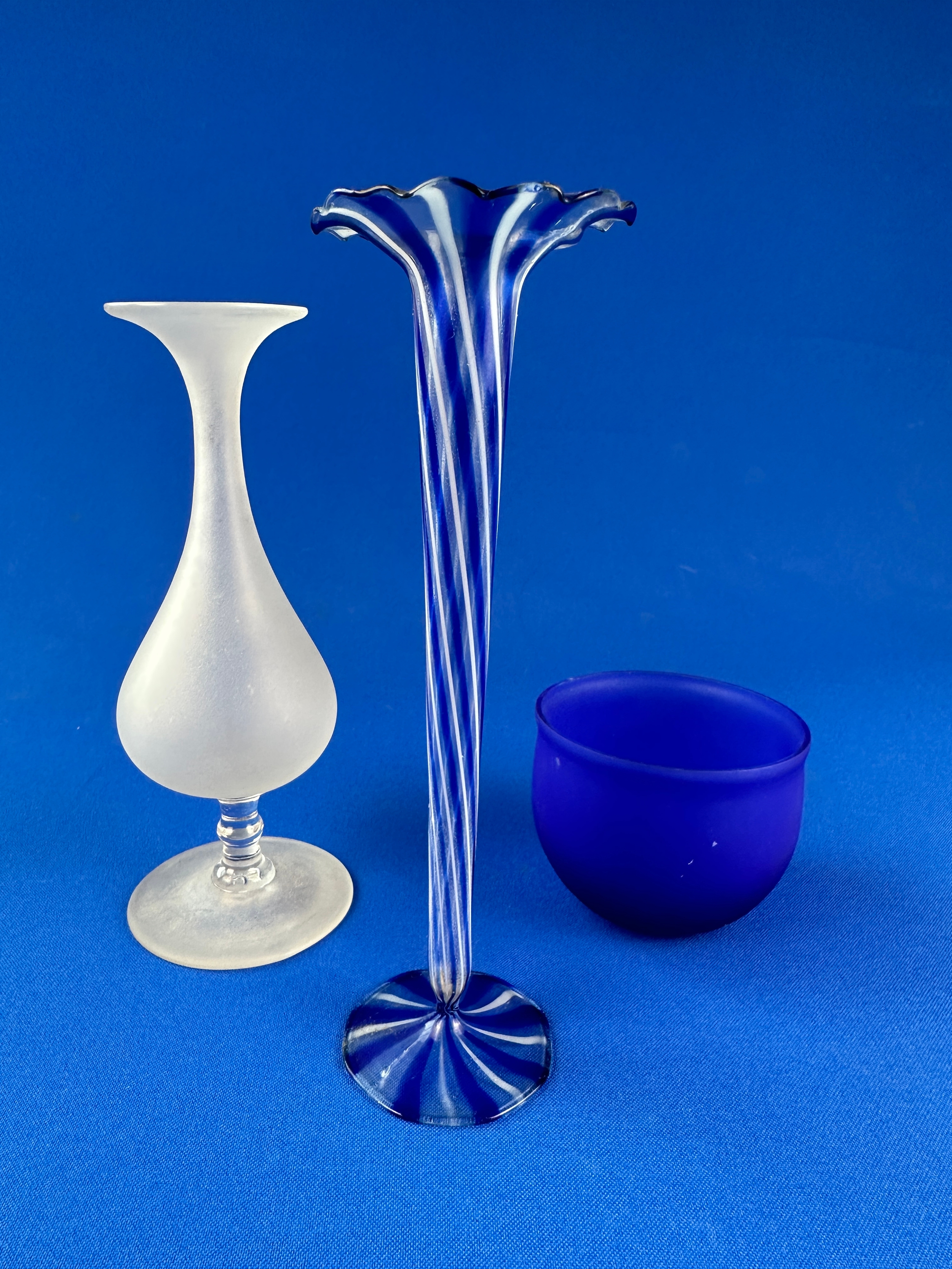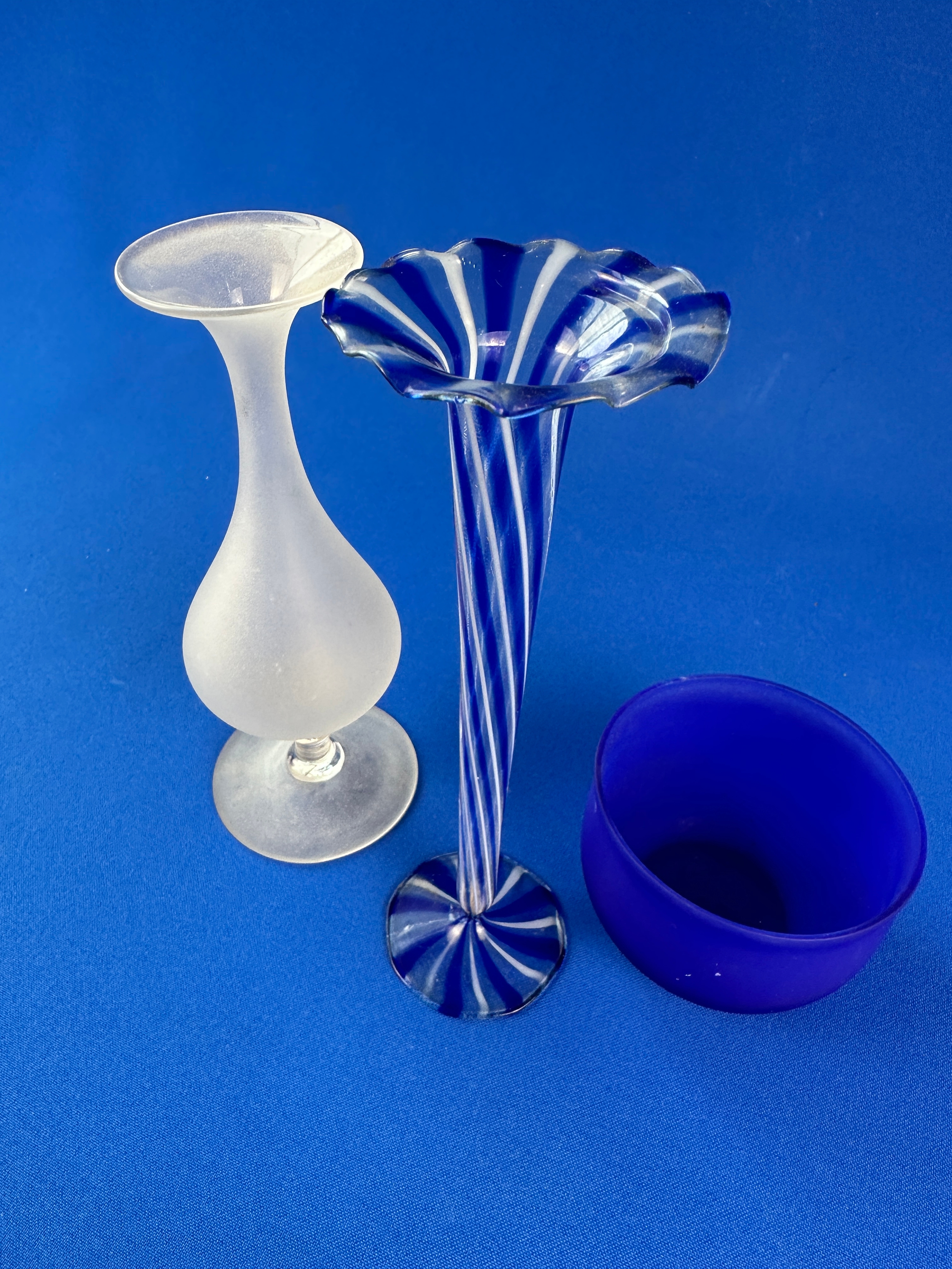 Incredibly Delicate Lampwork Striped Bud Vase Alongside Two Other Items