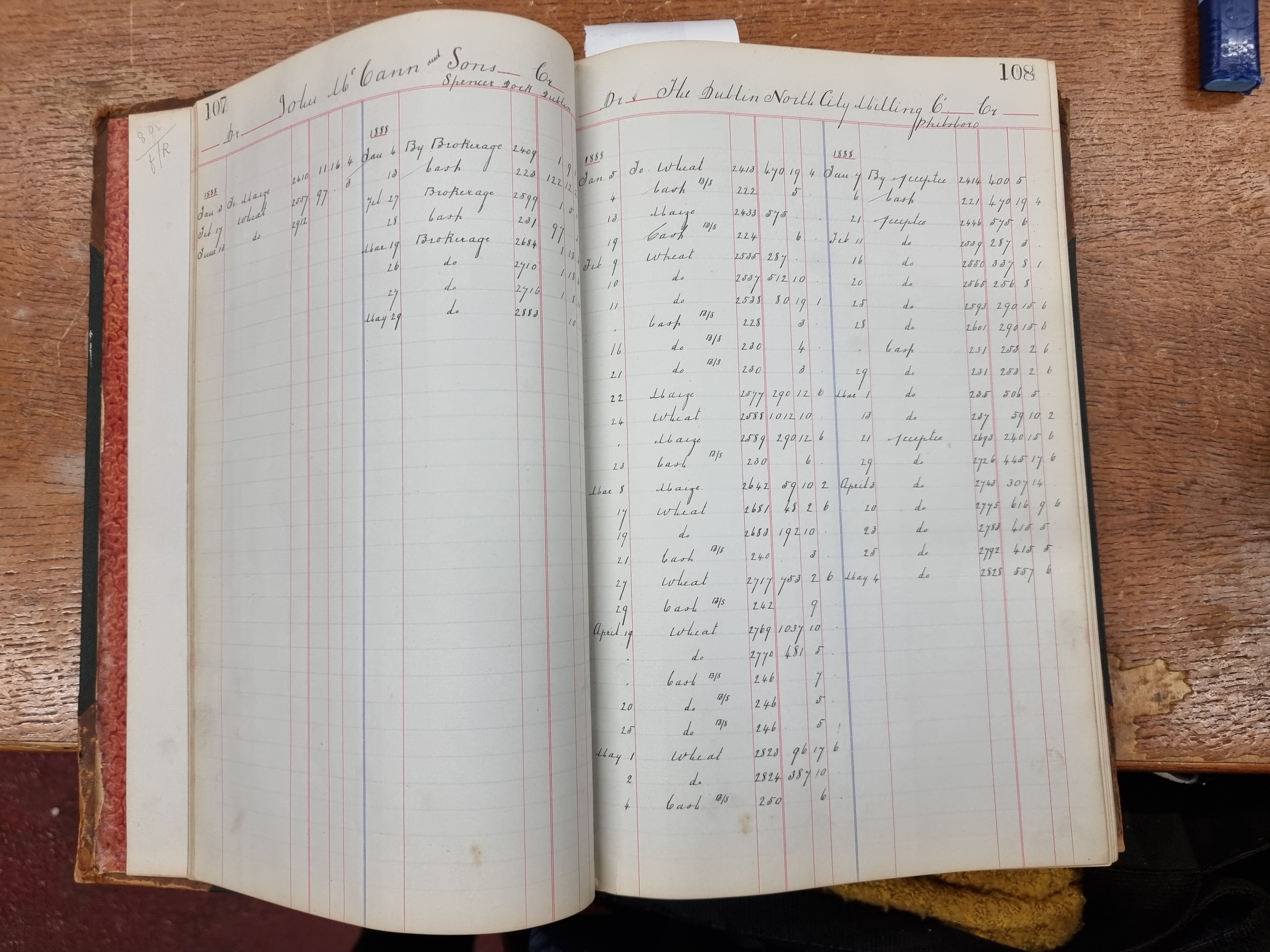 A rare antique Irish leather-bound hardback account miller's ledger dating to late 19th century regarding sales of wheat and flour. This example features hand written records and notes. A lovely collector's item. From the Princely estate in county Wicklow. Some pages missing from the from as pictured.