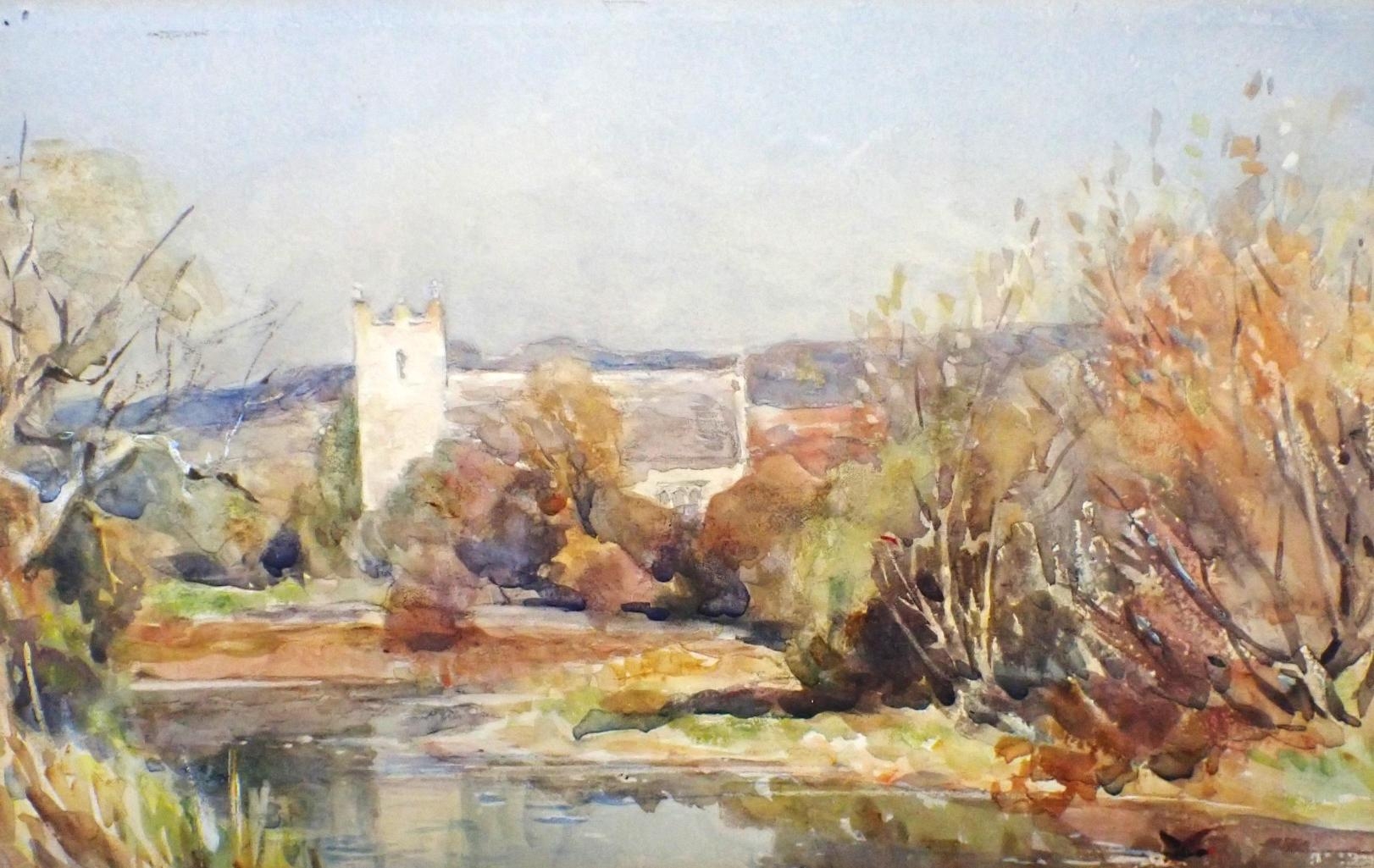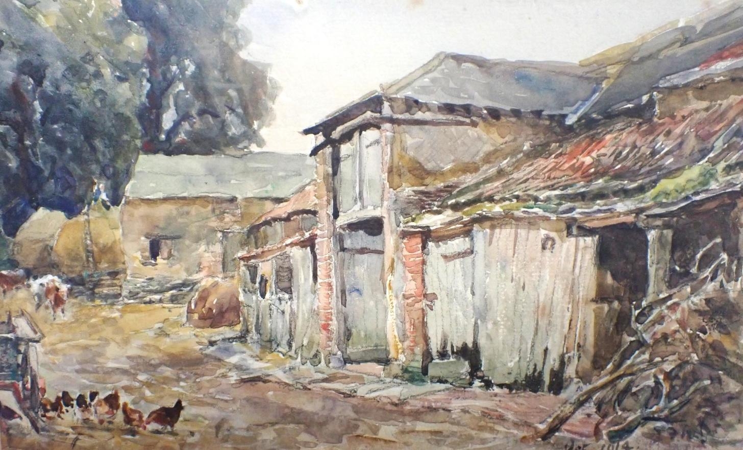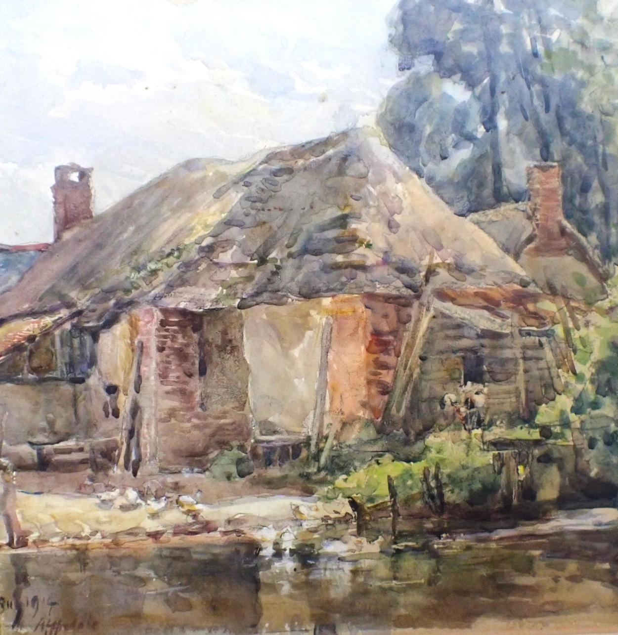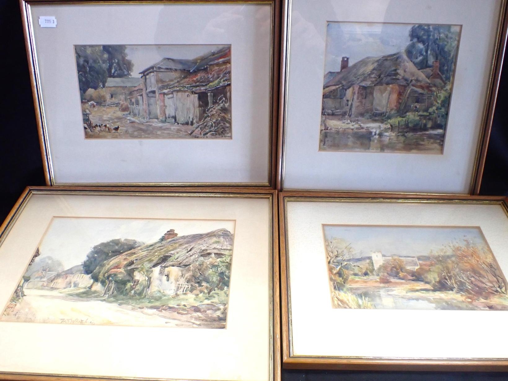 FREDERICK WHITEHEAD (1853 - 1938): AFFPUDDLE, DORSET watercolour 1914, framed 31 x 38cm, and three others similar (4)