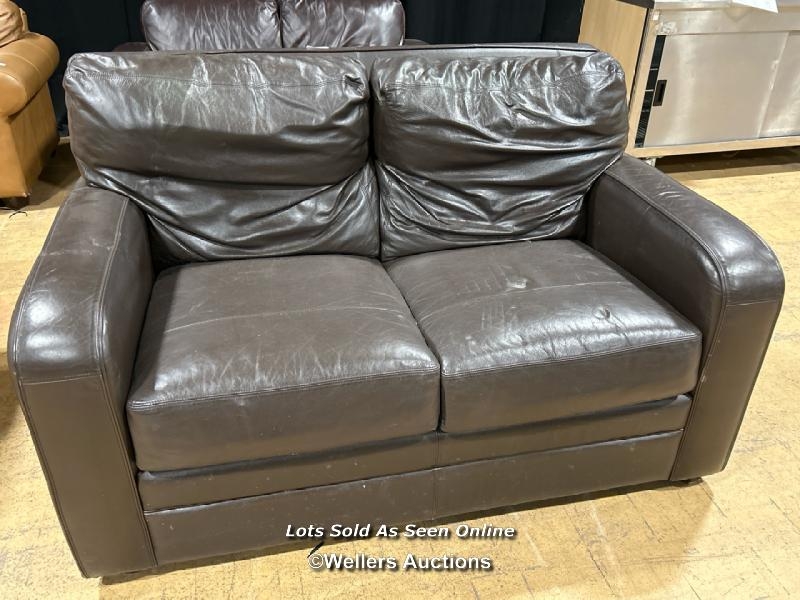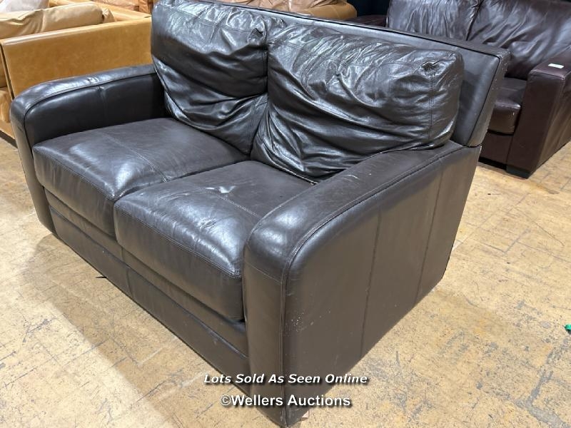 Faux leather sofa, 90cm (h) x 150cm (w) x 98cm (d) / Buyer will be responsible for removal, located in the large hall / Lot Location: The Tropicana, Marine Parade, Weston-Super-Mare, North Somerset, BS23 1BE