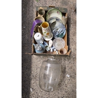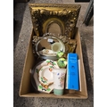 CARTON WITH 3 HEAVY GILT FRAMES, MIRROR, FRUIT BOWLS & DISH, WEDGWOOD VASE & OTHER ITEMS