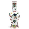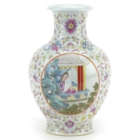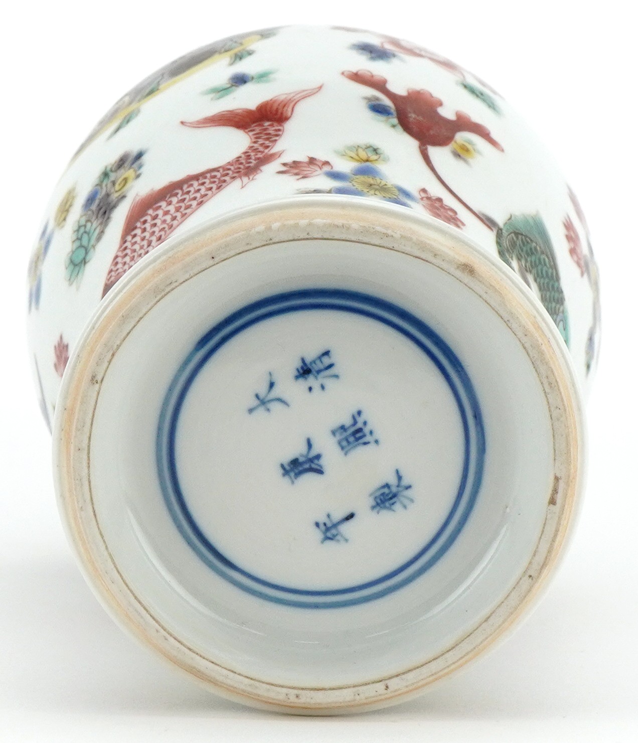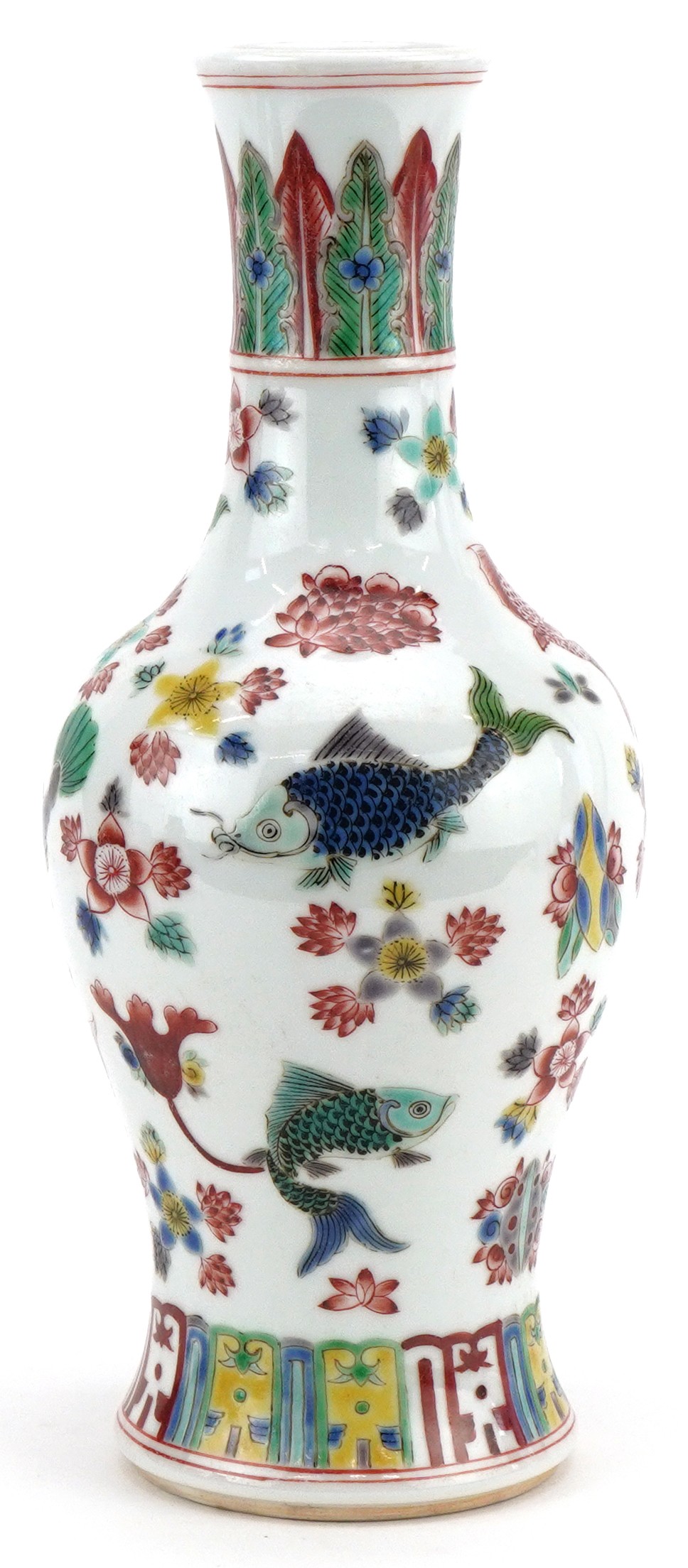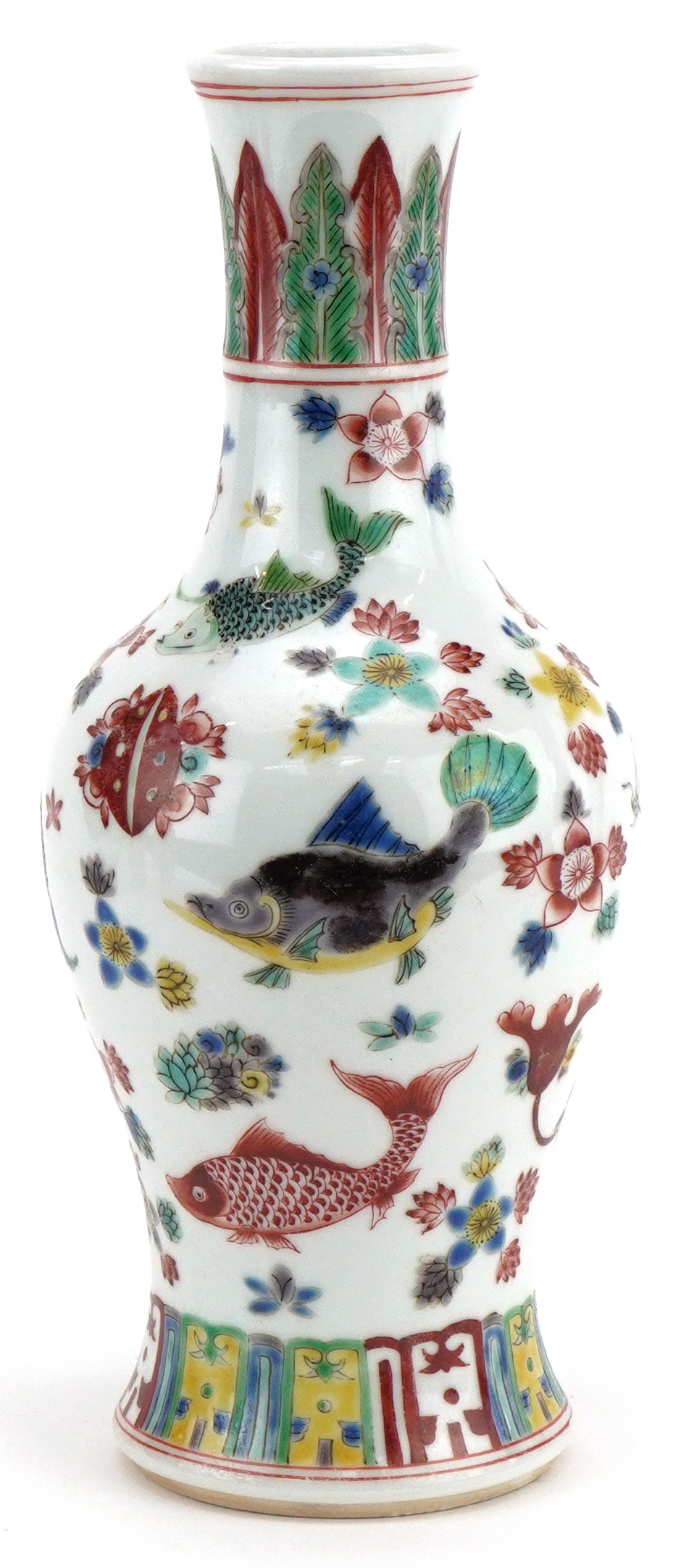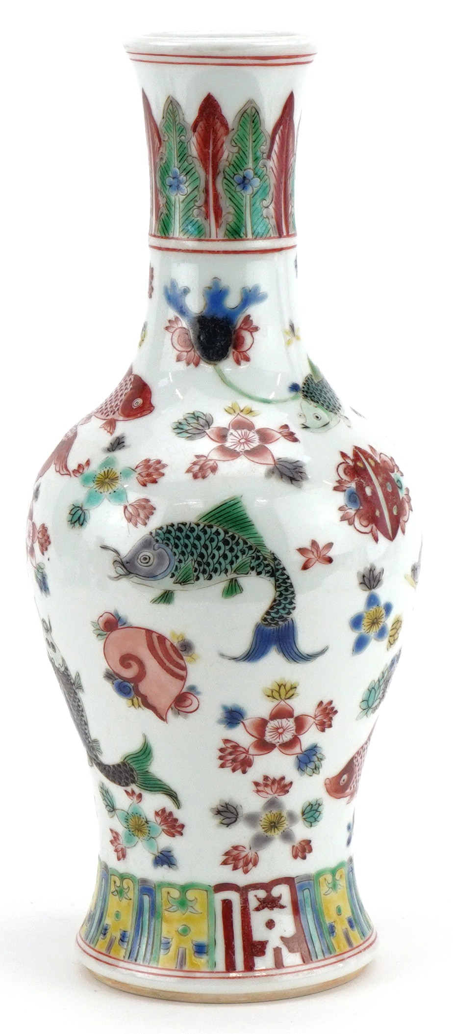 A 20th century Chinese porcelain baluster vase hand painted with fish and aquatic life, six figure character mark to the base, 26cm high.