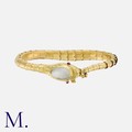 An Antique Snake Bracelet in yellow gold in an articulating form with a nacre-set head and ruby-set eyes. French import marks and tests indicate 18ct gold.