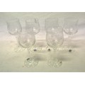Set of 6 Edwardian style etched tulip shaped wine glasses with hexagonal stems & round bases