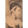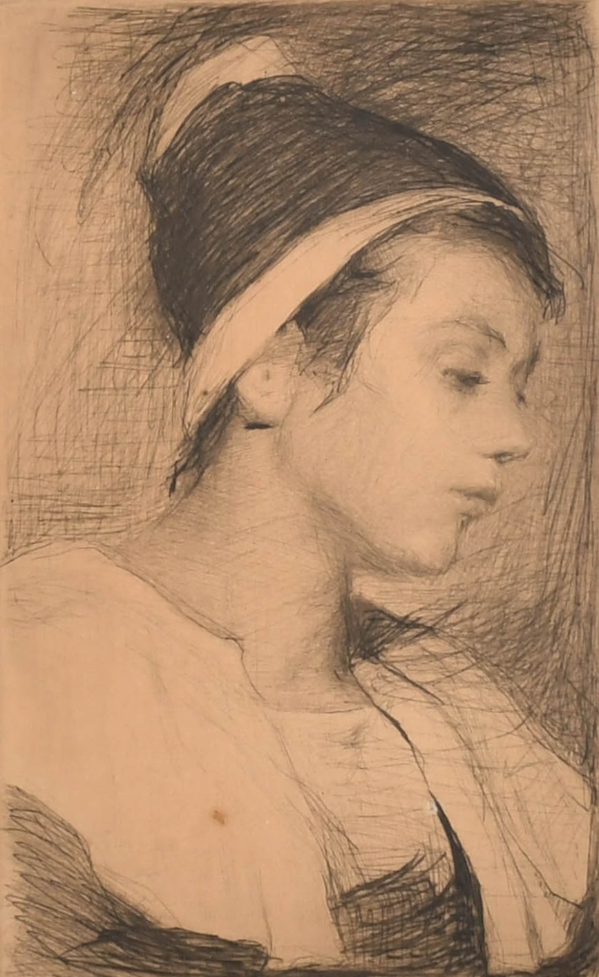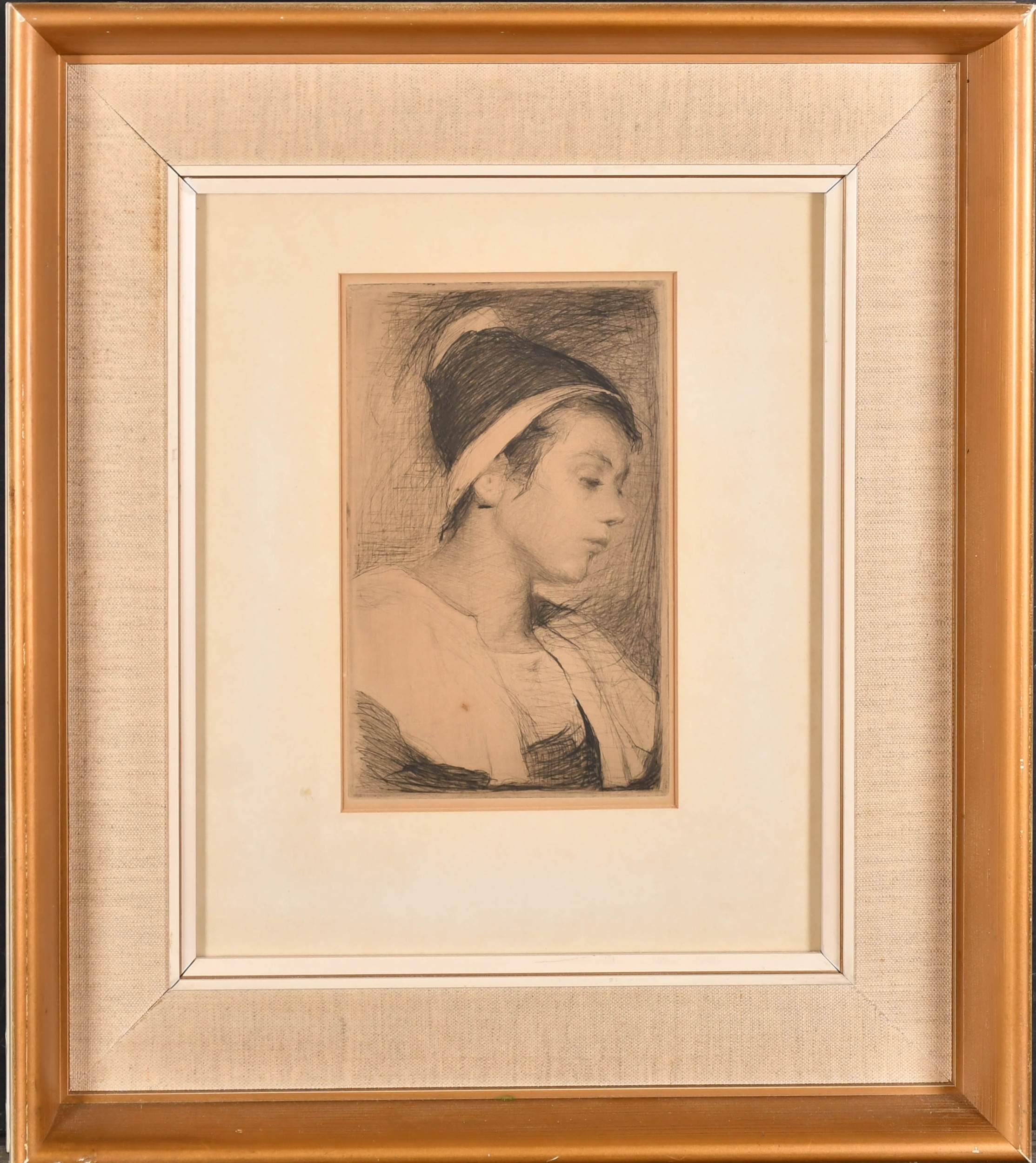 Elizabeth Adela Forbes (nee Armstrong) (1859-1912) Canadian. "Portrait of a Breton Girl", Etching, Inscribed on a label verso, 7.75" x 4.75" (19.7 x 12.1cm)