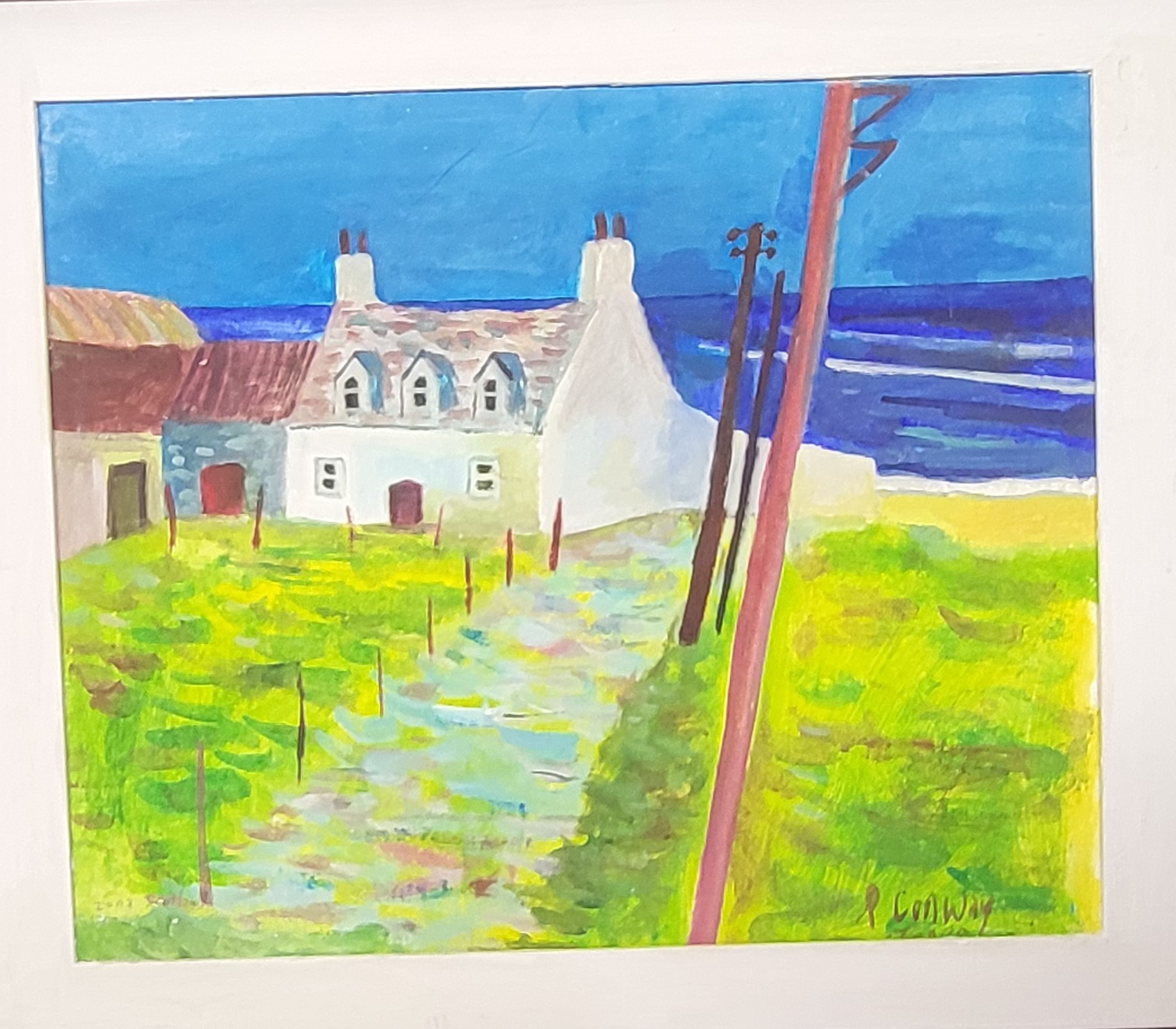 House on Iona, Scotland, acrylic painting by Richard Conway-Jones. Signed and framed. 50 x 60cm including frame.