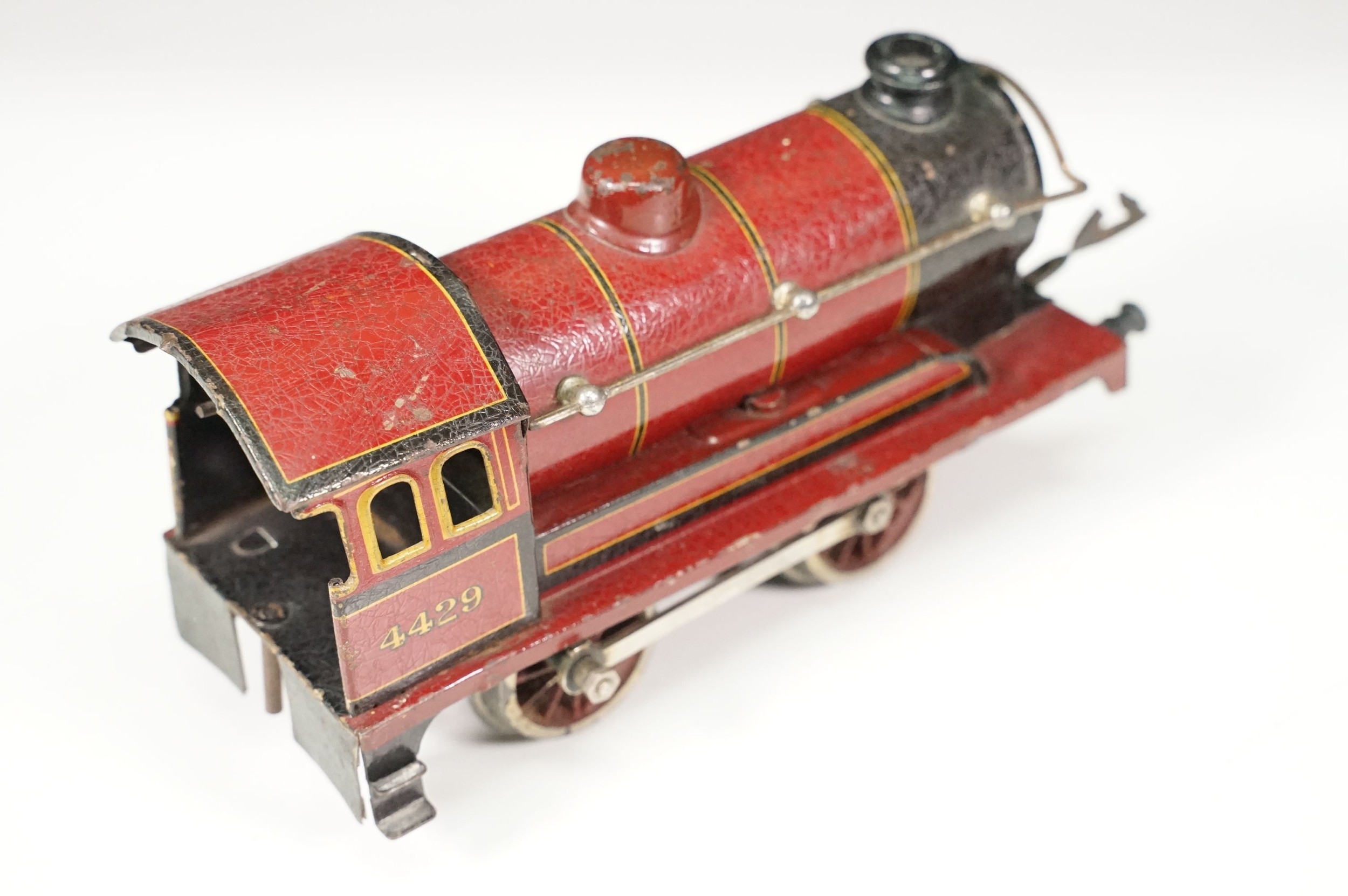 Two Bing O gauge locomotives to include LNER 0-6-0 47480 in green and LMS 0-4-0 4429 in maroon with tender