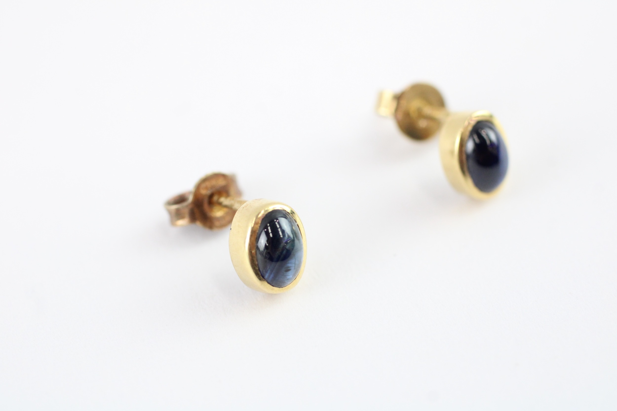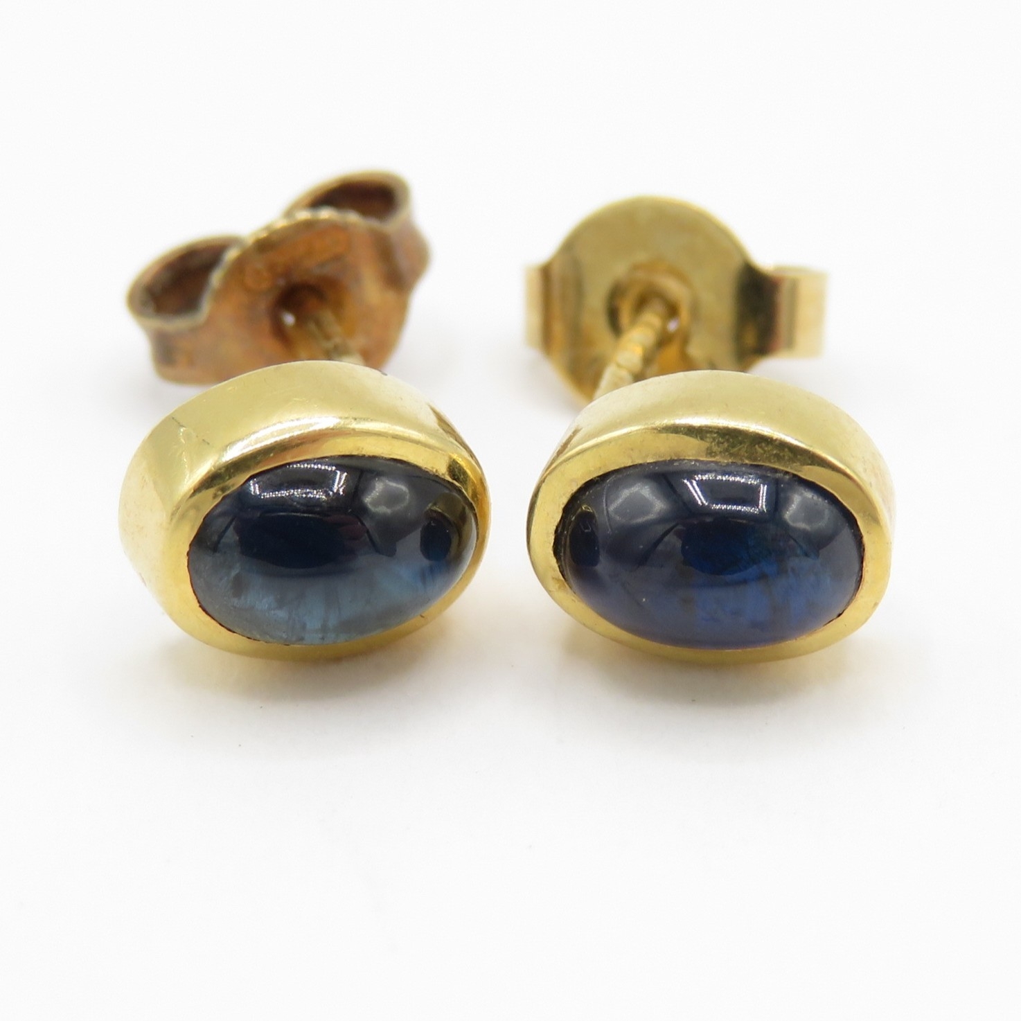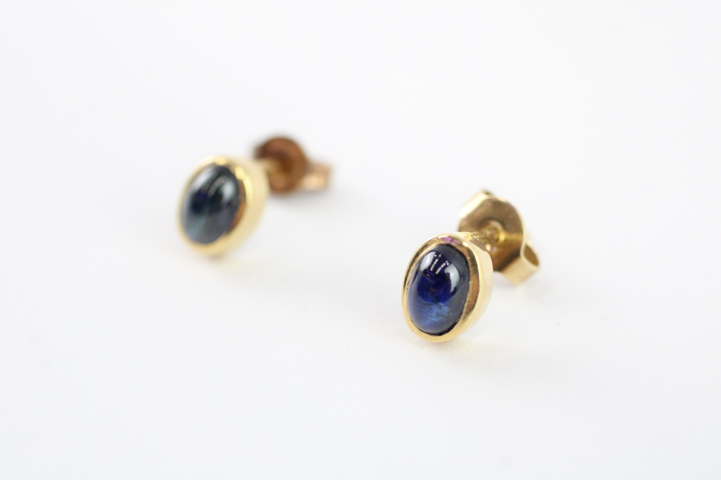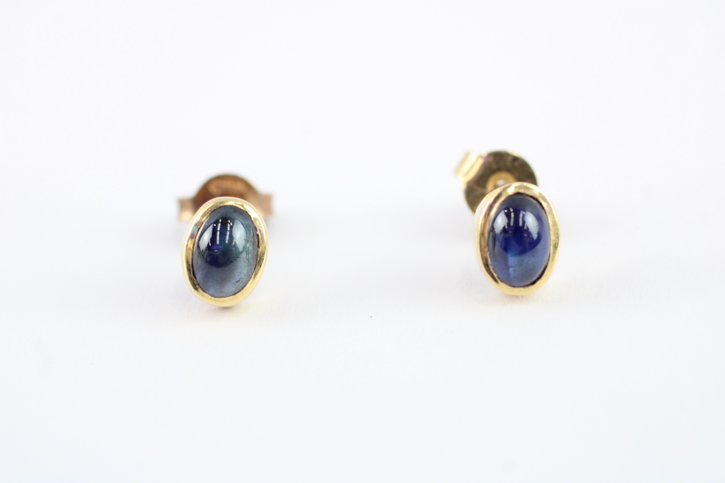 18ct gold cabochon cut sapphire stud earrings (1.5g)