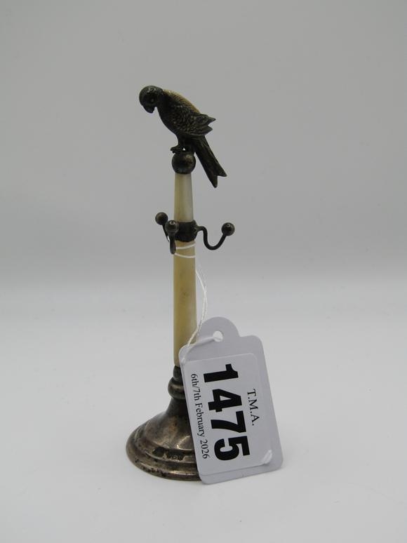 SILVER MOTHER OF PEARL PARROT PIN CUSHION/HOLDER