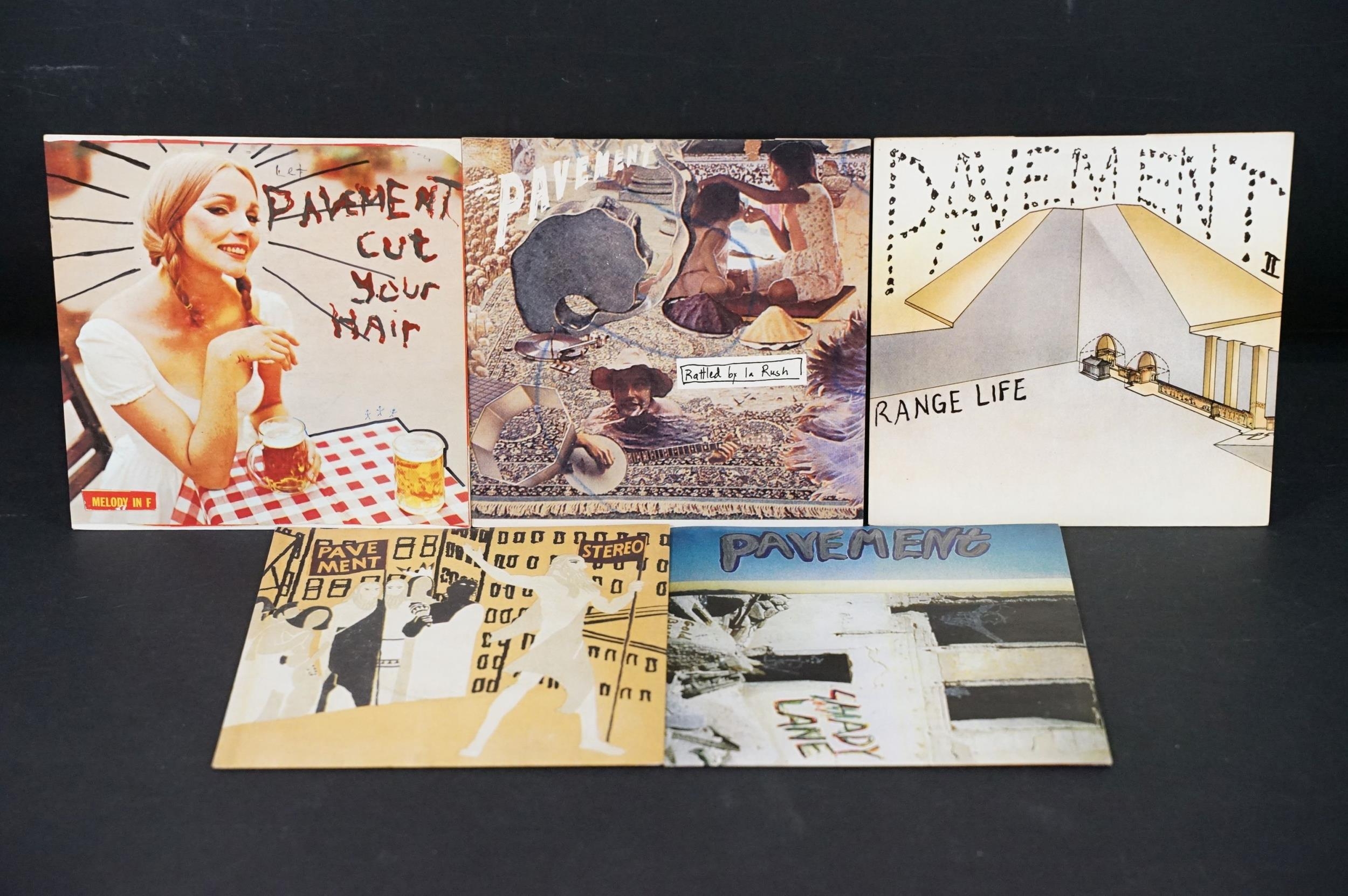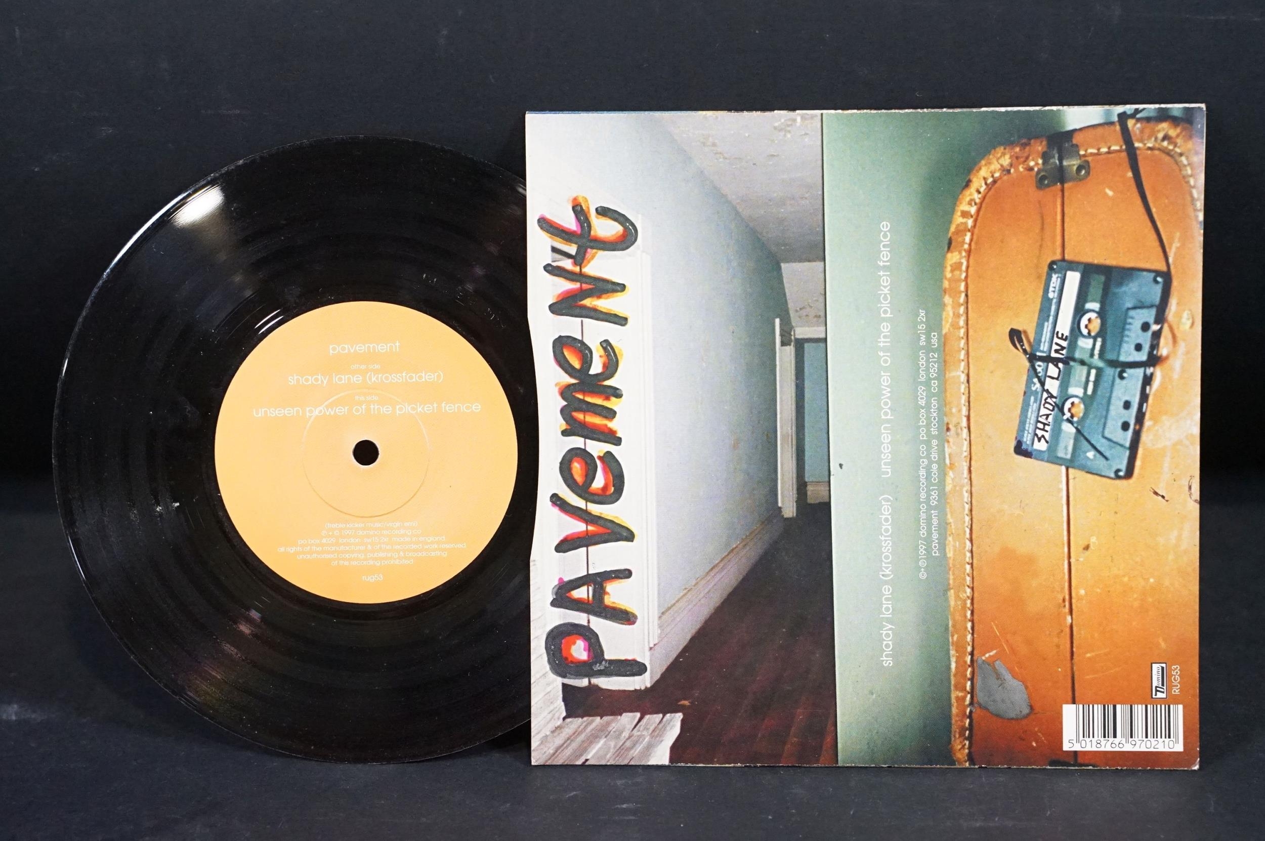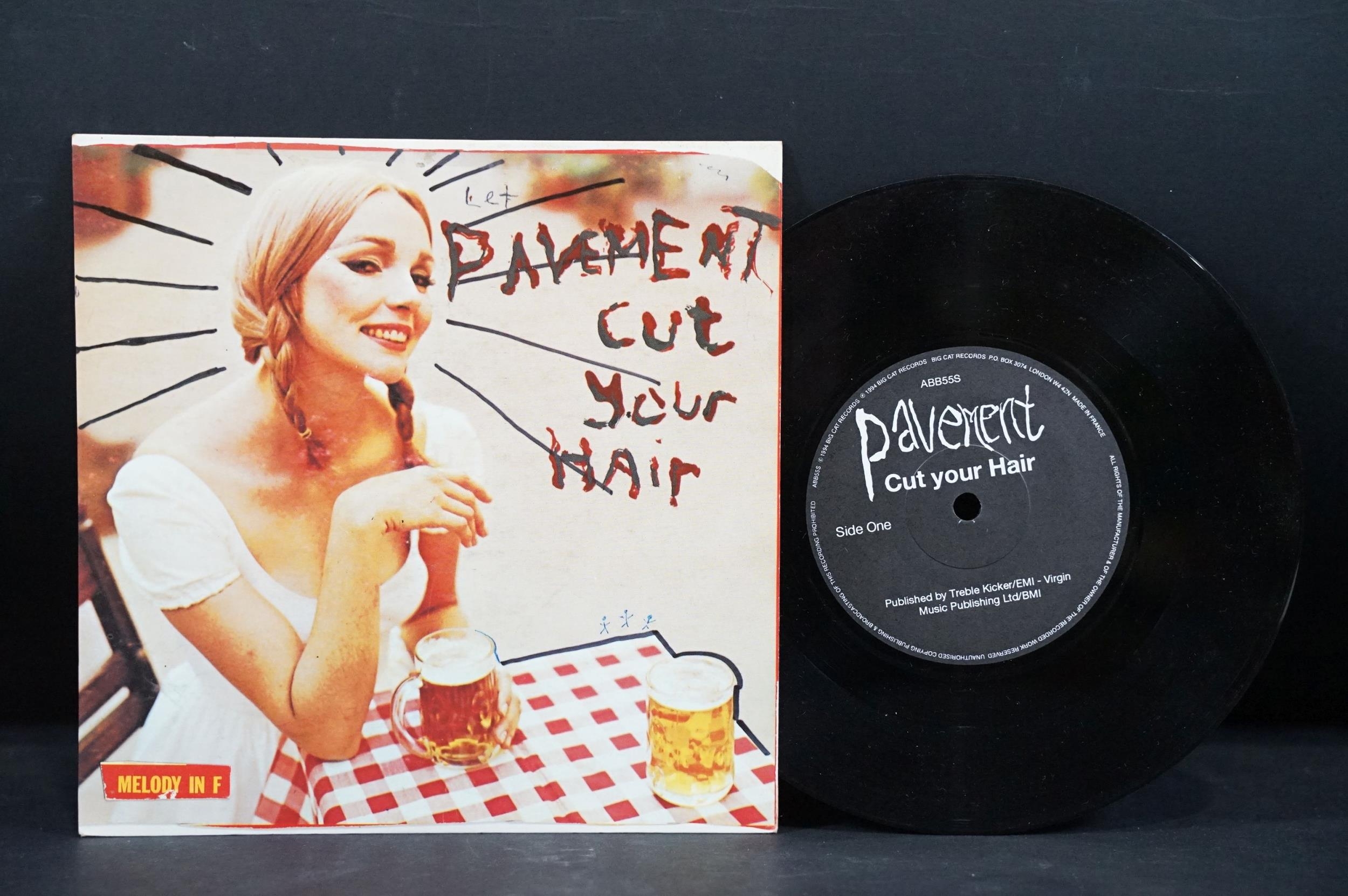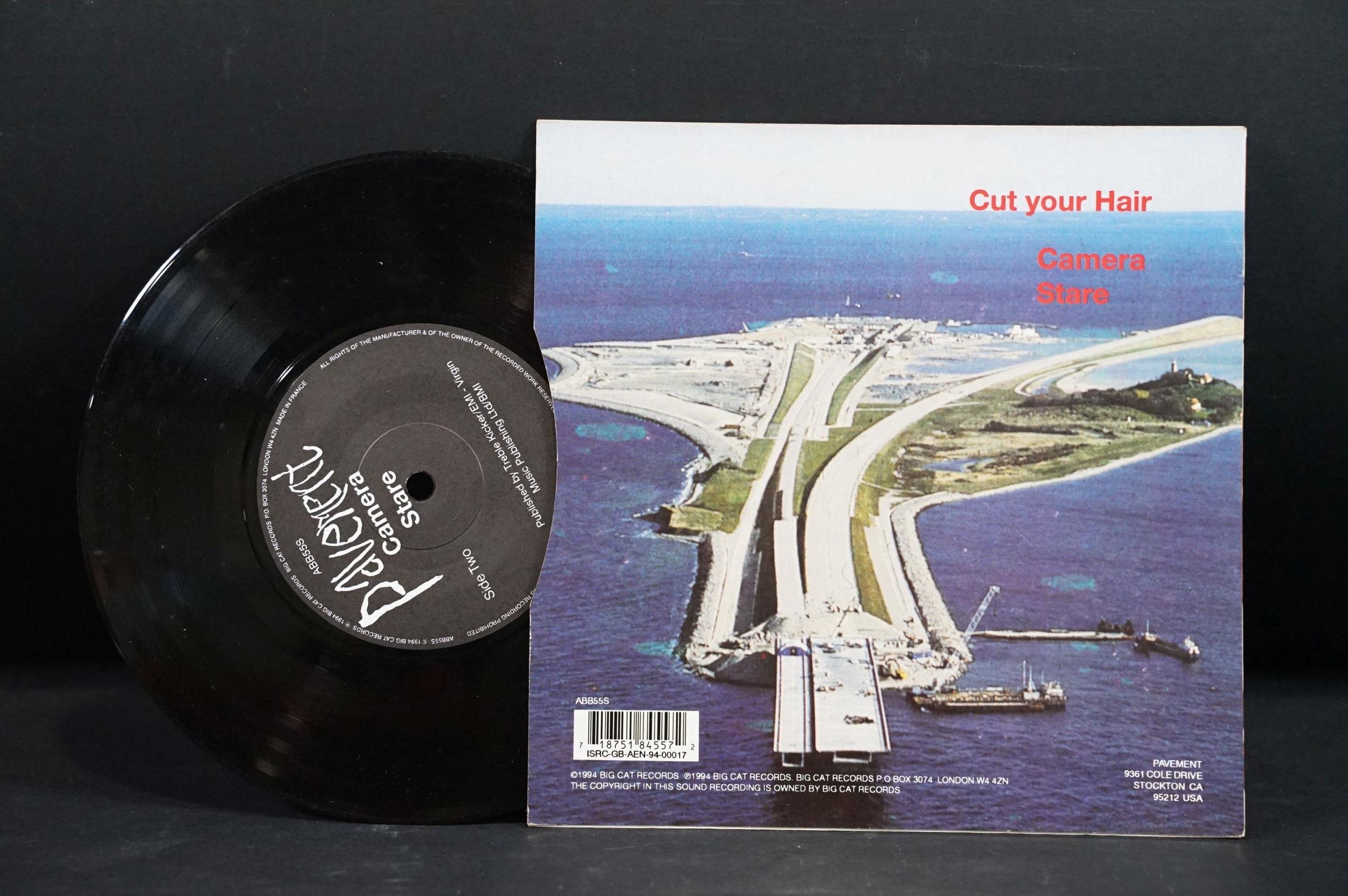 Vinyl - 5 Pavement UK pressing limited edition 7” singles to include: Range Life (Big Cat – ABB 77 S, UK 1995), Cut Your Hair (Big Cat – ABB55S, UK 1994), Rattled By La Rush (Big Cat – ABB86S, UK 1995), Stereo (Domino – RUG51, UK 1997), Shady Lane (Domino – RUG53, UK 1997). Condition VG+ overall.