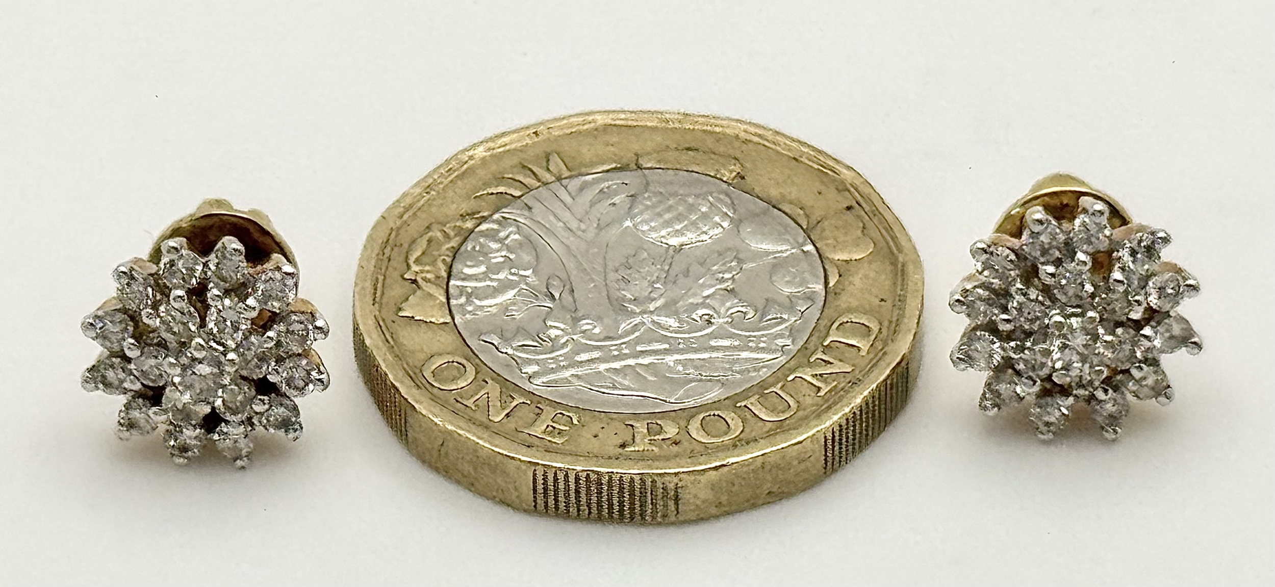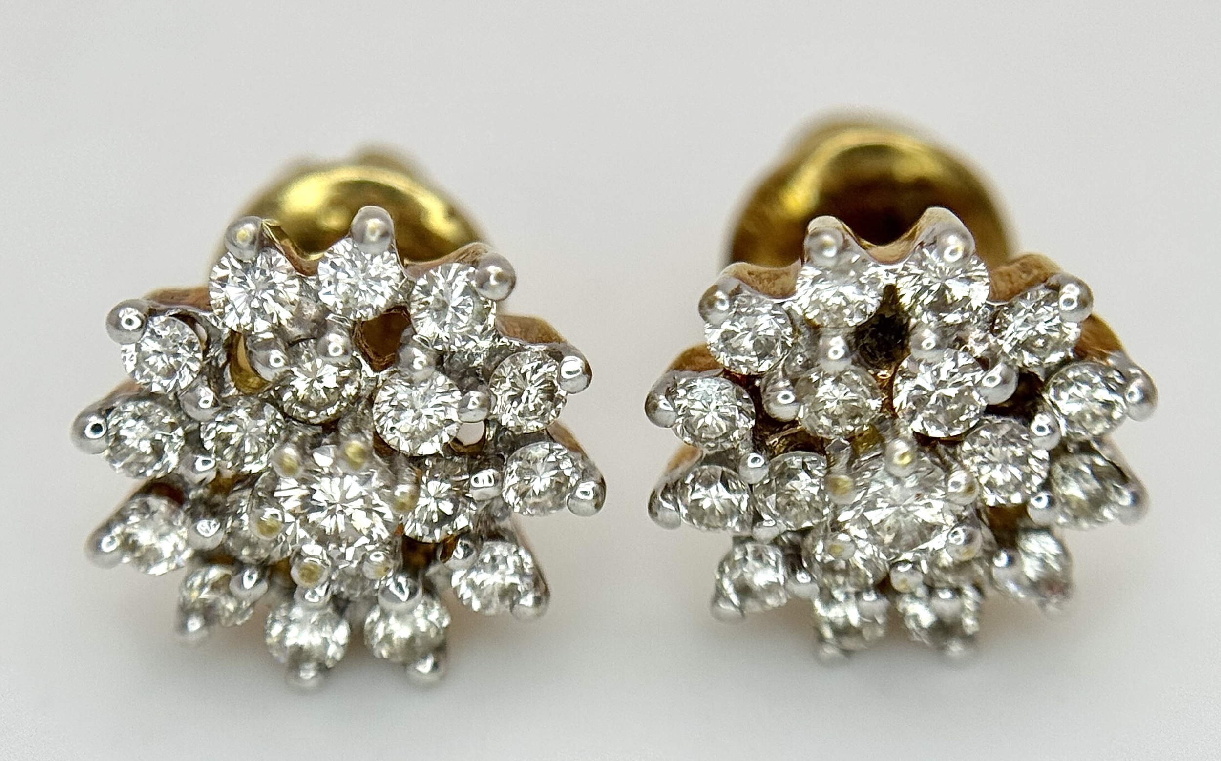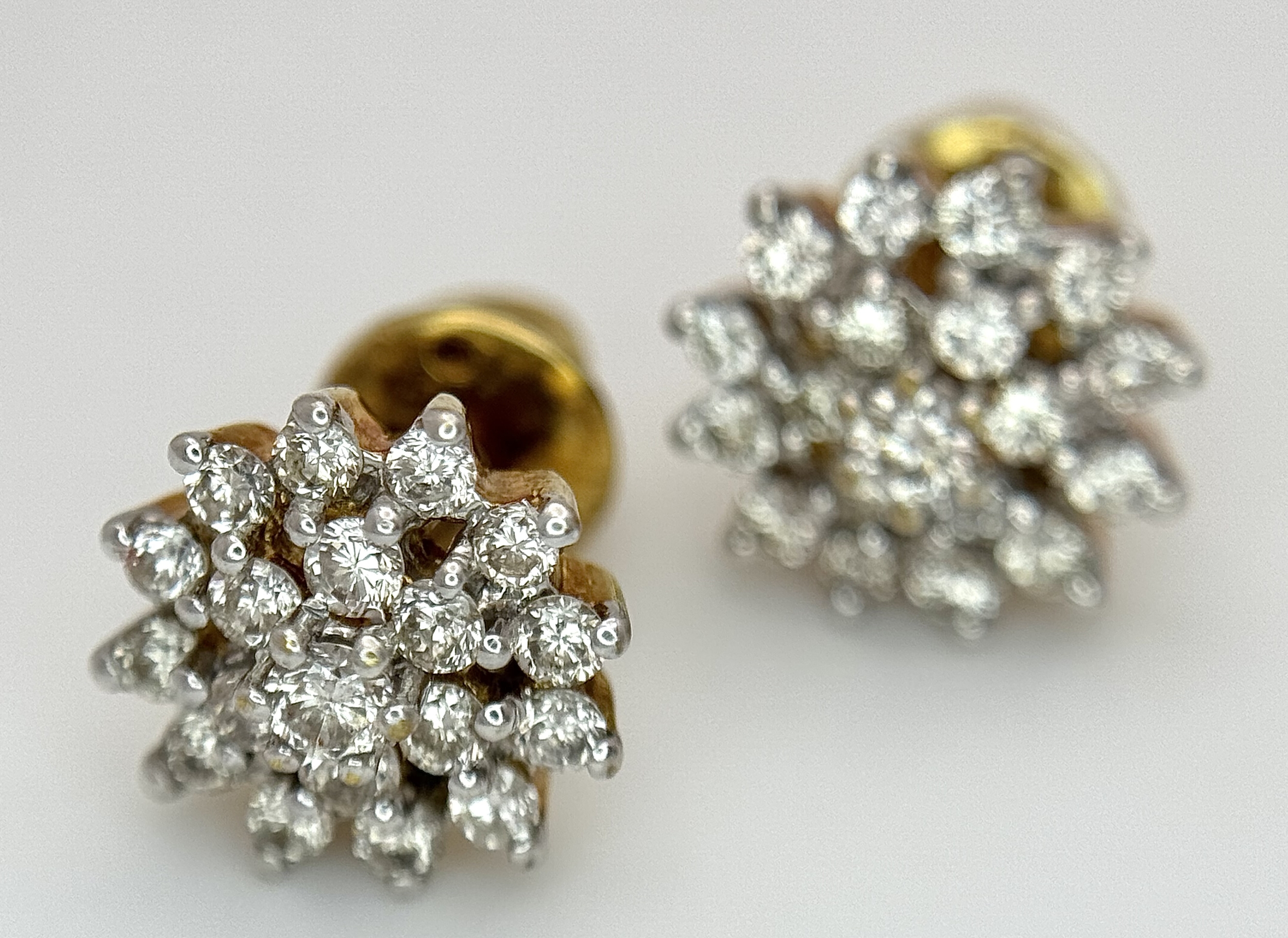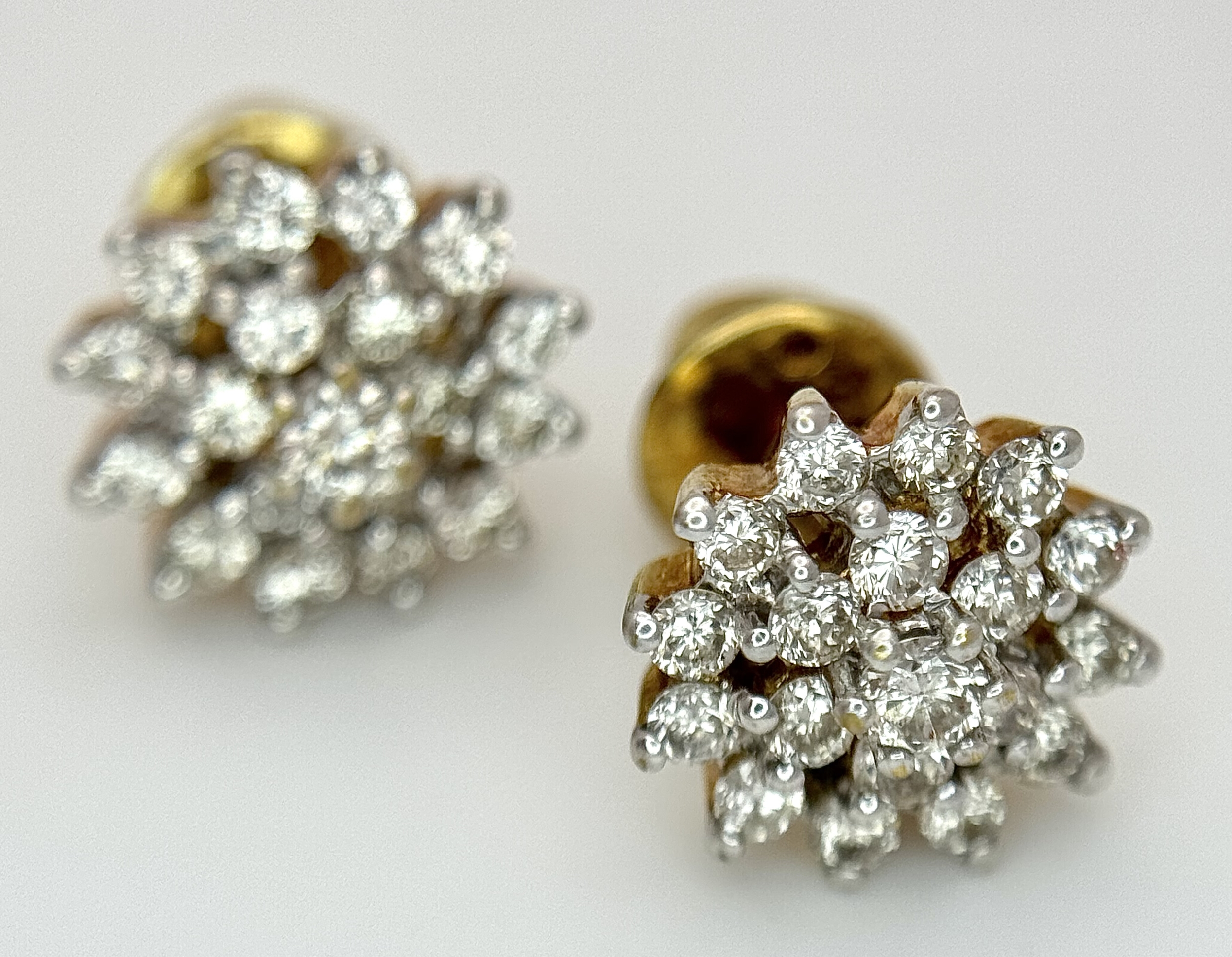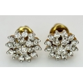 A PAIR OF, 18K YELLOW GOLD, DIAMOND SET, CLUSTER STID EARRINGS. 0.50 CTW. 4.4G. SC 8050