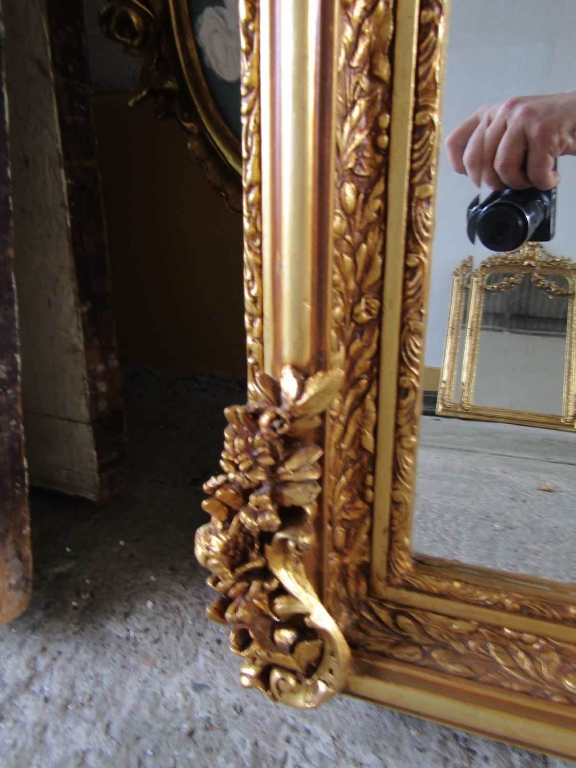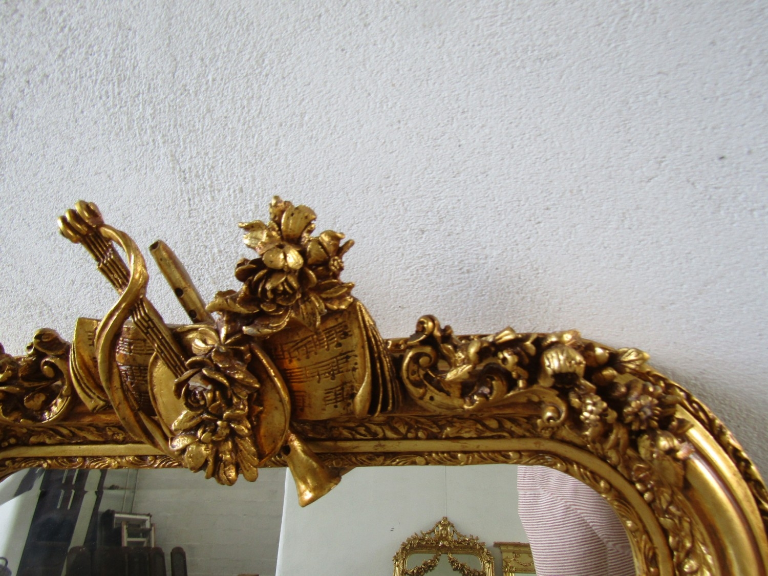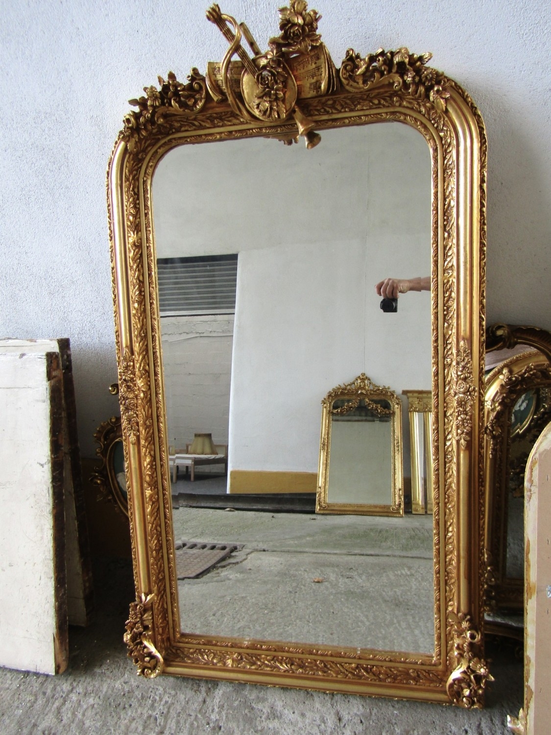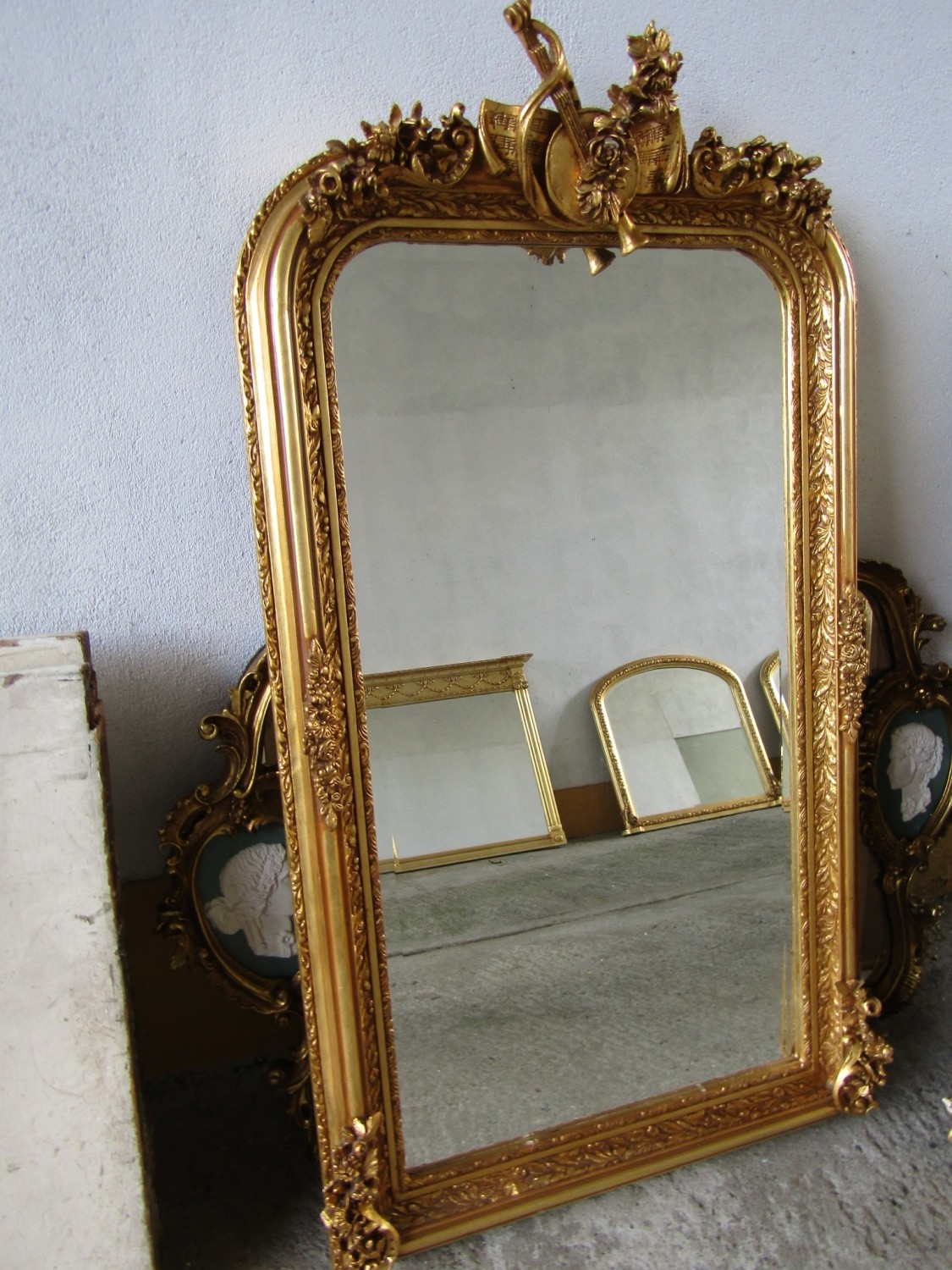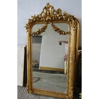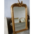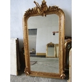 Gilded Rectangular Form Wall Mirror with Upper Carved Decoration Approximately 6ft 2 Inches High x 2ft 4 Inches Wide