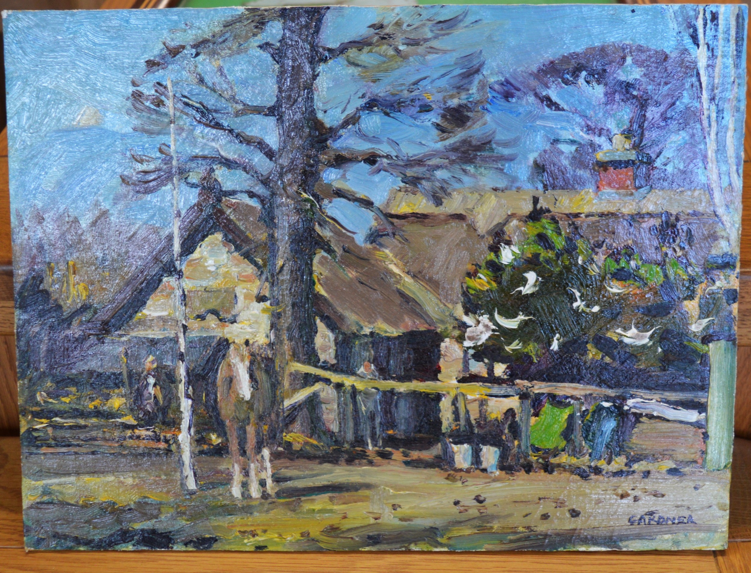 Oil on Board by Keith Gardner RCA - Tam O' Shanter's Cottage and Horse (12" x 9")