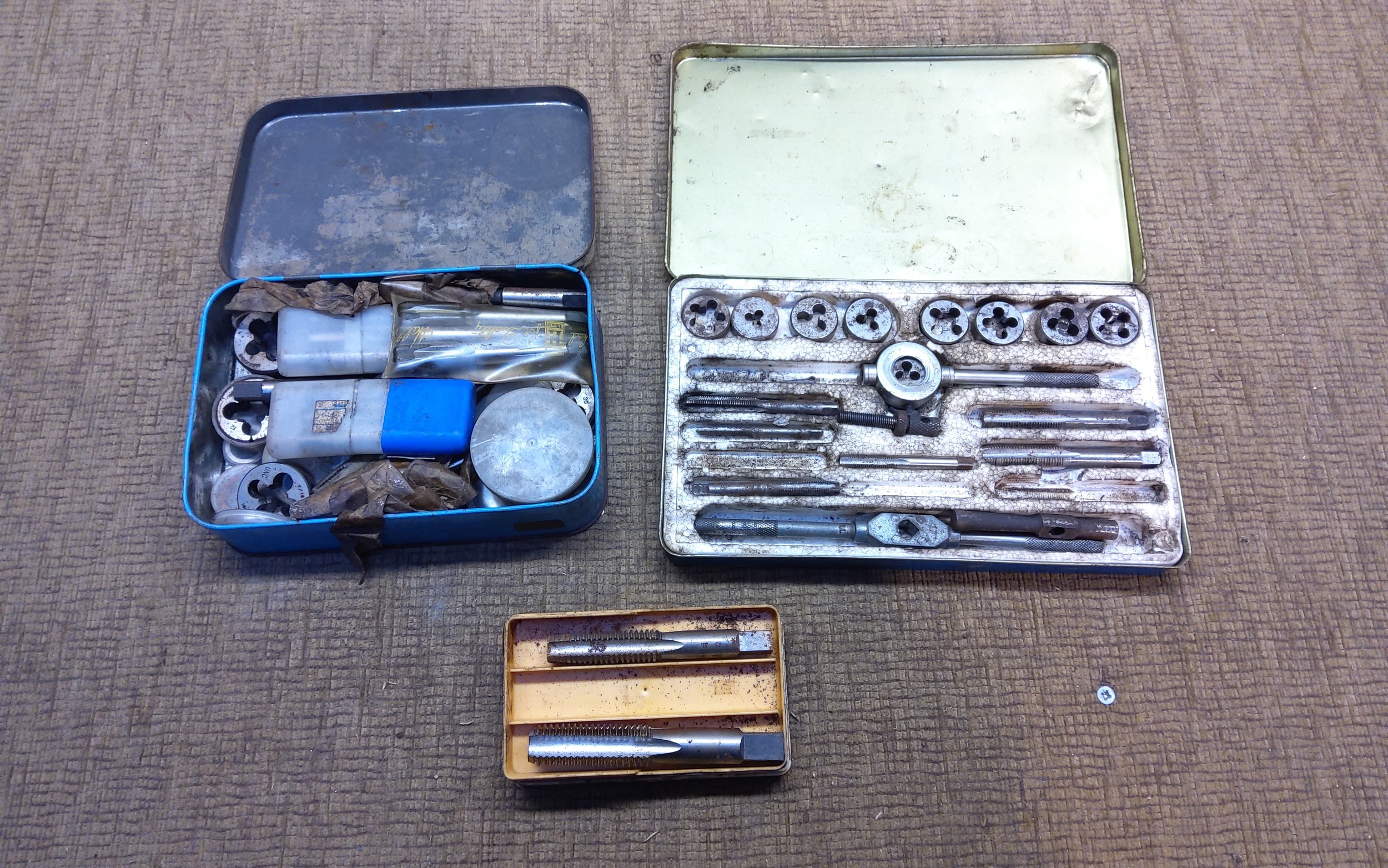 Three vintage tap and Die sets including Hilka and Warrior.