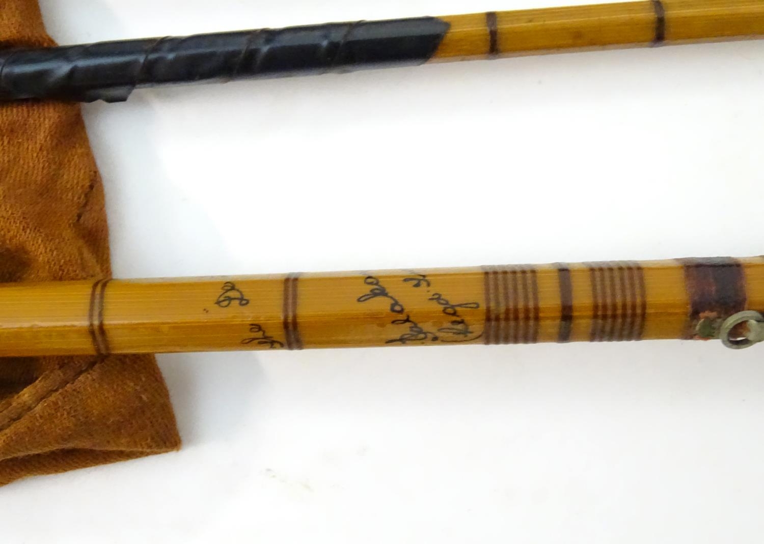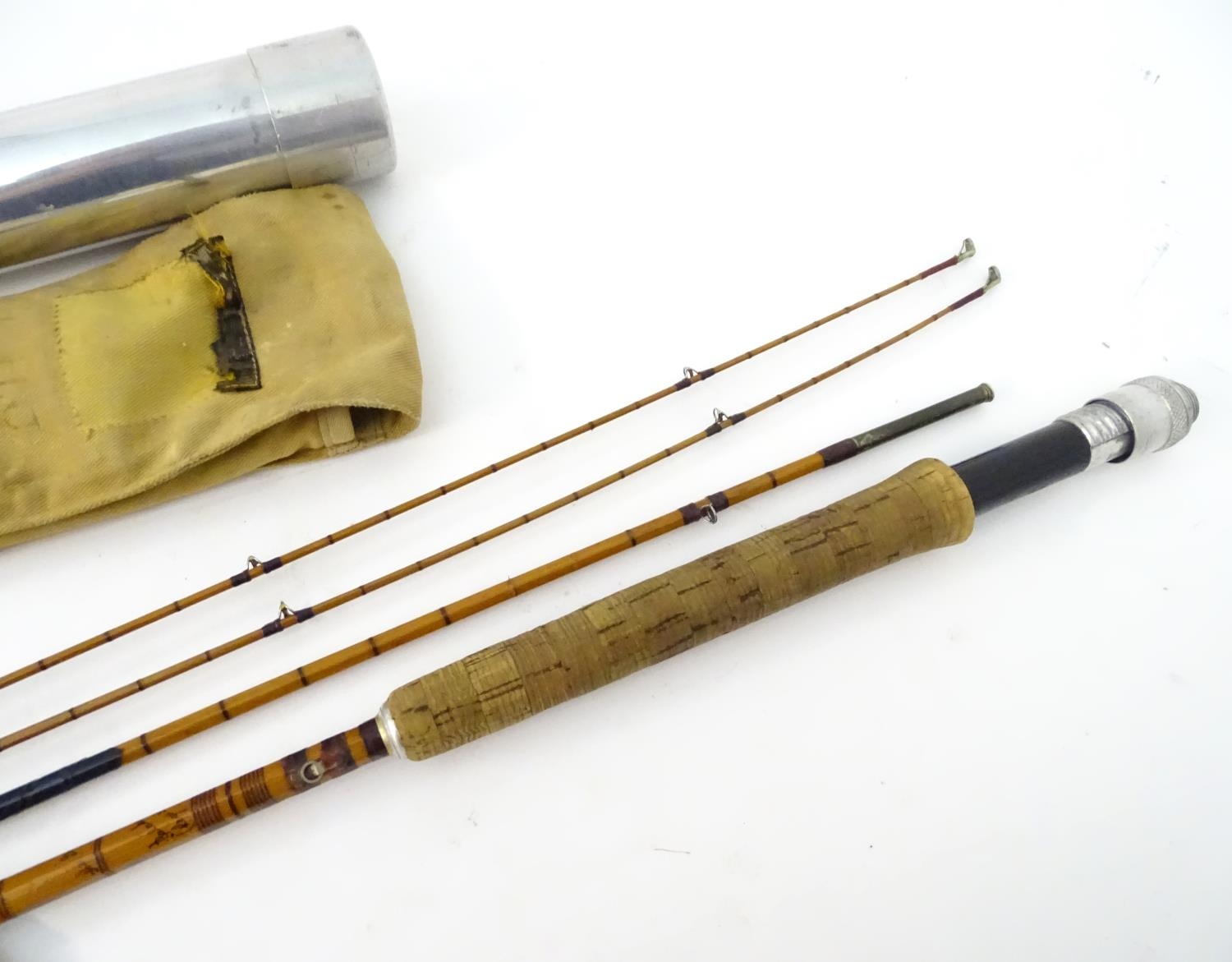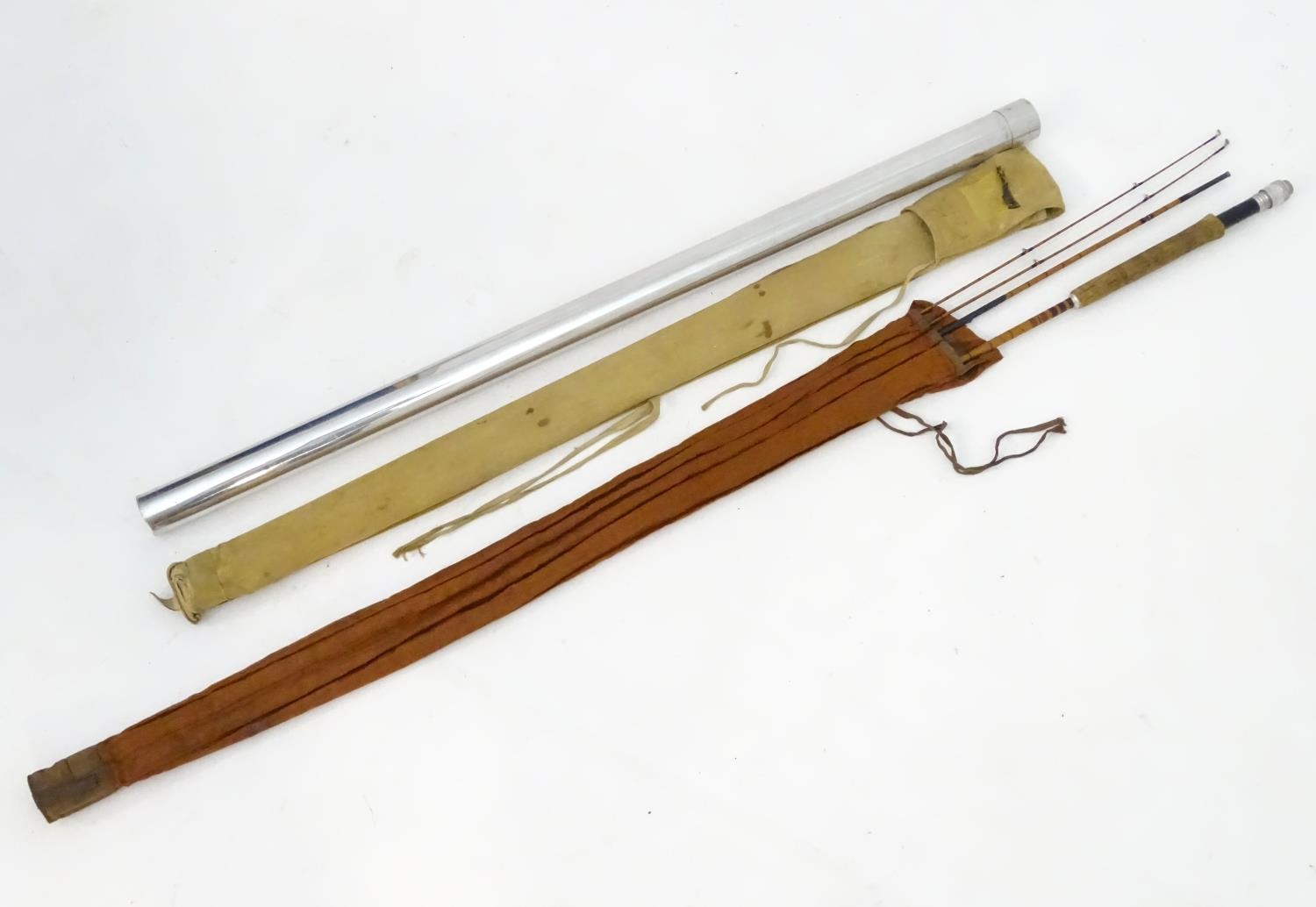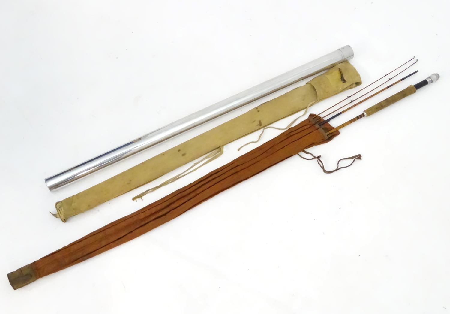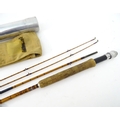 A Hardy Palakona 'De Luxe model' 7' three section split cane fly rod, with extra tip, dispatching blade, cloth case and steel protective tube case