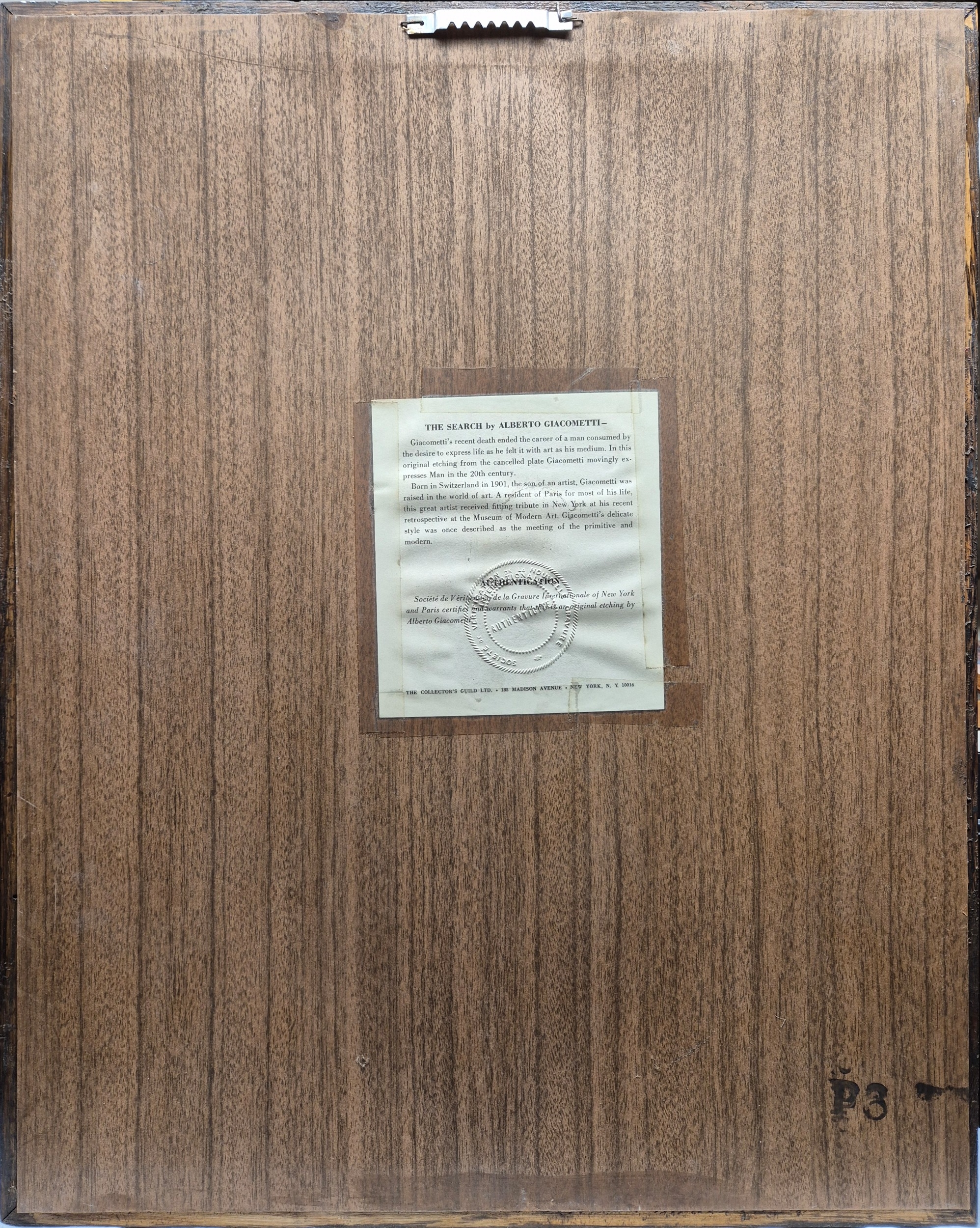 Alberto Giacometti (1901-1966) The Search, Etching Framed with Certificate of Authenticity to rear 52cm x 42cm