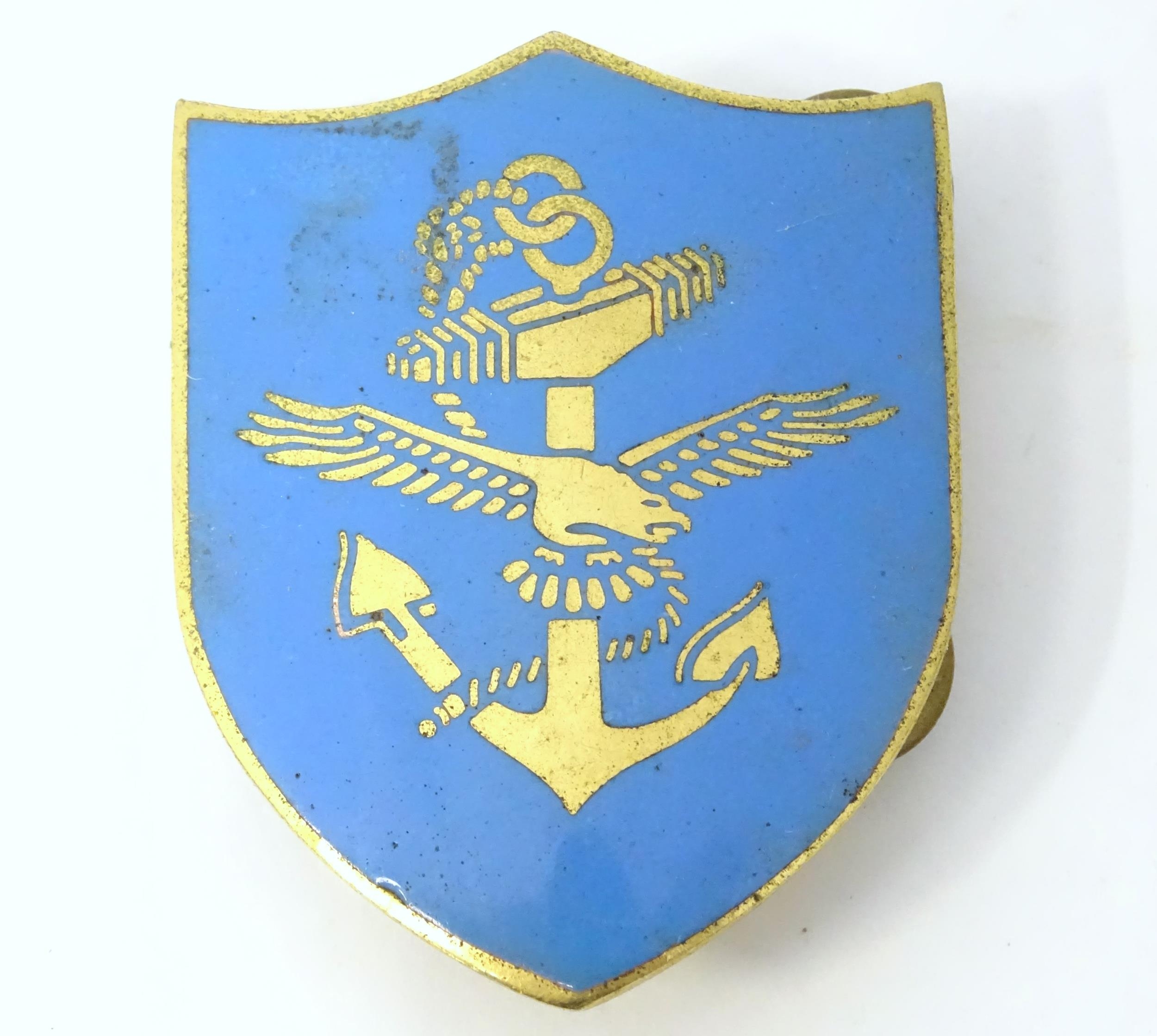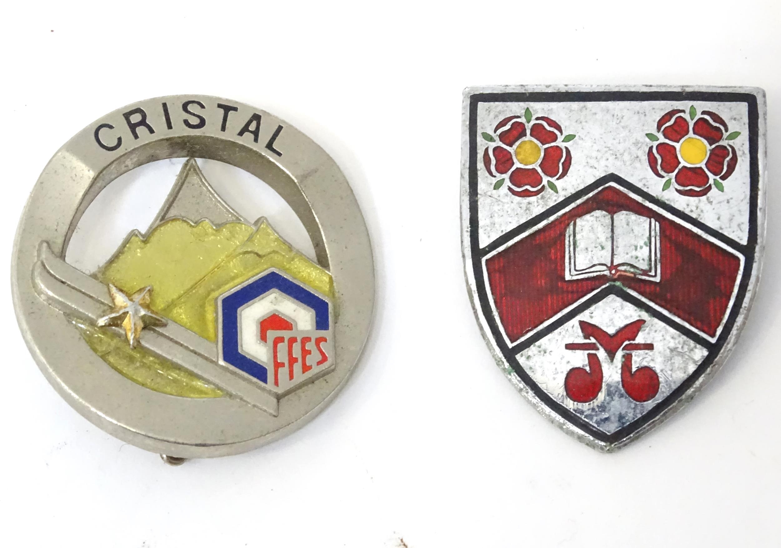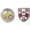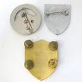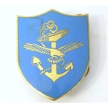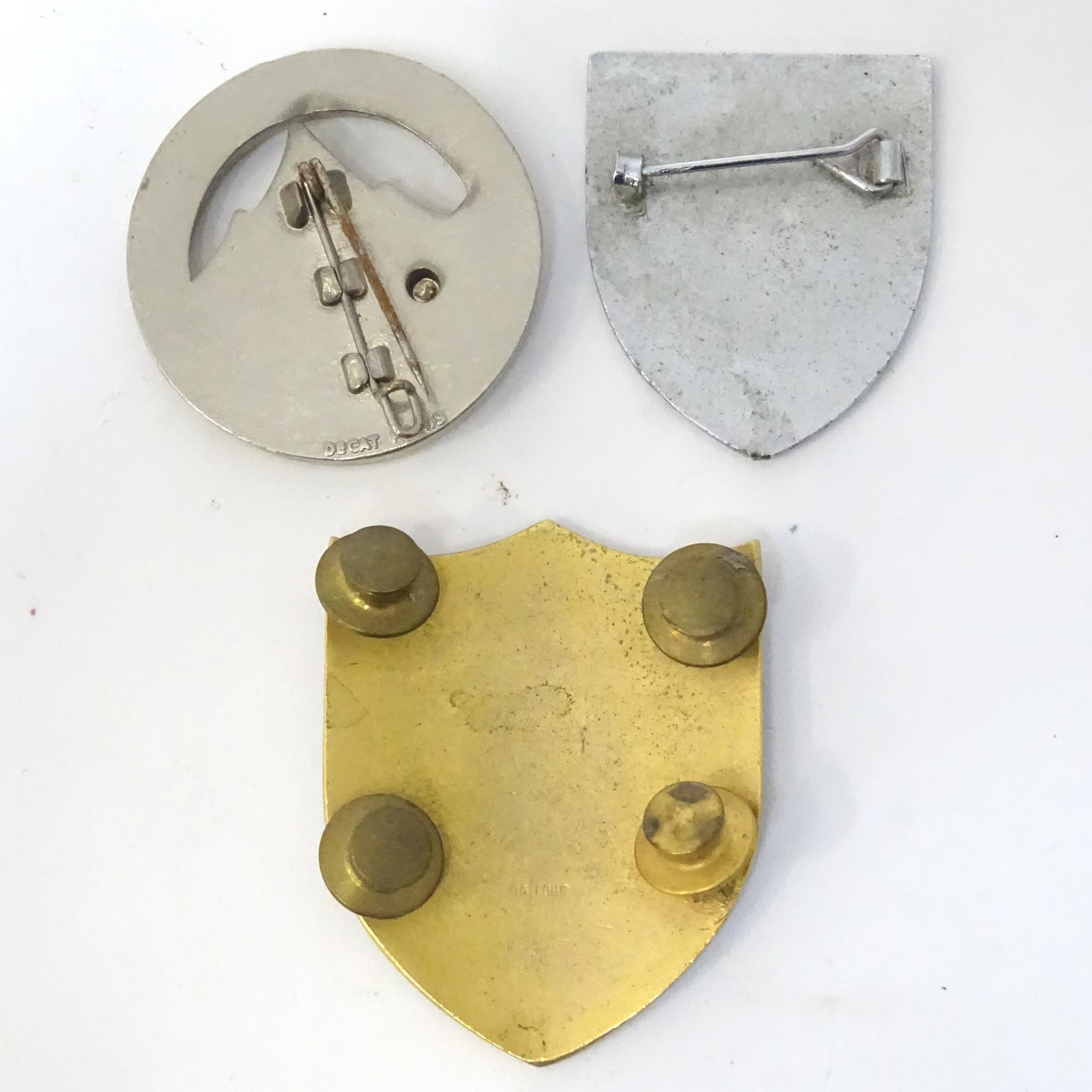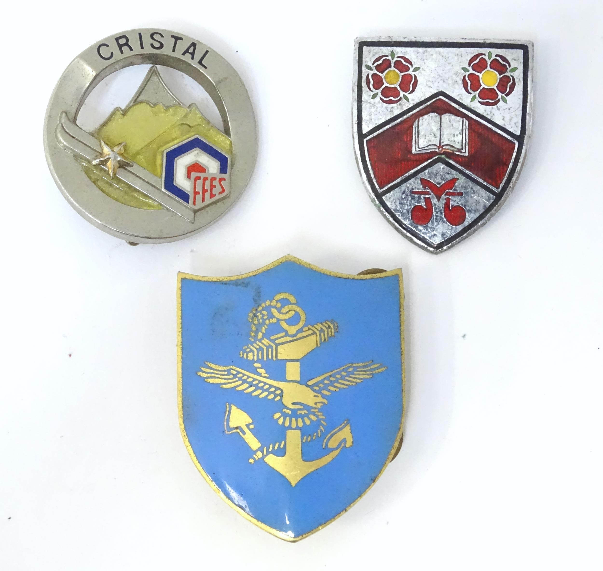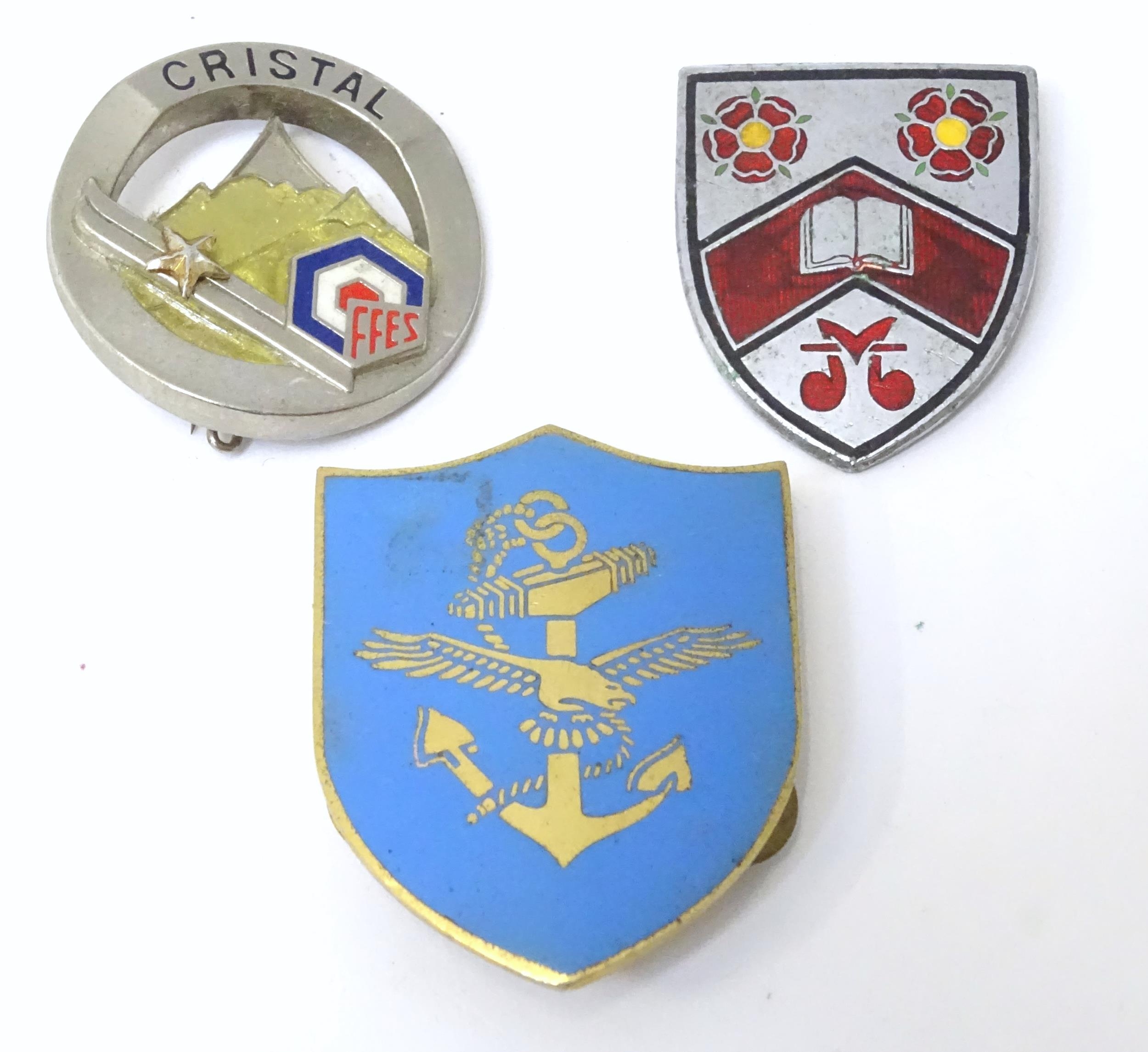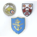 Three enamel pin badges with sporting , military and scholastic emblems (3)