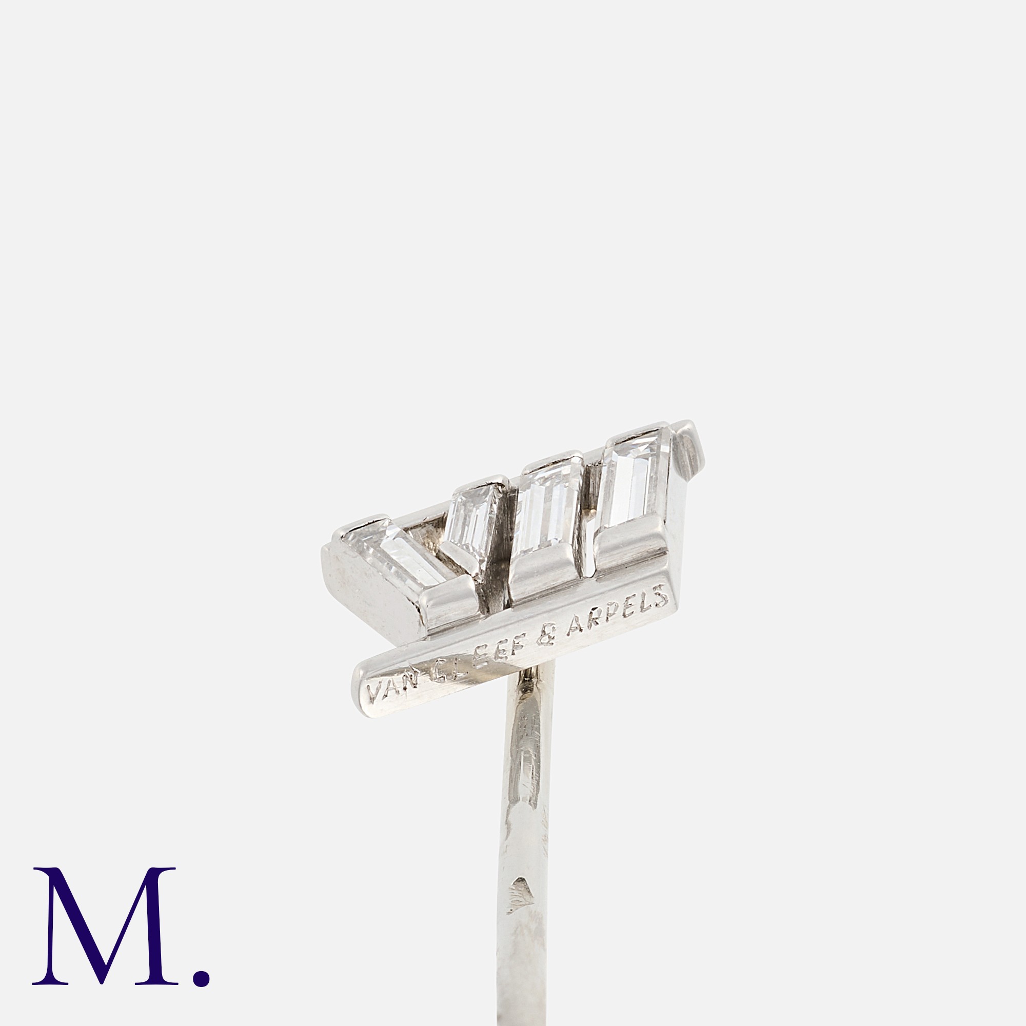 VAN CLEEF & ARPELS. A Diamond Pin in 18k white gold and platinum in the design of a Roman numeral VII. With original VCA box.