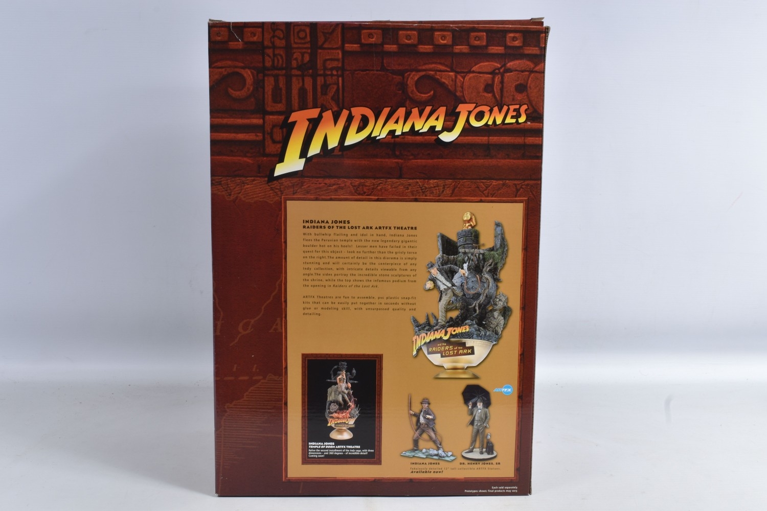 A BOXED 2008 KOTOBUKIYA SNAP FIT INDIANA JONES RAIDERS OF THE LOST ARK DISPLAYED ARTFX THEATRE, appears to have never been displayed, box has been opened, includes internal packaging and outer cardboard box which is a great condition