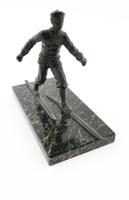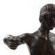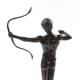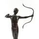 Large patinated bronze figure of a nude male archer, raised on a circular black slate base, 47cm high