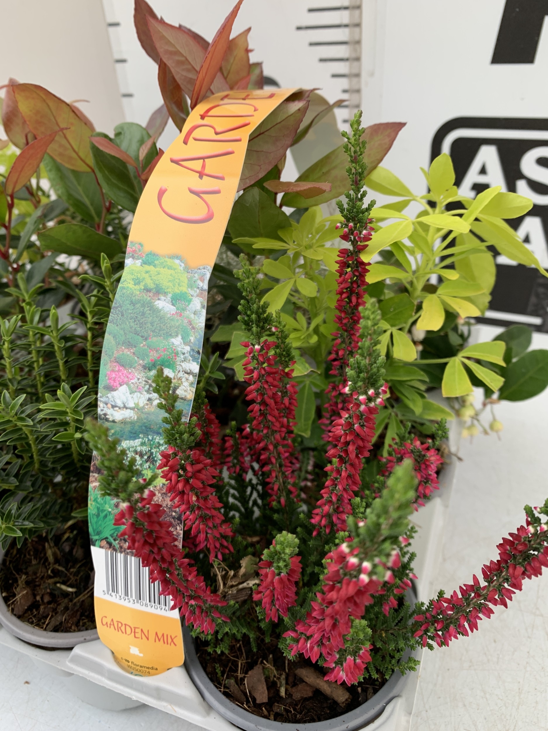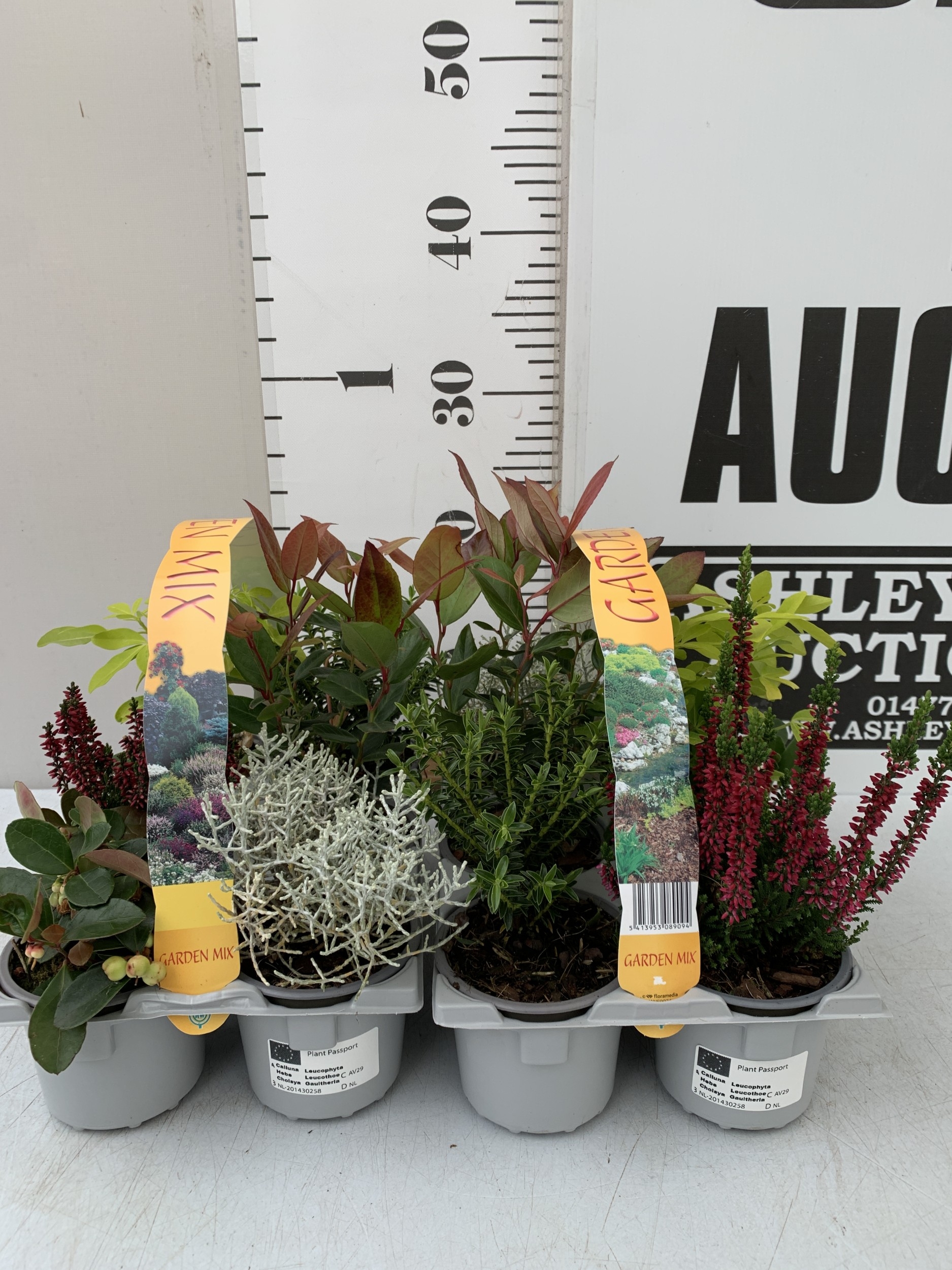 TWELVE MIXED AUTUMN SHRUBS IN TWO CARRY PACKS. TO INCLUDE TWO GAULTHERIA PROCUMBENS WITH BERRIES, TWO HEATHERS, TWO CHOISYA 'SUNDANCE', TWO HEBES, TWO LEUCOTHOE 'ZEBLID' AND TWO CALOCEPHALUS BROWNII 'SILVER BUSH'. APPROX 20CM TALL, TO BE SOLD FOR THE TWELVE PLANTS