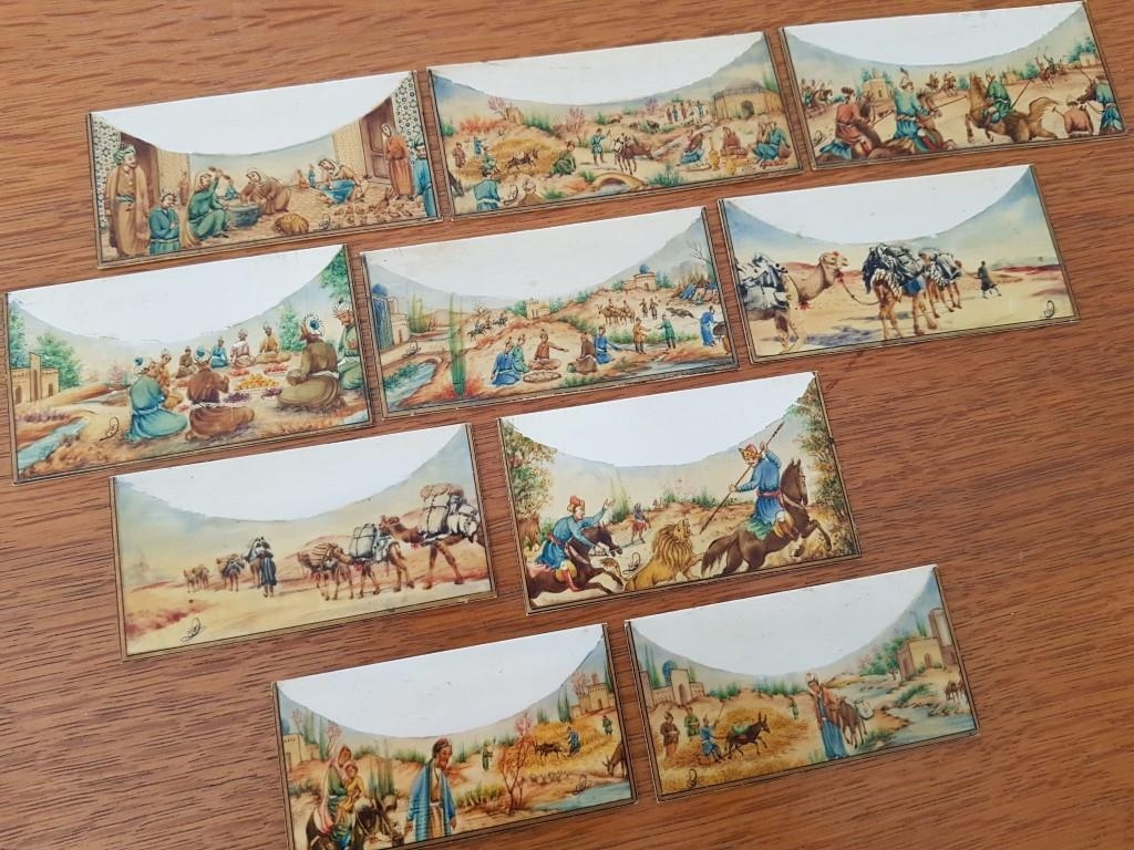 Collection of 10 x Hand Painted Miniatures on Bone by Persian Artist Ali Sajjadi